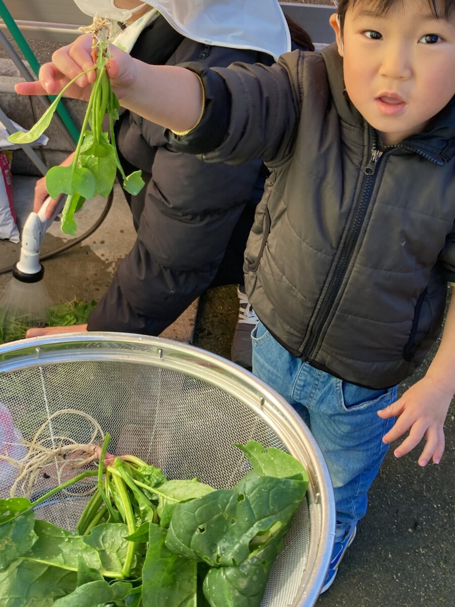 園庭で種から育てていたほうれん草です![]()