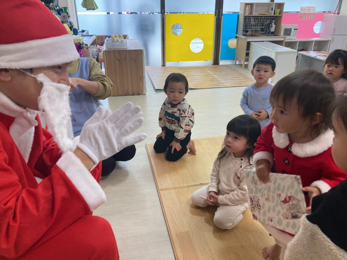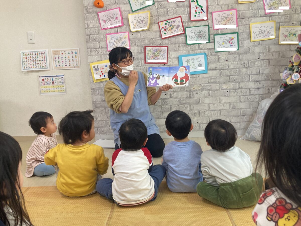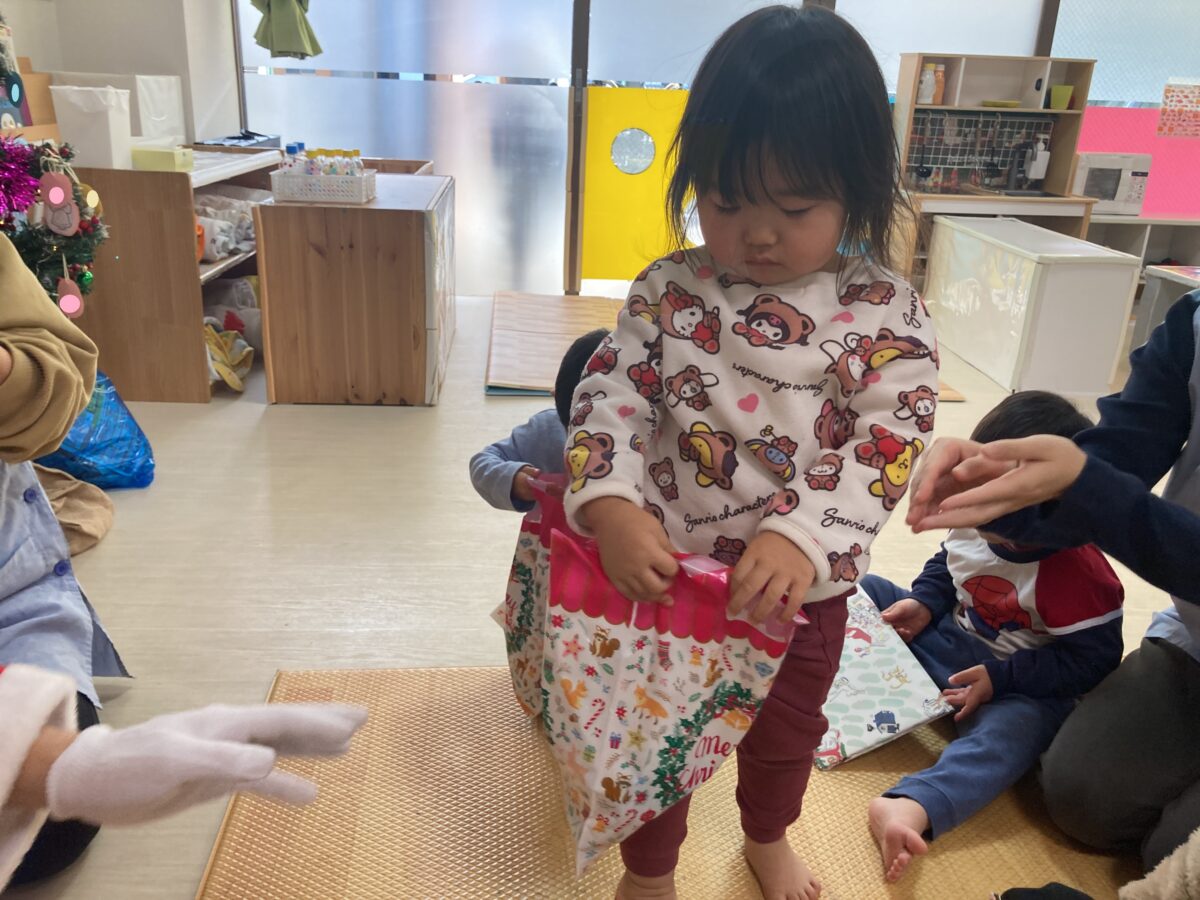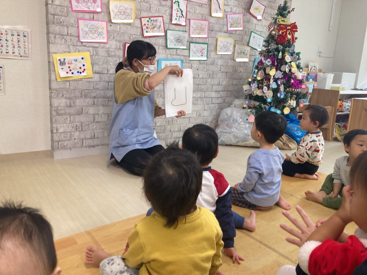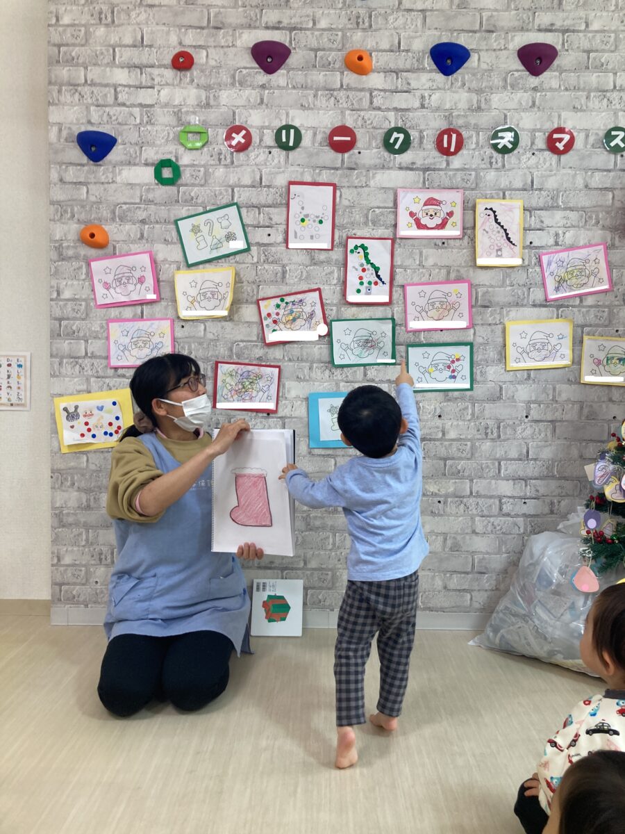 クリスマス会の準備をしていると、そばで子どもたちが興味津々の様子で見守ってくれています。
