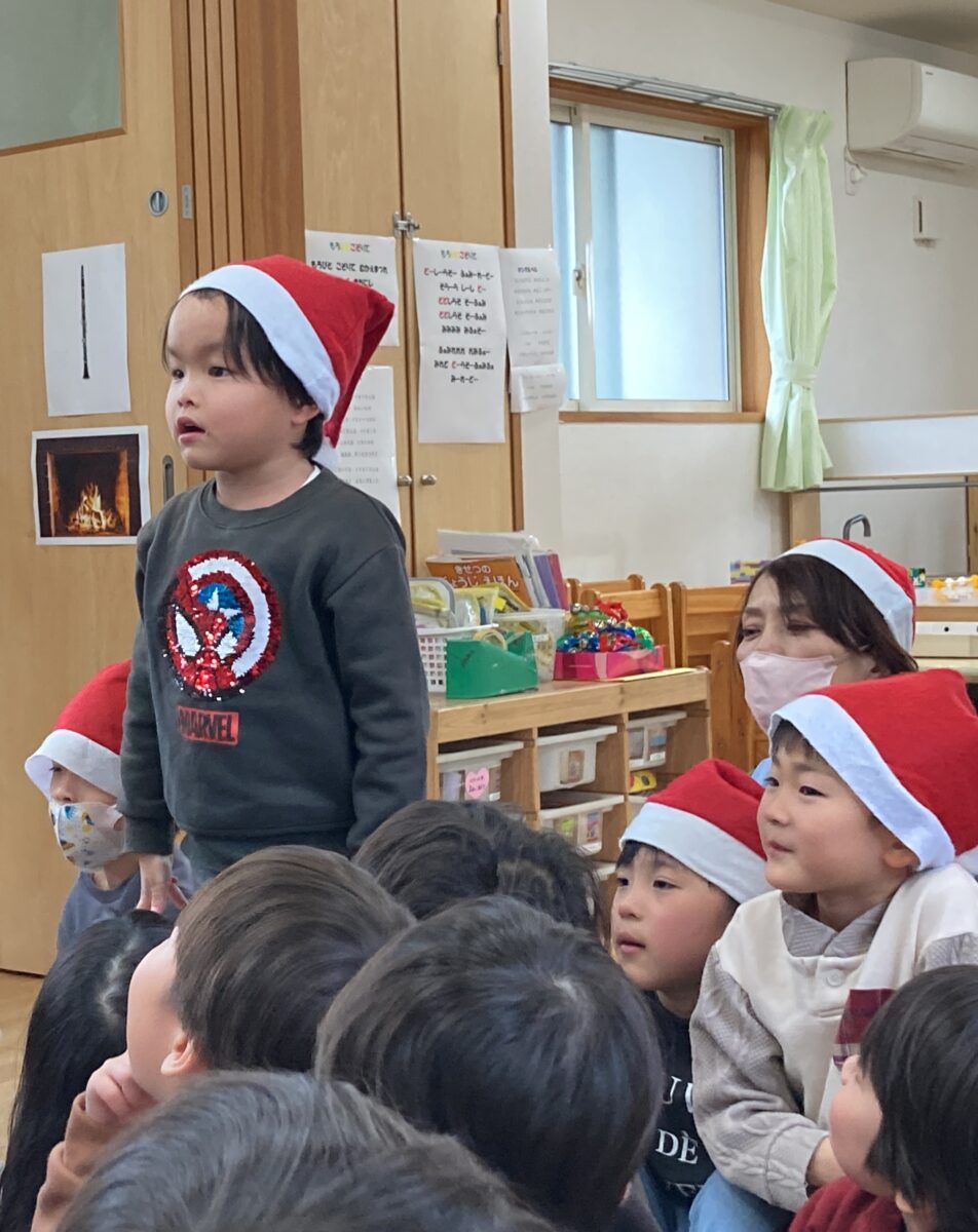 たいよう組(4歳児)による「あわてんぼうのサンタクロース」の歌を披露