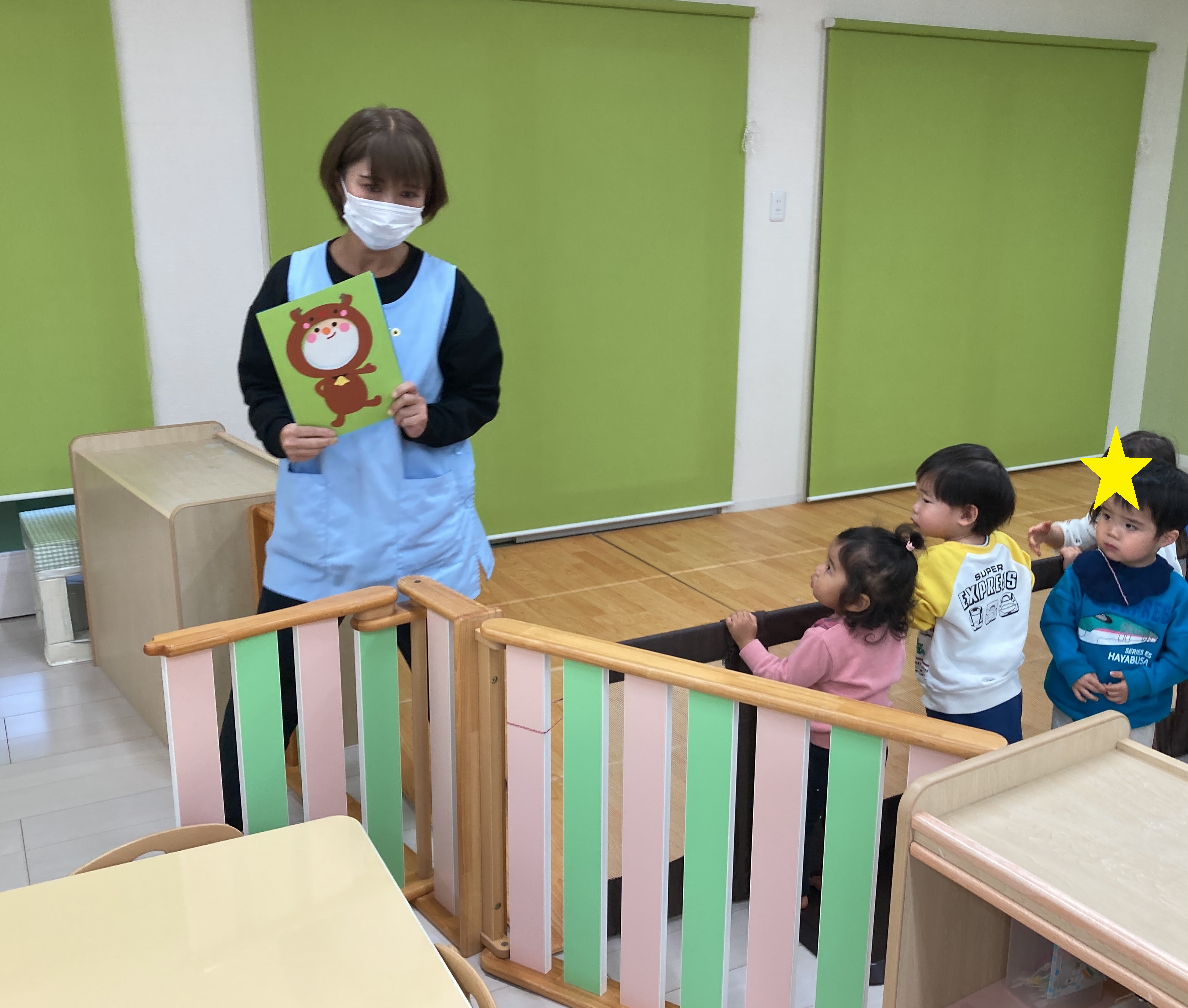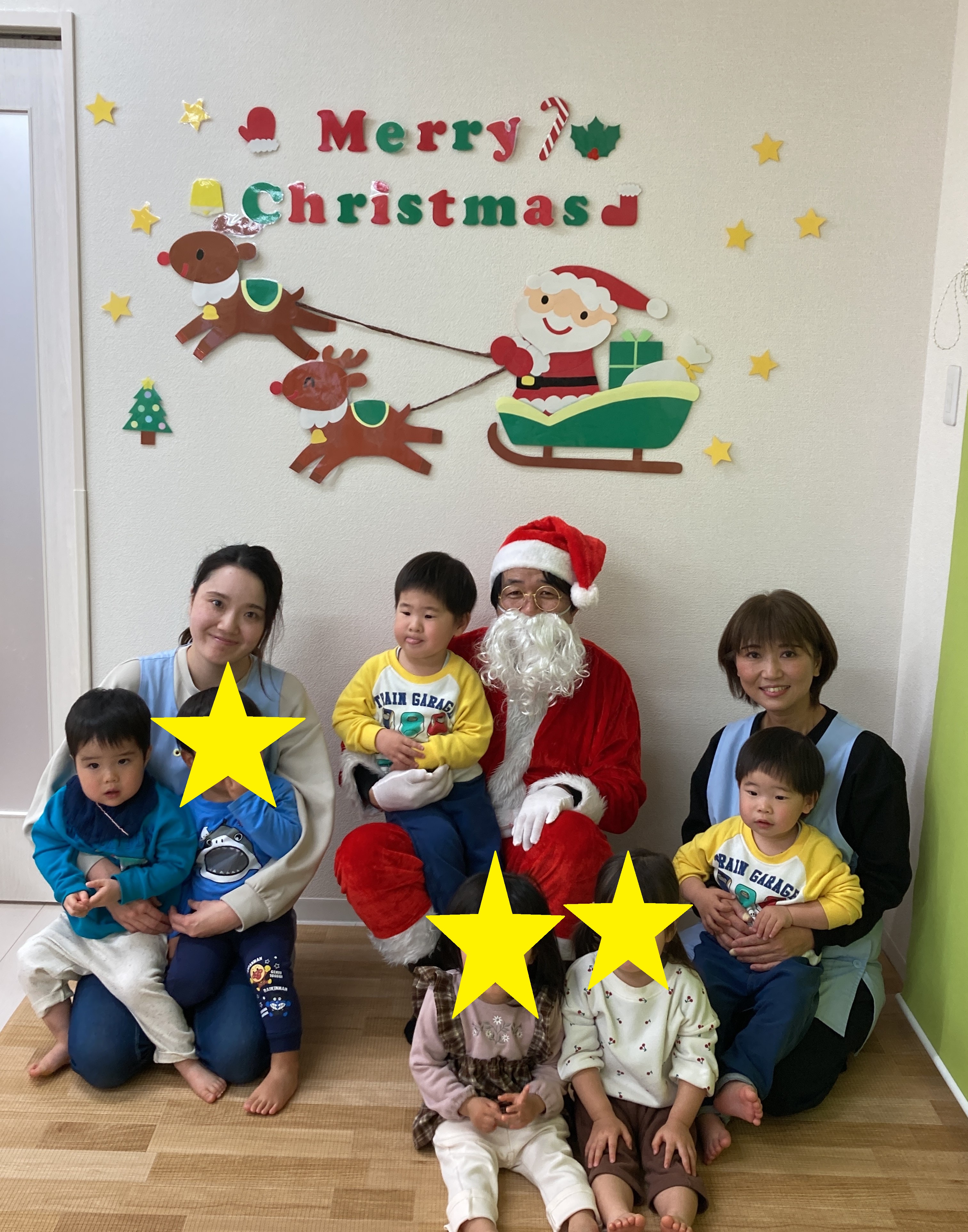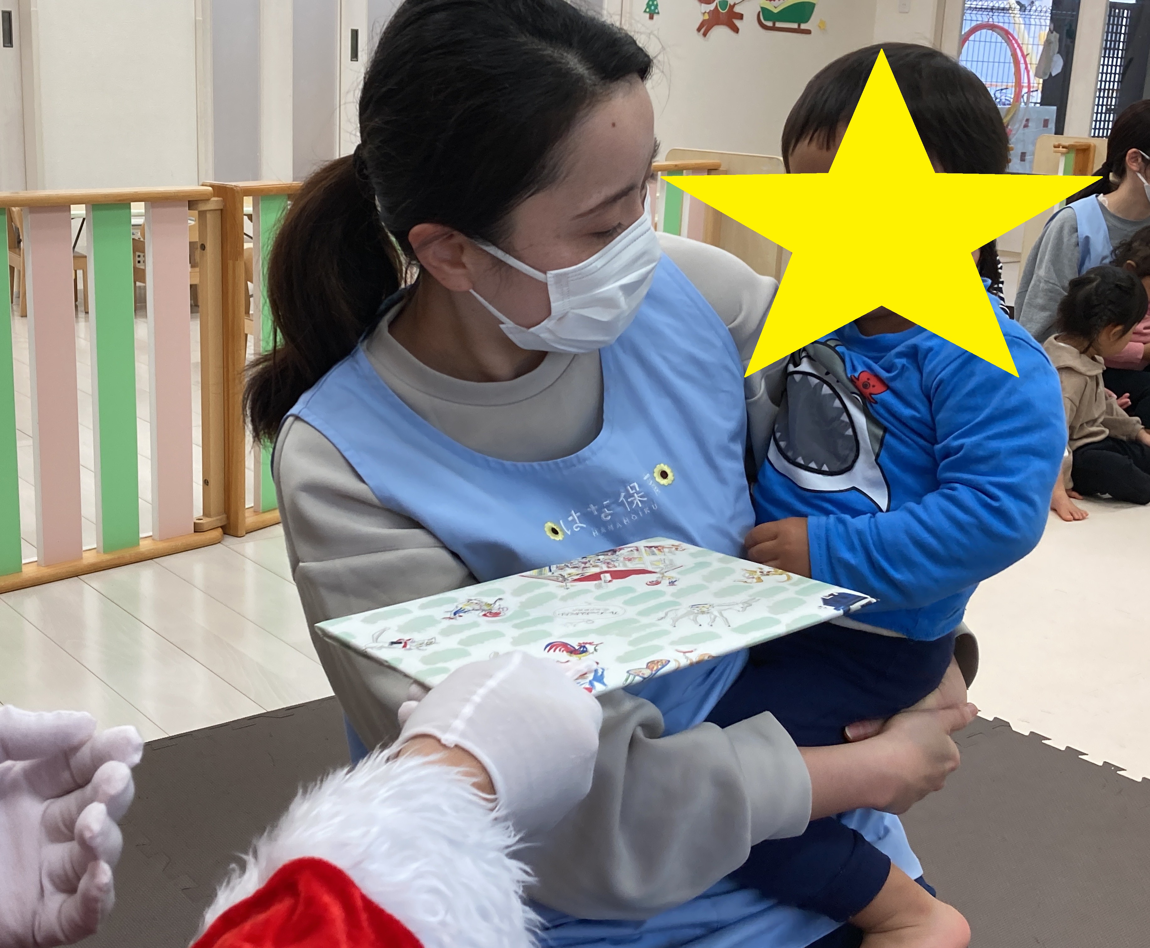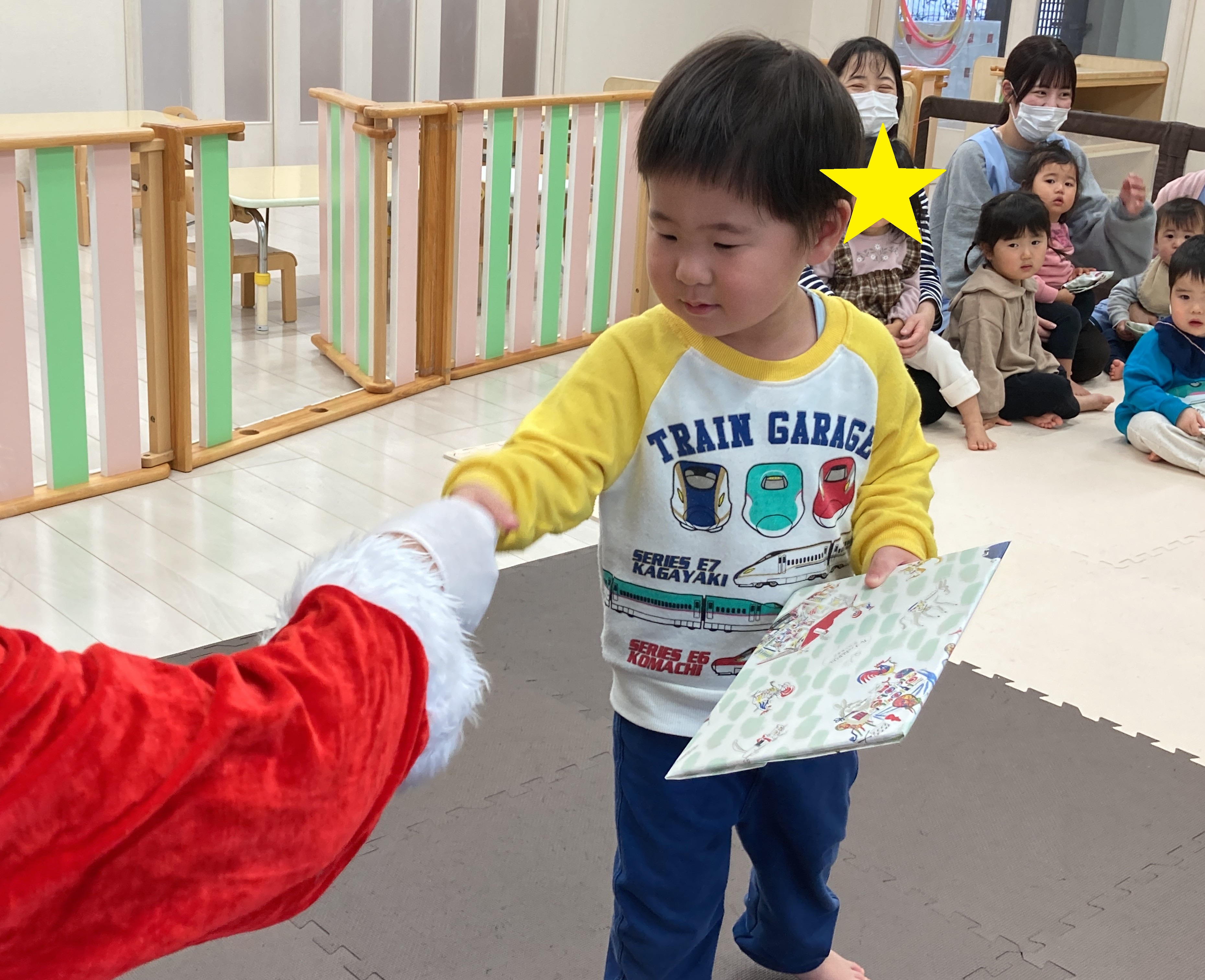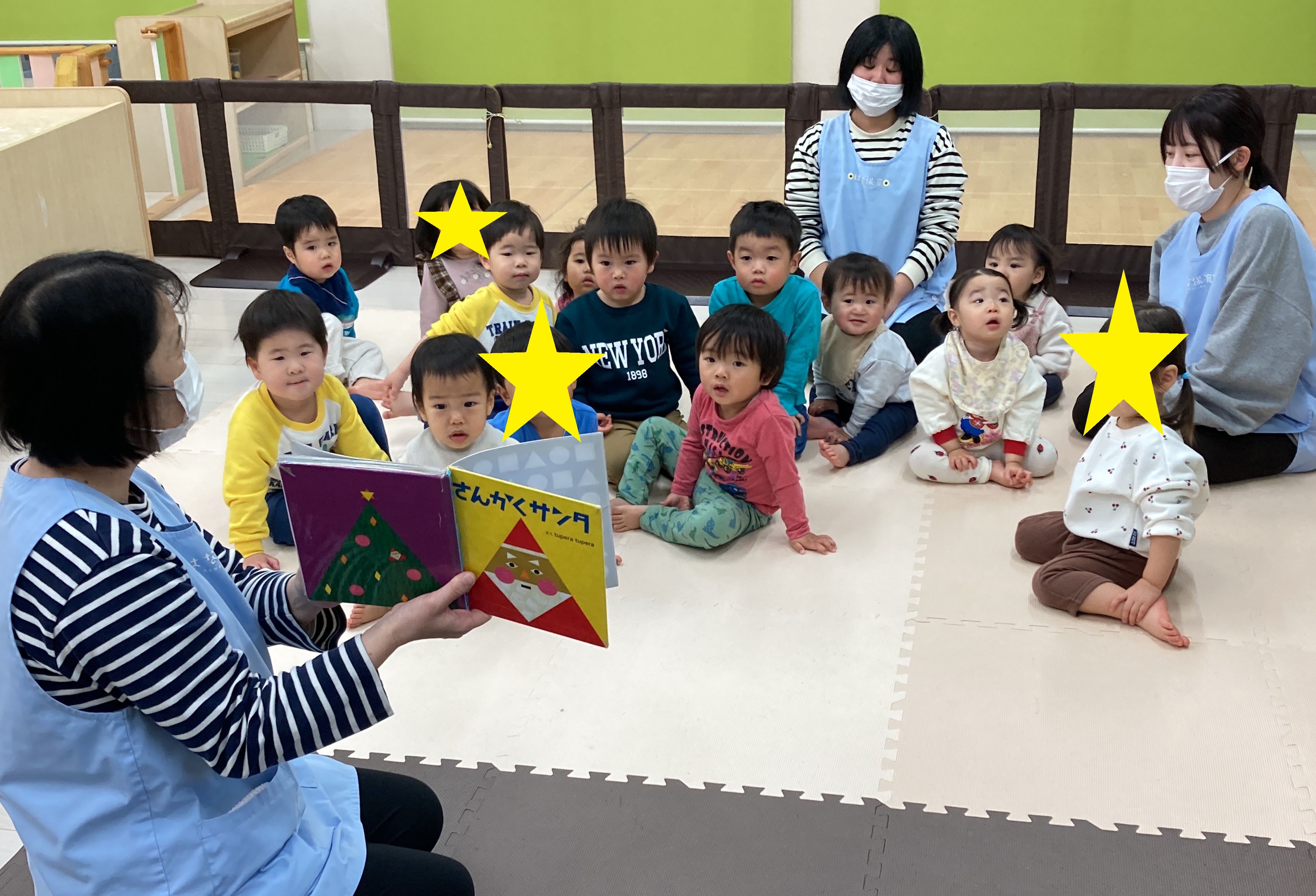 クリスマス会が始まる前に、みんなで「さんかくサンタ」の絵本を見ました✨