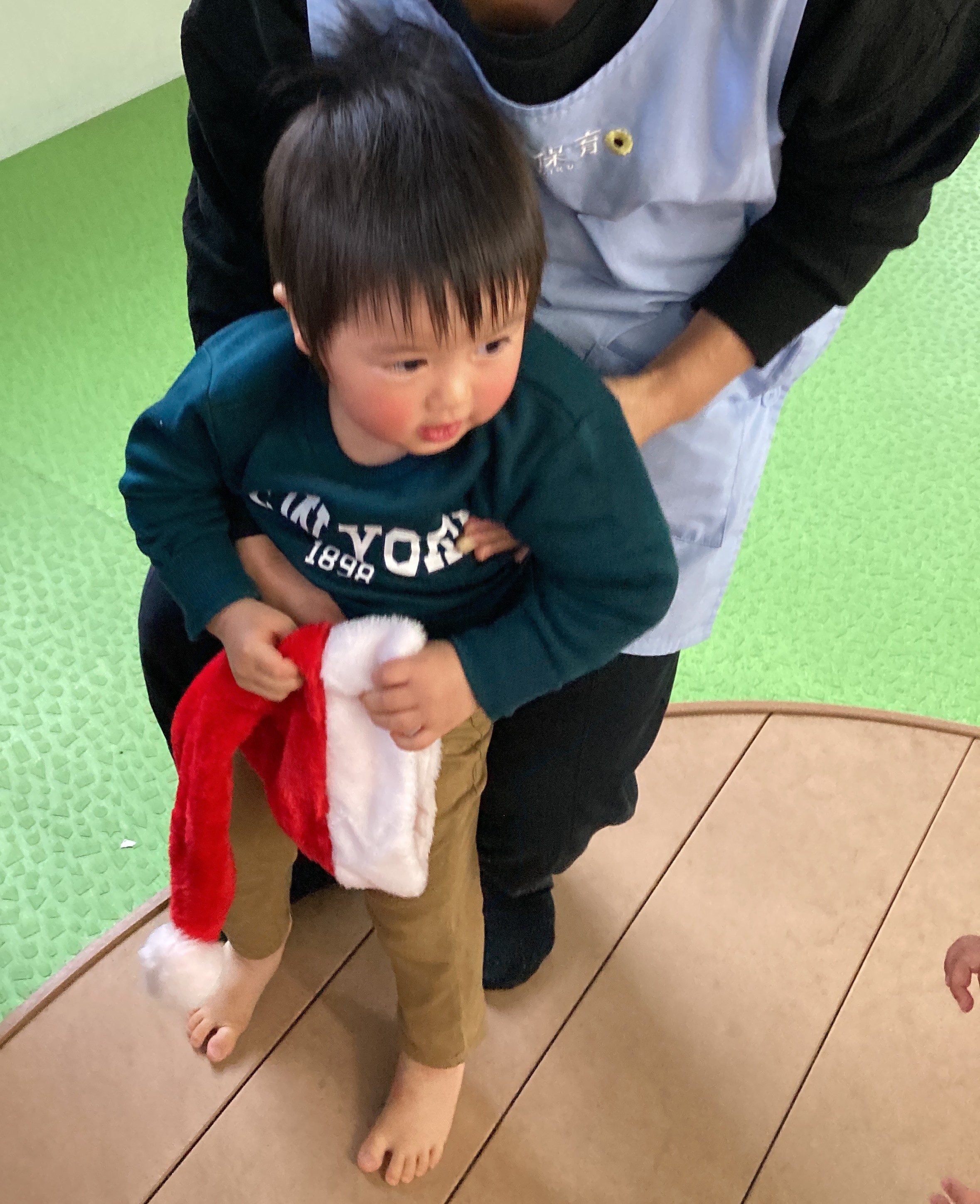 「サンタさん、帽子あったよ!」