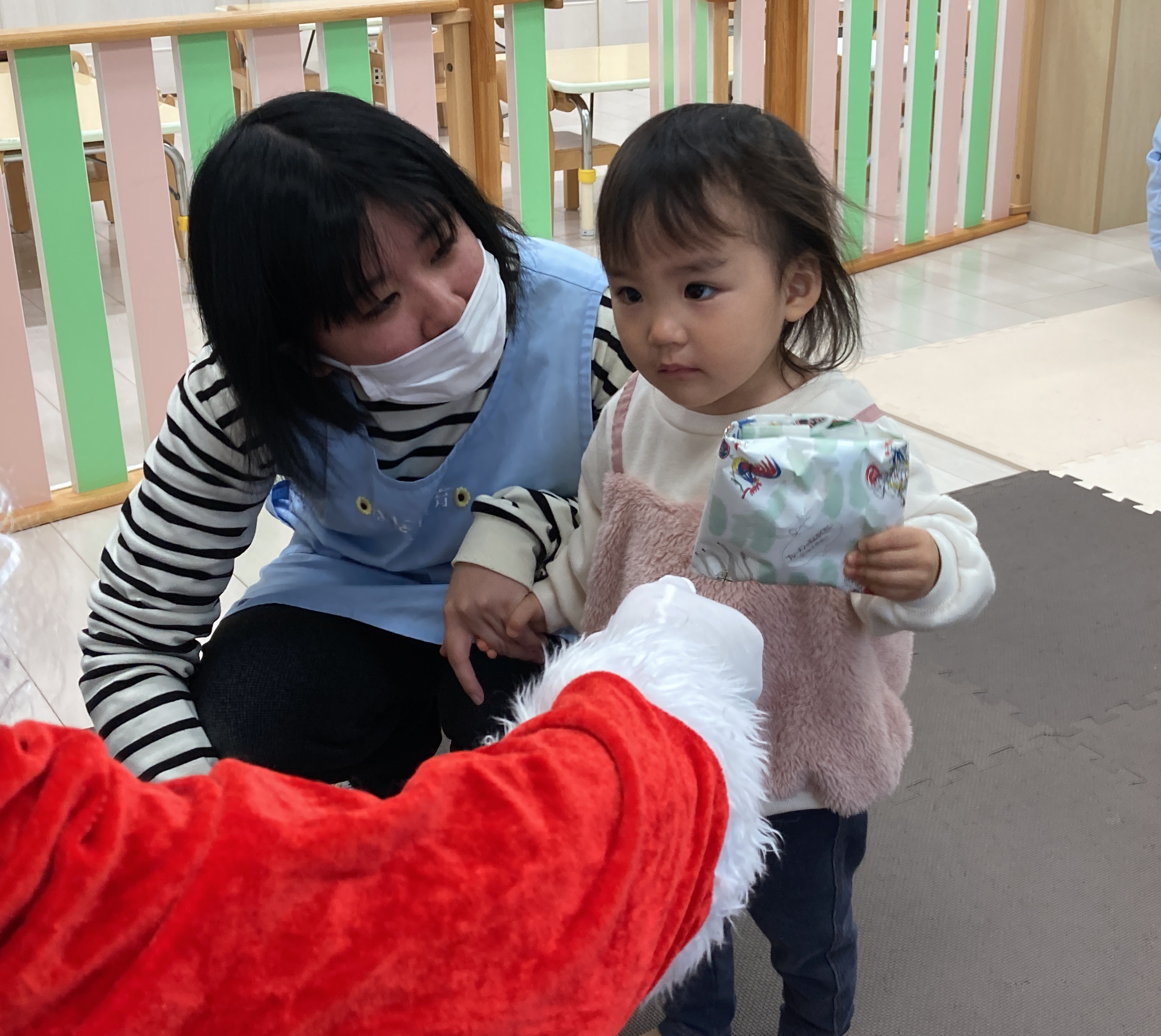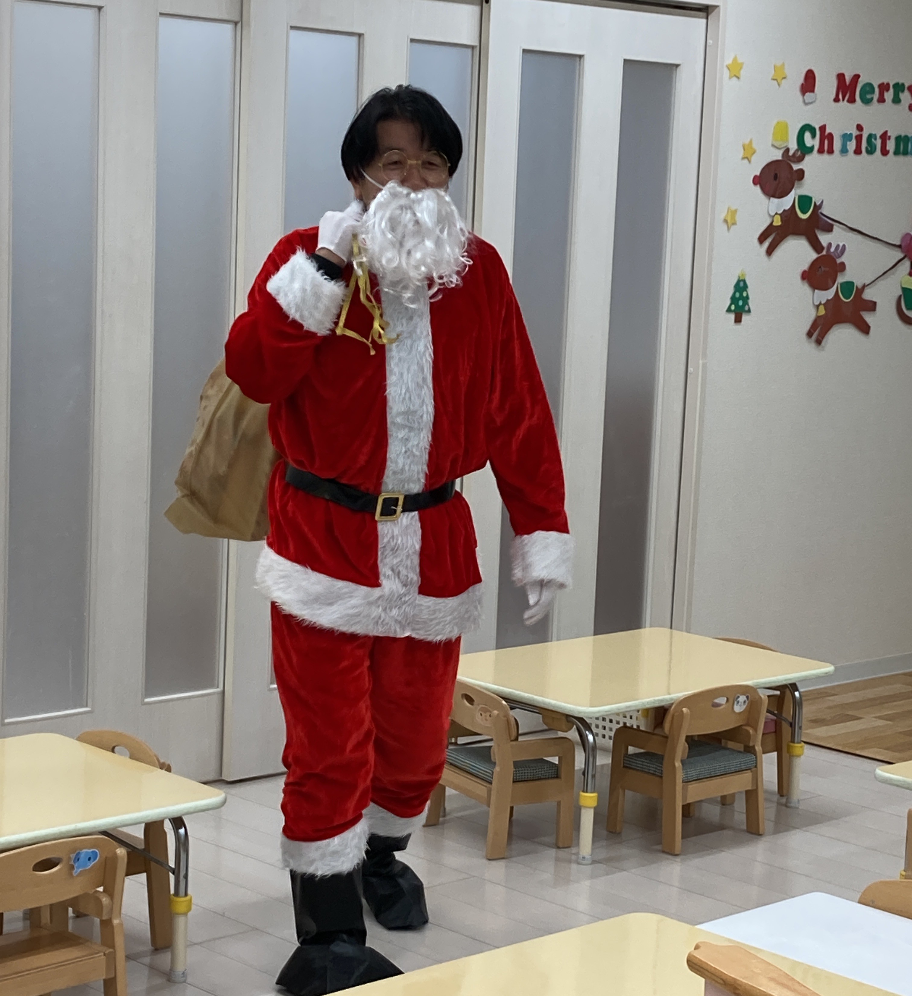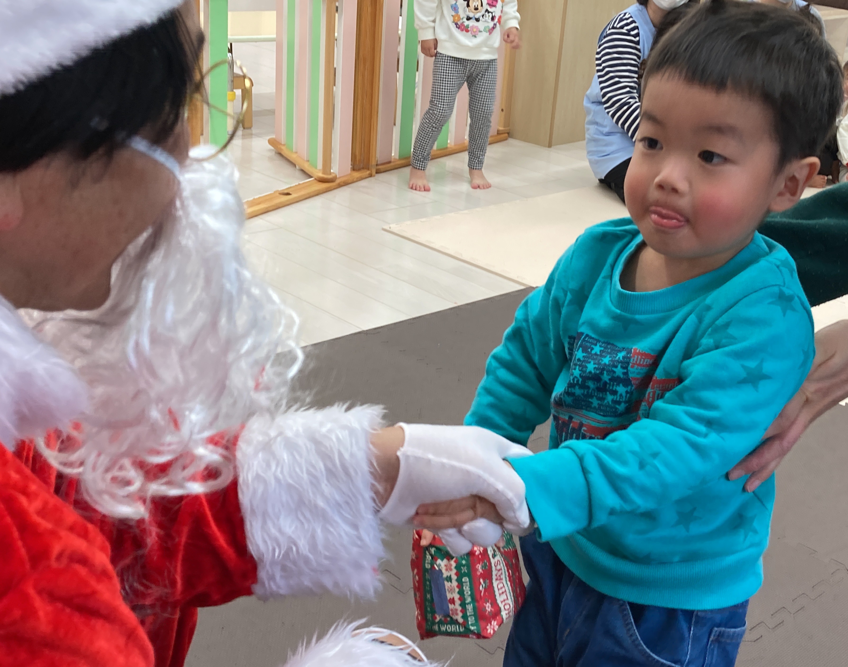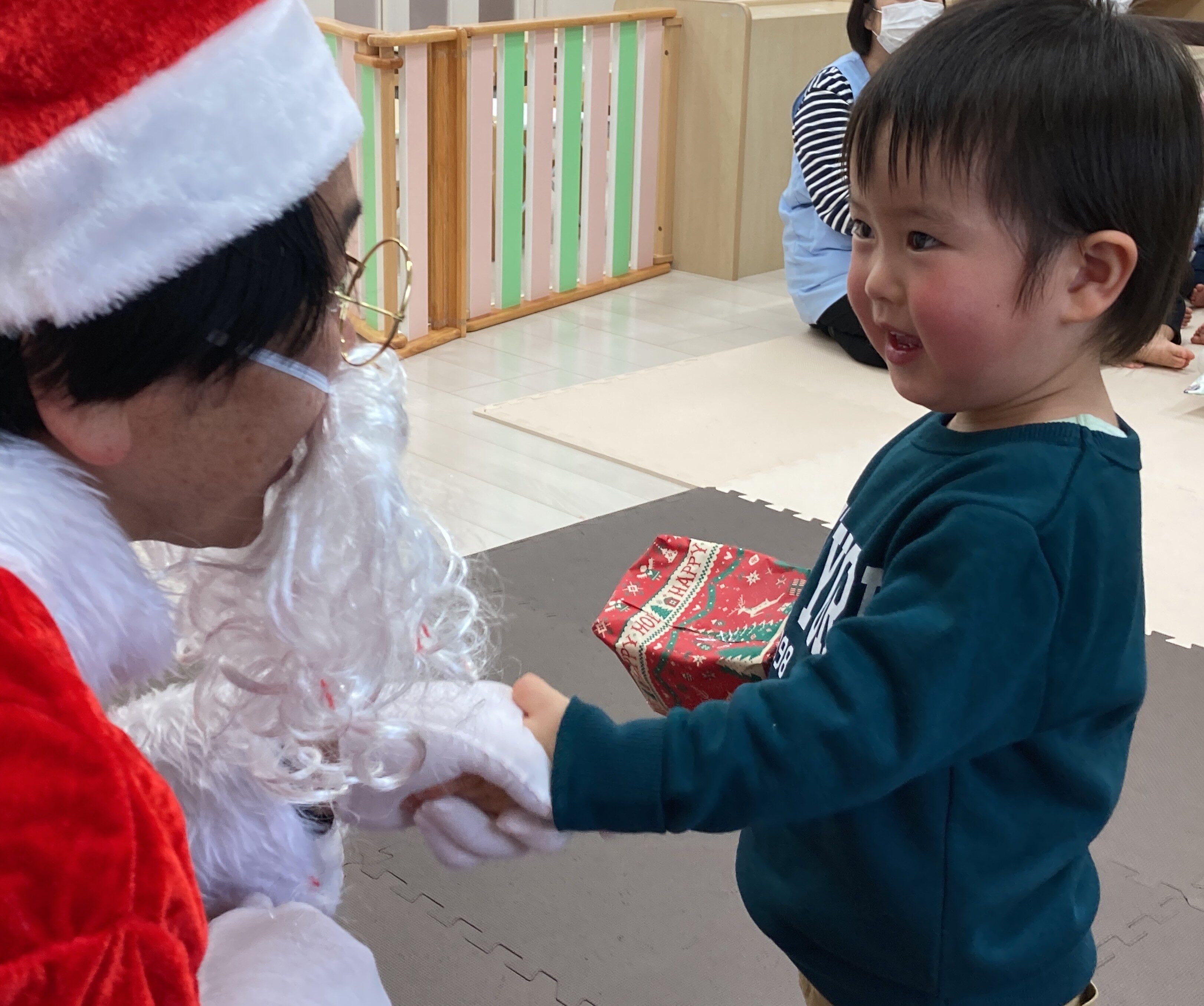 音楽が終わると鈴の音が聞こえてきて…サンタさんが来てくれました!