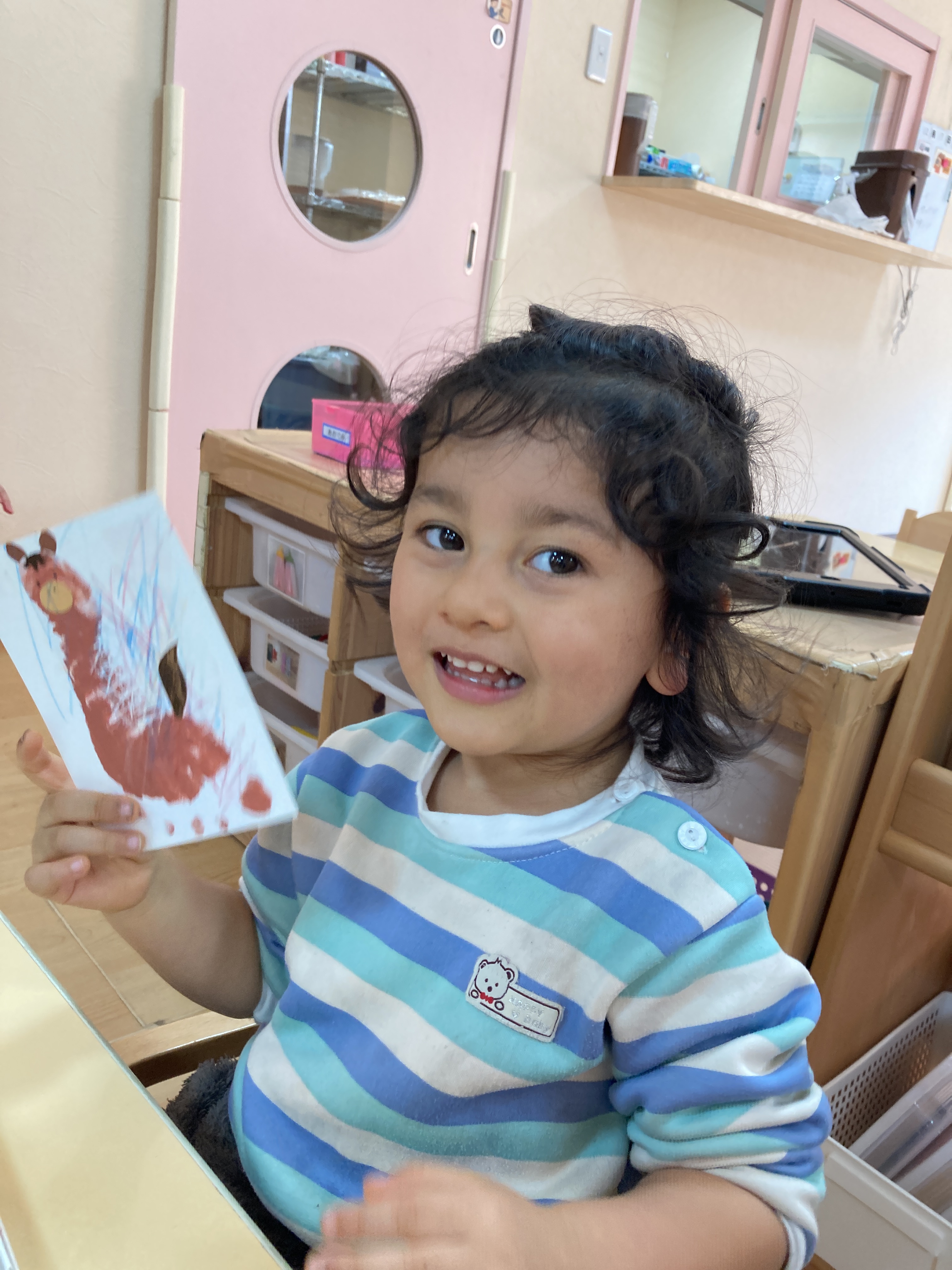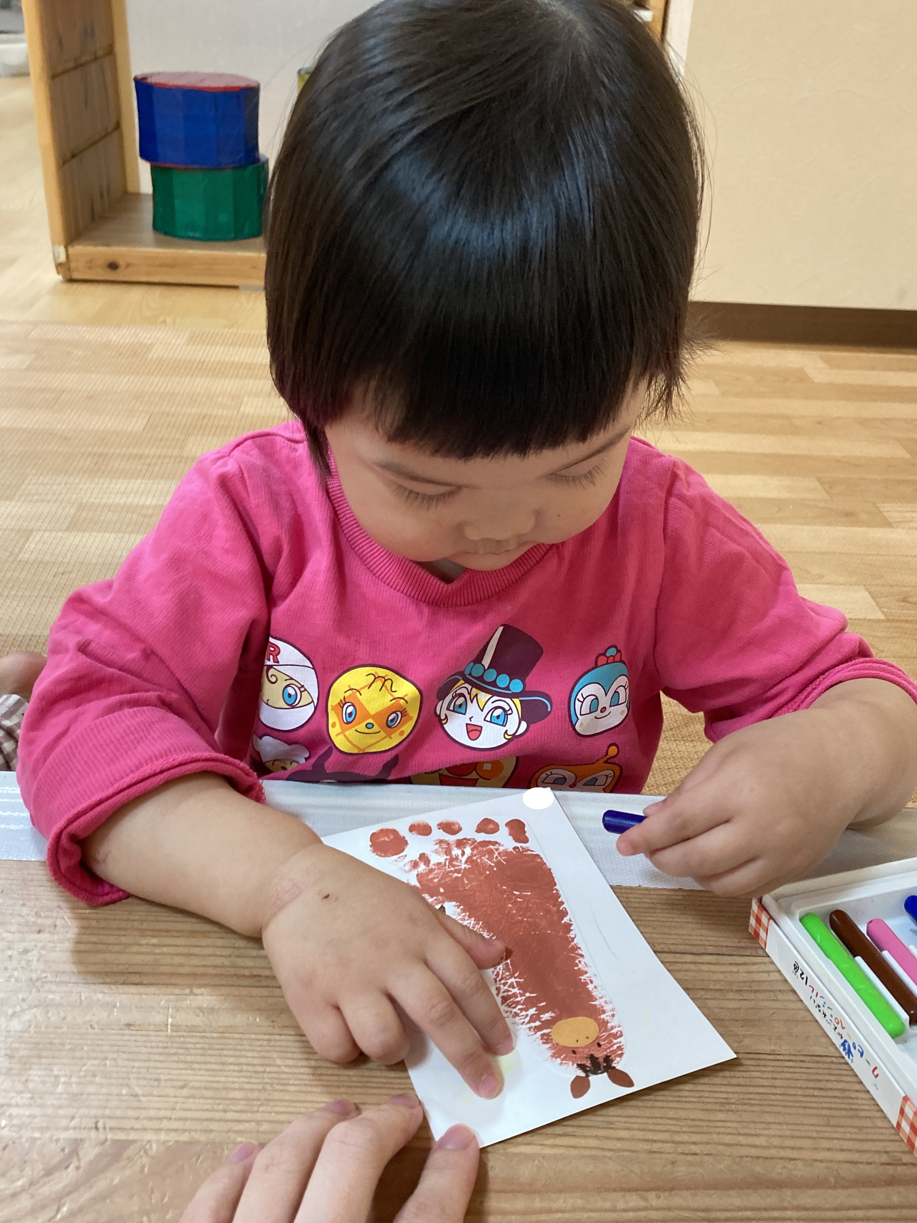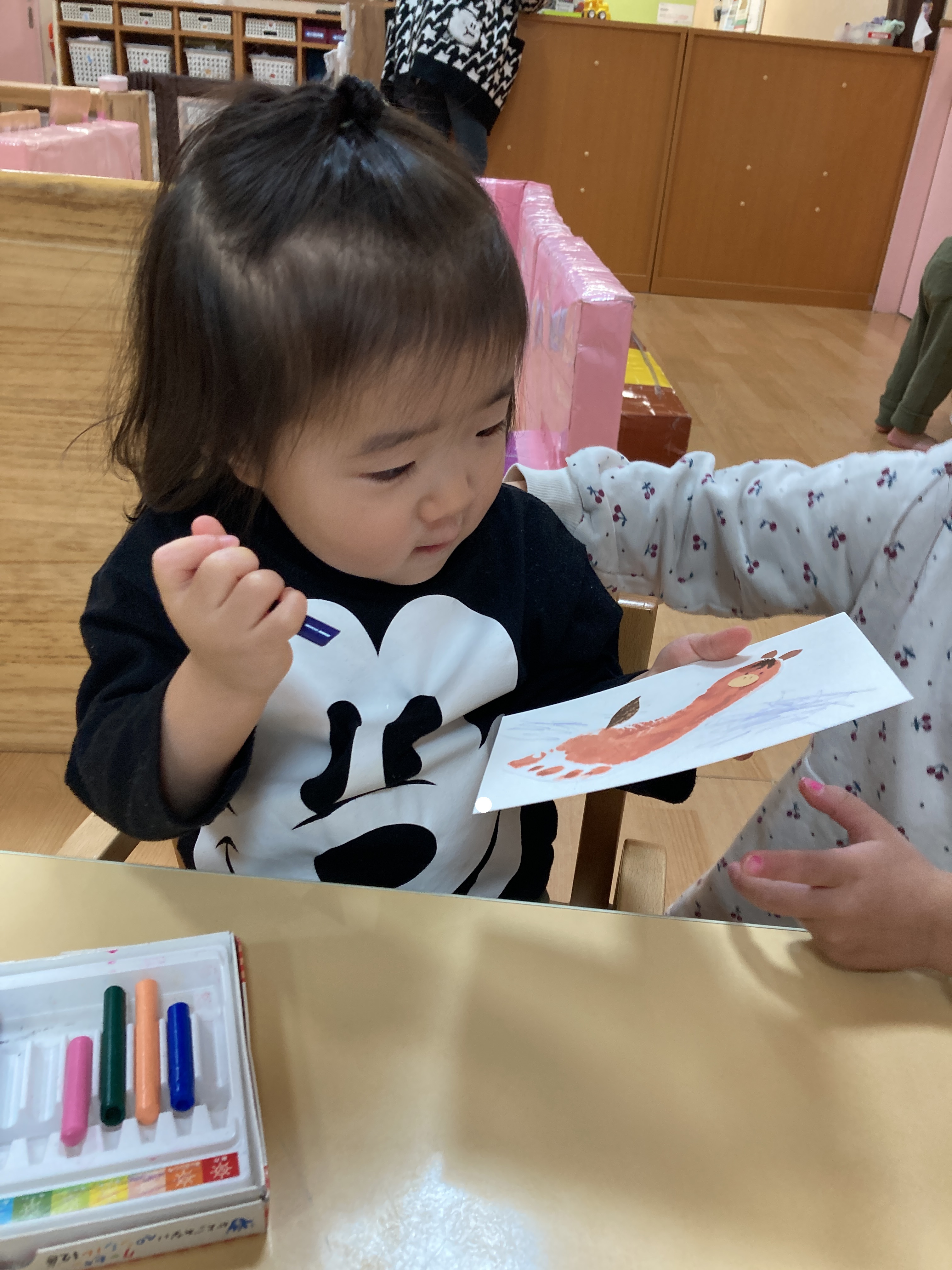 年末に1,2歳児クラスの子どもたちと一緒に年賀状を作りました。