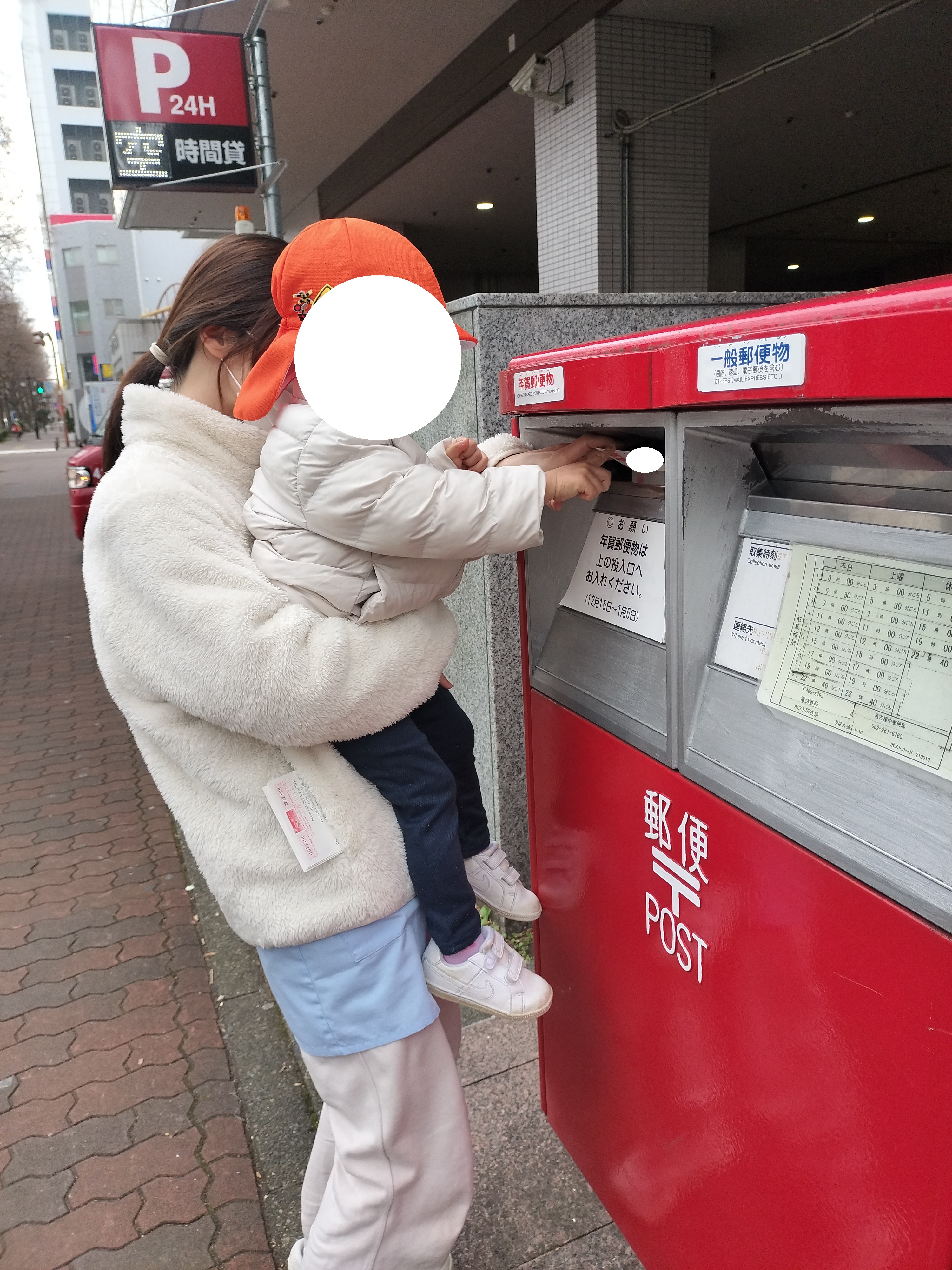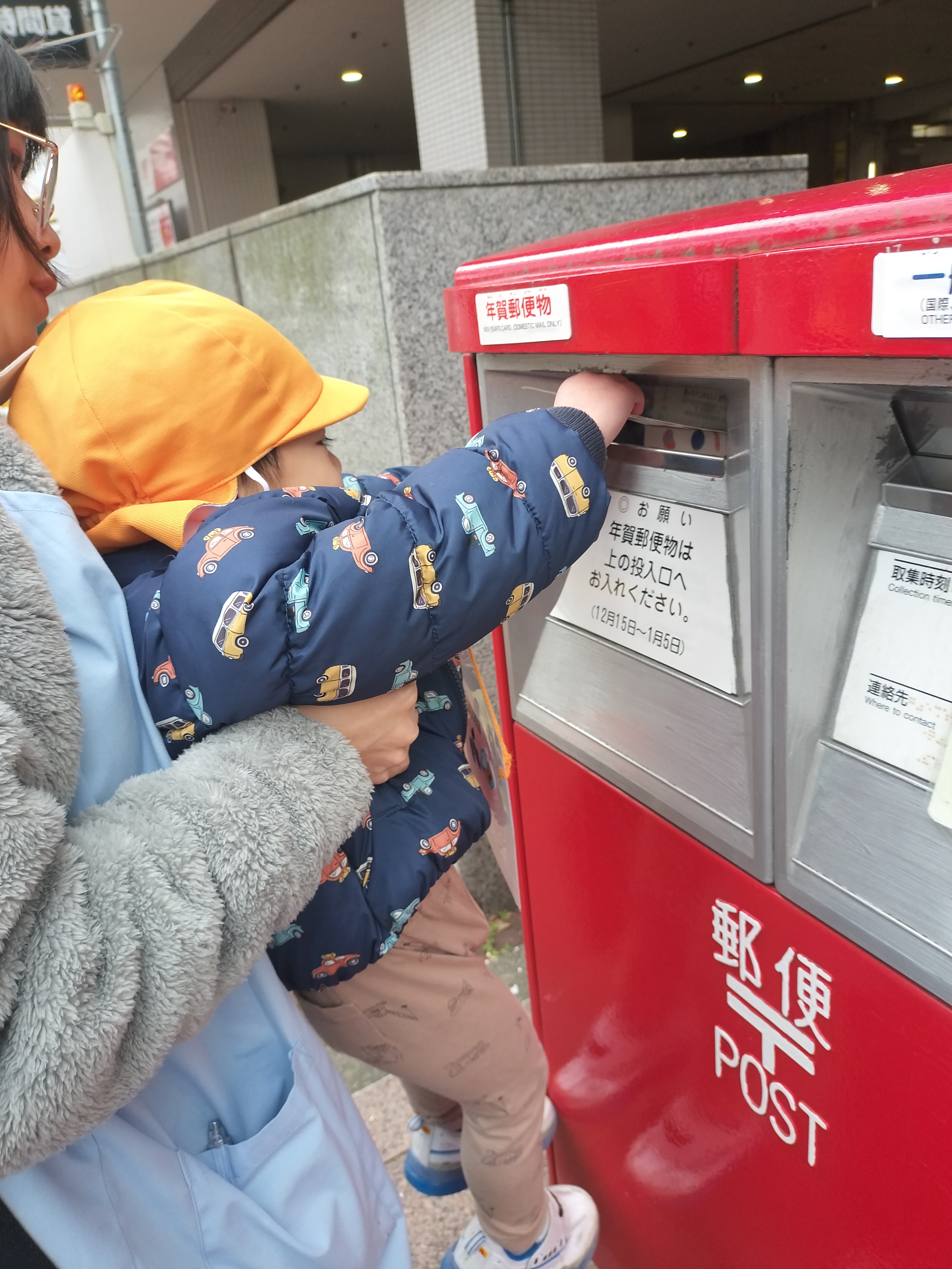 完成した年賀状は、子どもたちと一緒に郵便局のポストへ投函しに行きました💌