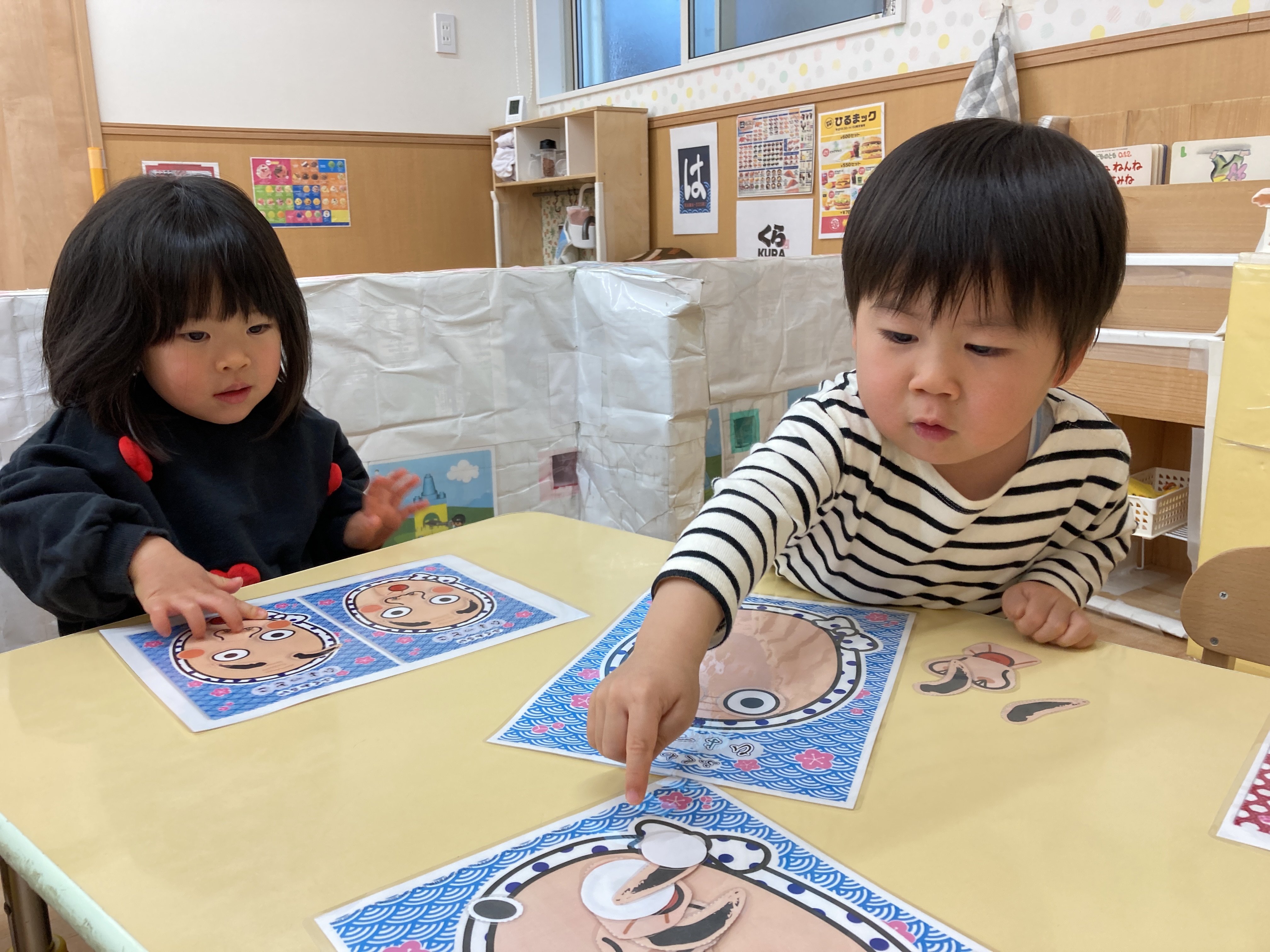 「どこかな?」と、考えながら福笑いを楽しむ姿が見られました❕