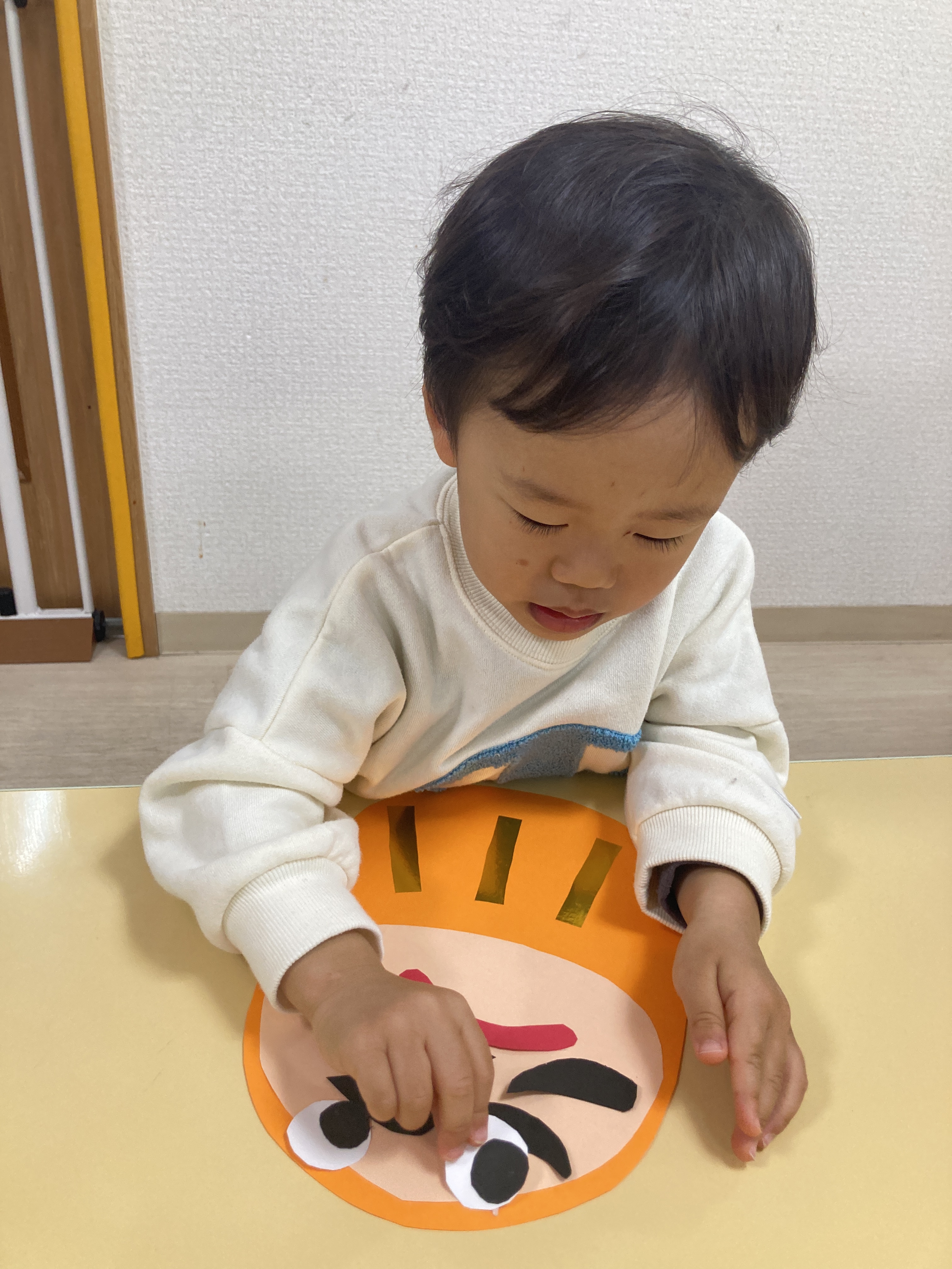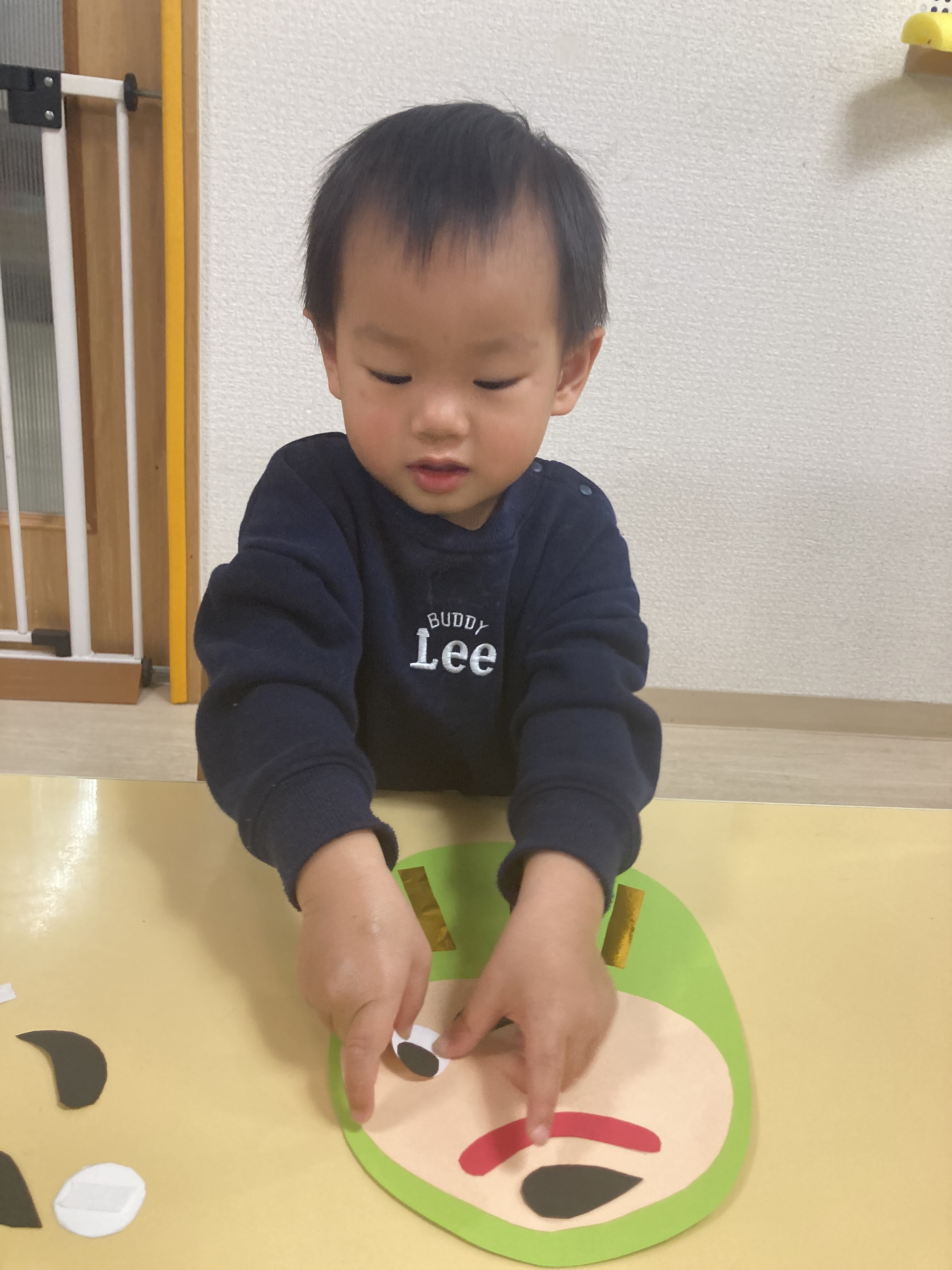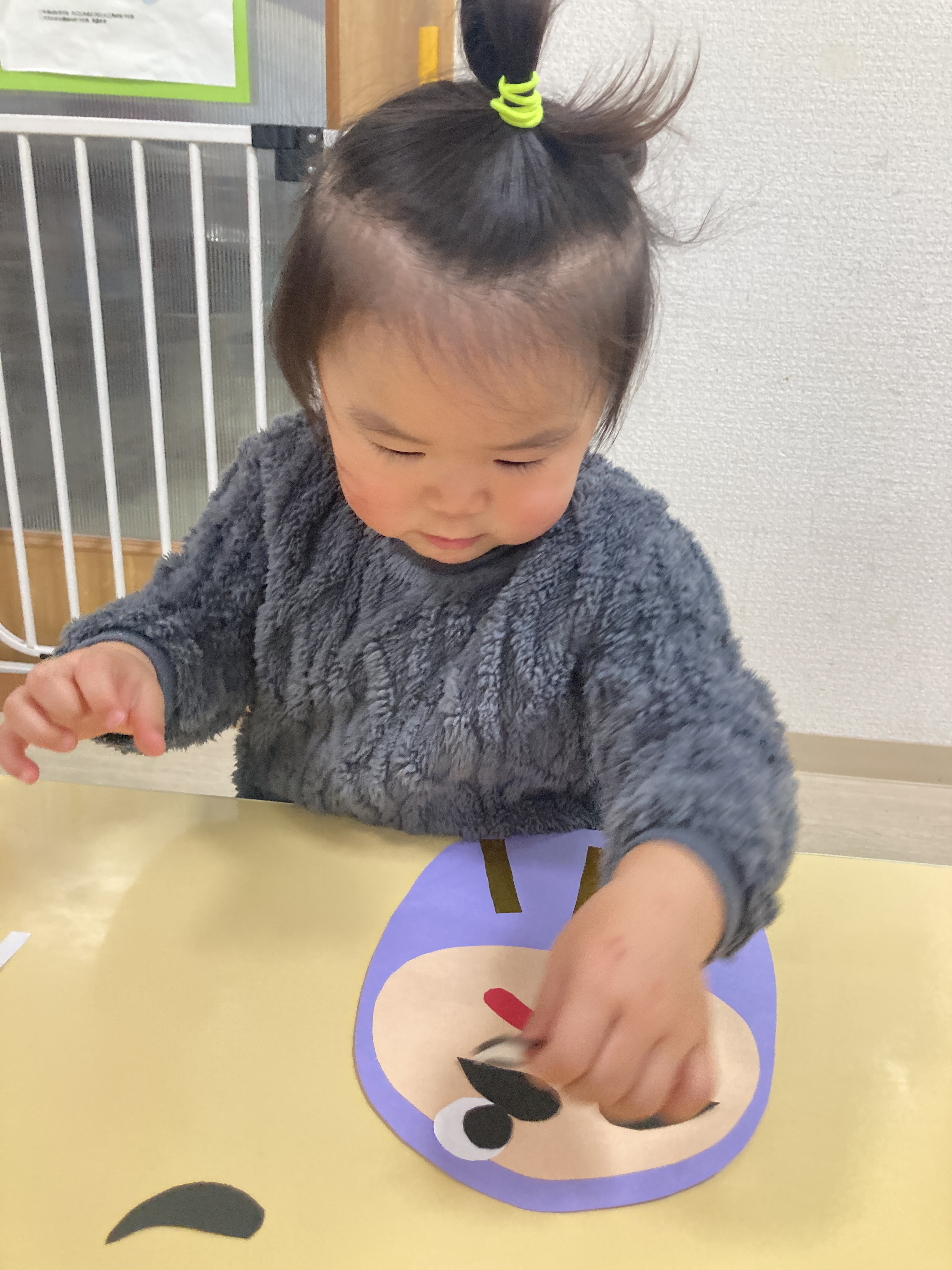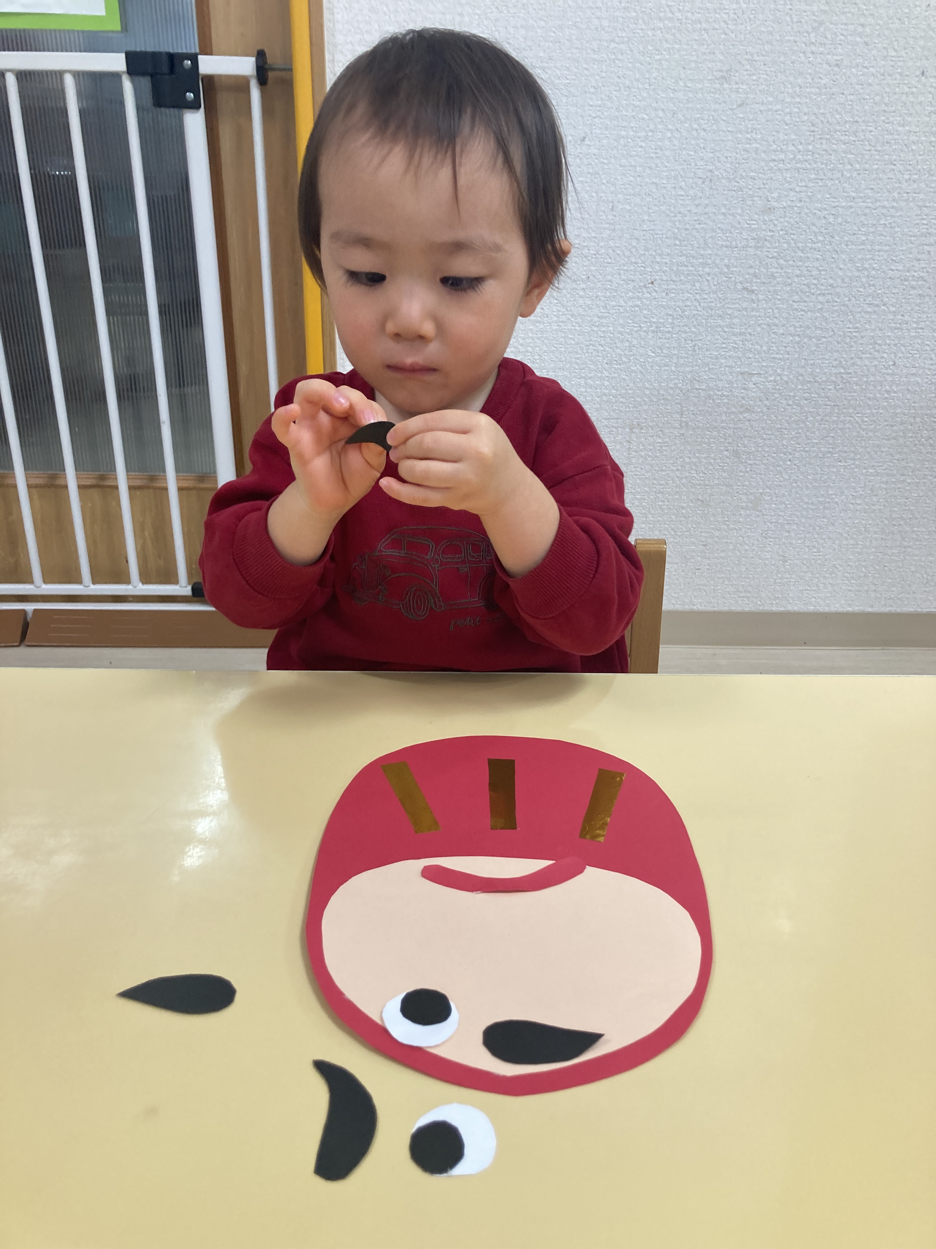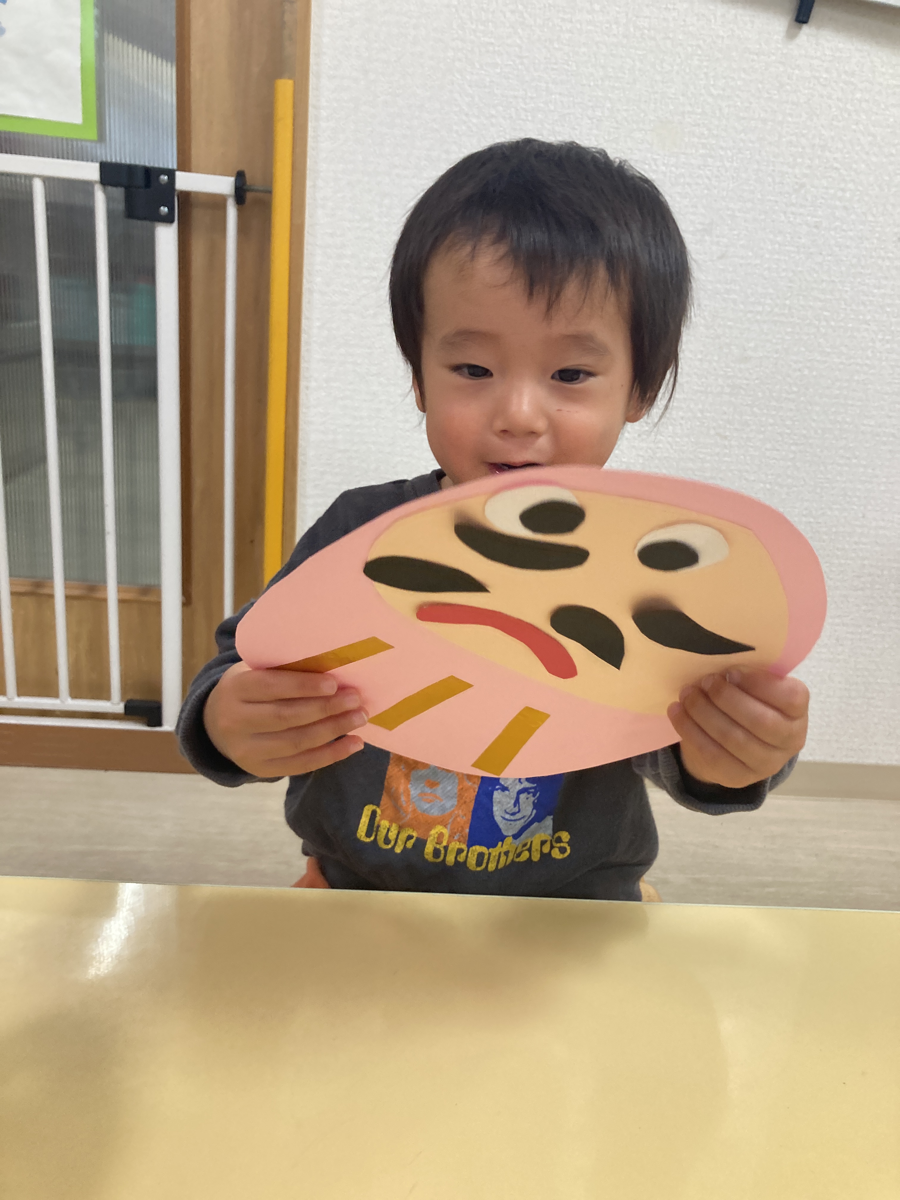 笑い声いっぱいの福笑いとかがみもちの製作を通して、子どもたちの成長を感じる