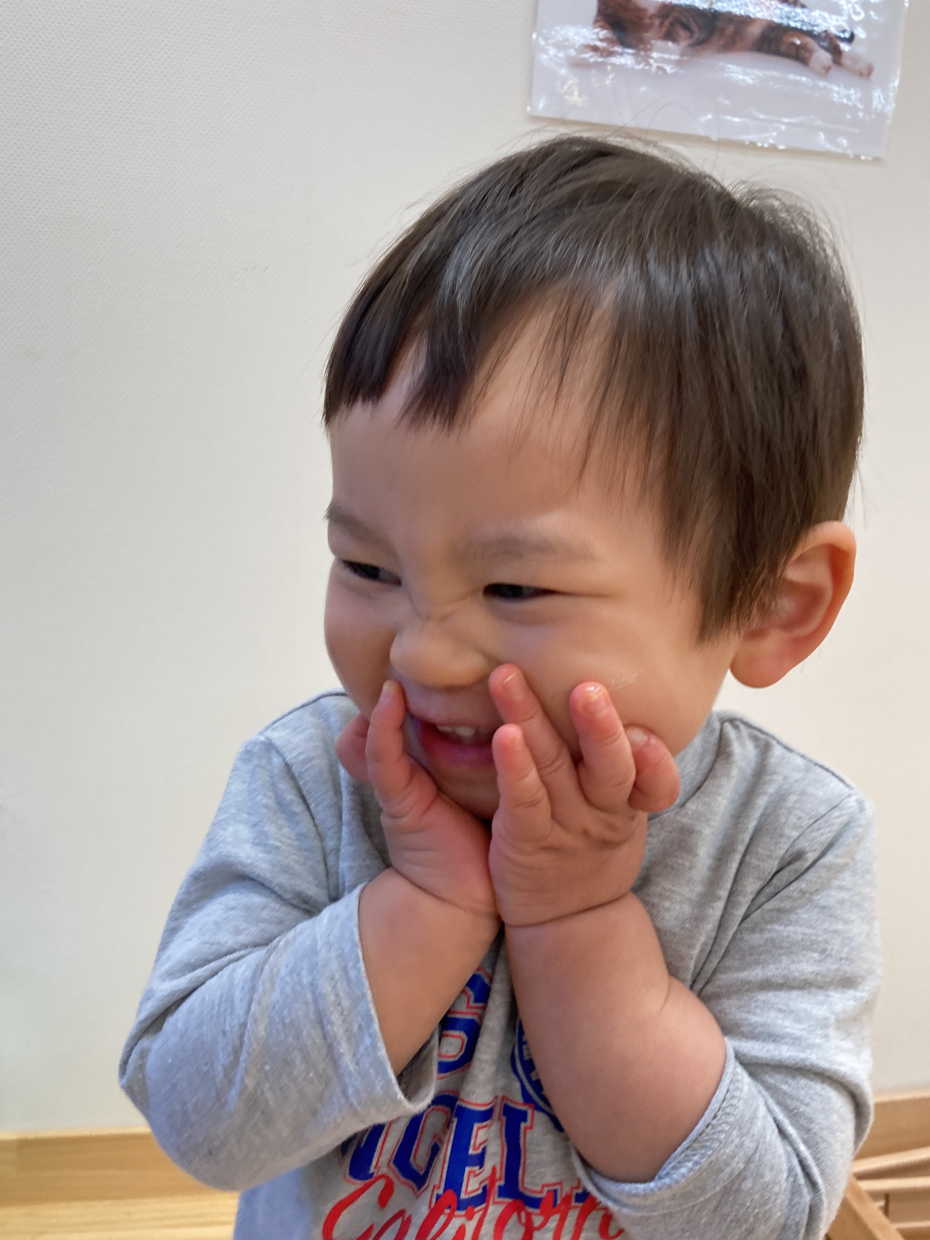 保育者やお友だちを見て思わず笑みがこぼれてしまいました![]()