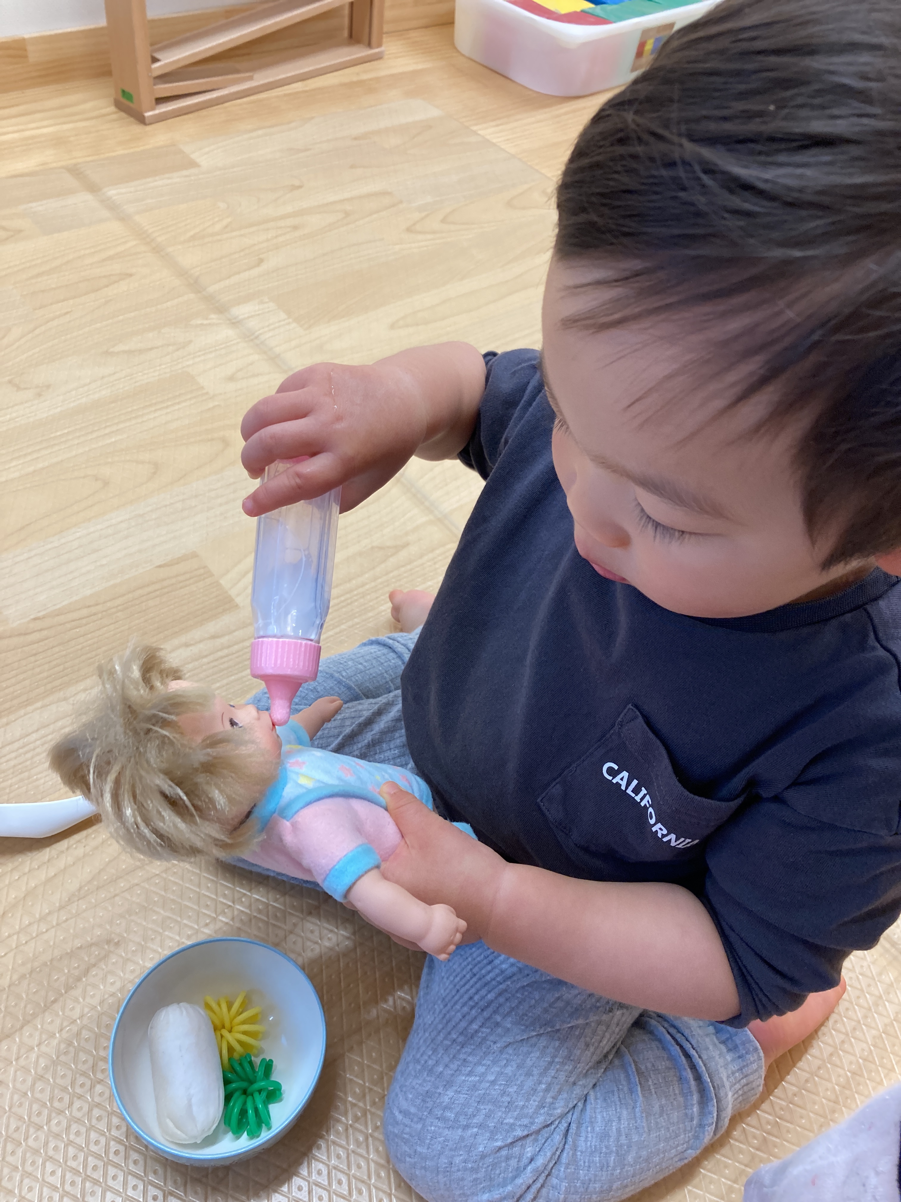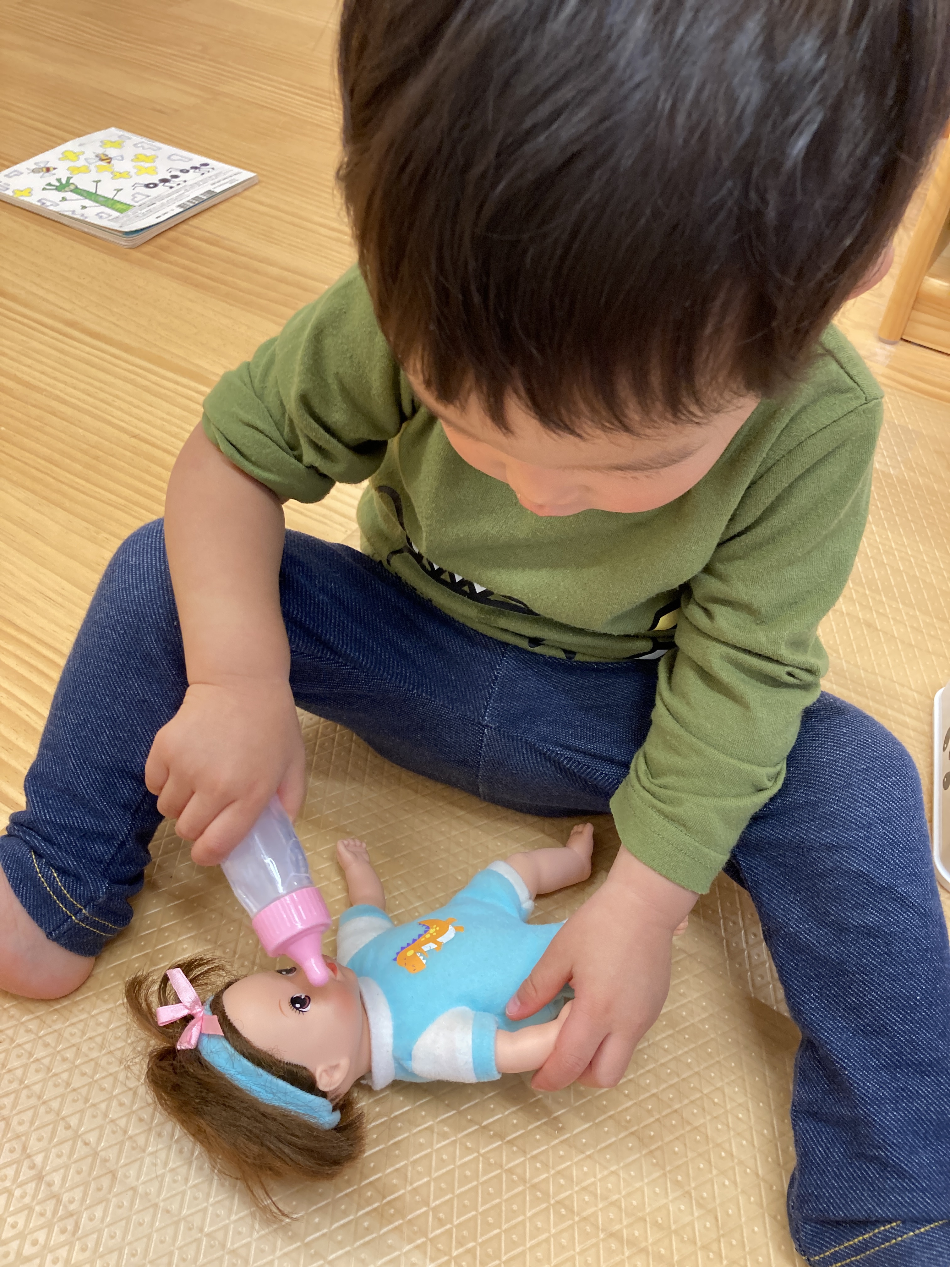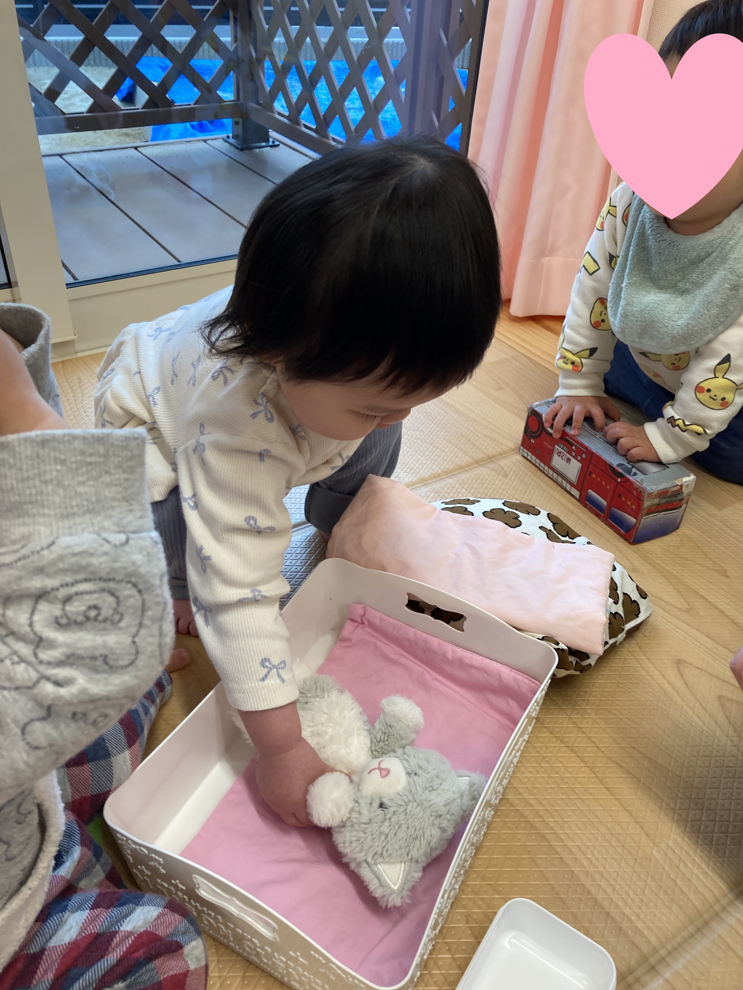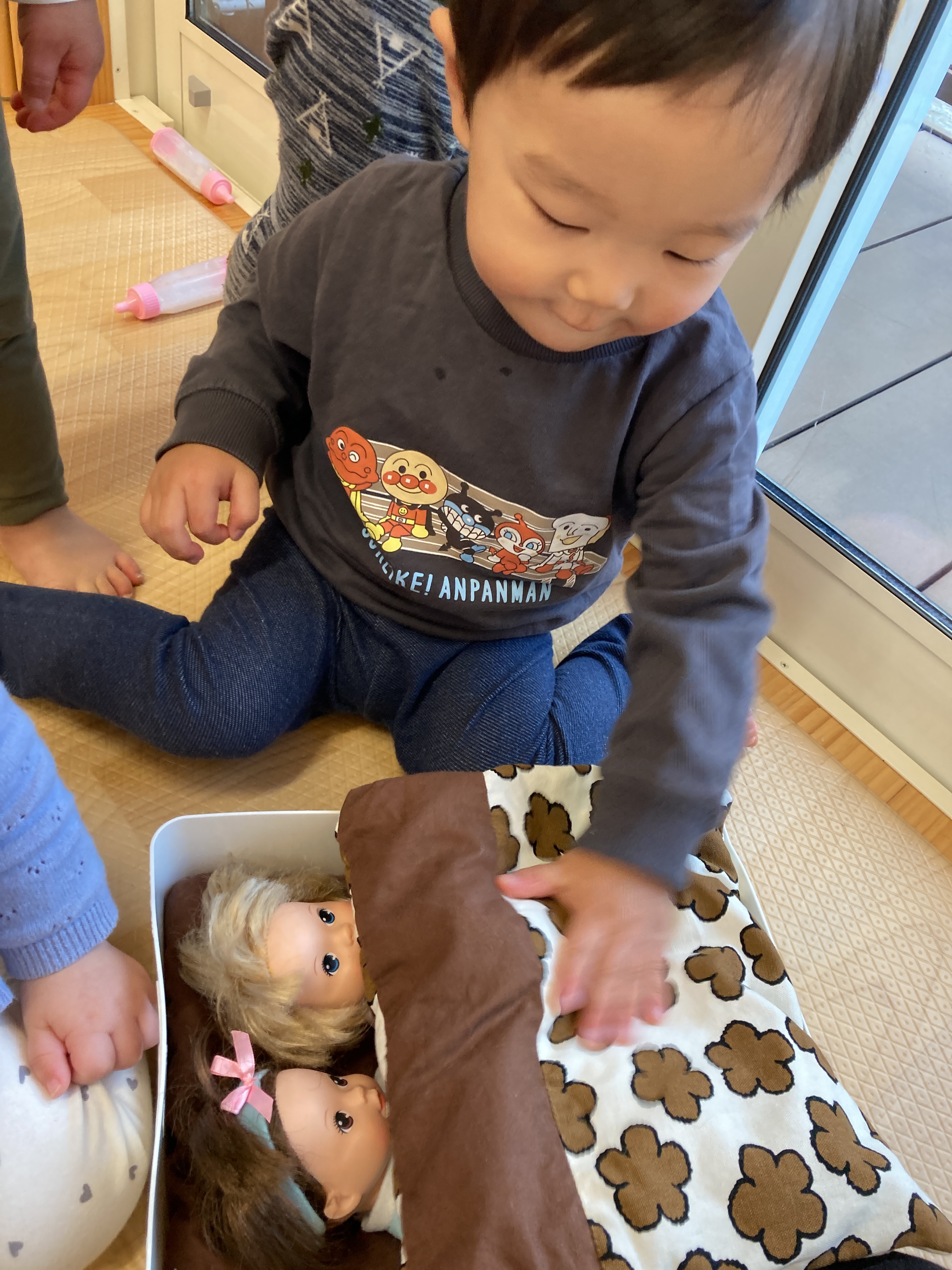最近は赤ちゃんや動物のぬいぐるみを優しくお世話してくれるきのみ組の子どもたちです![]()