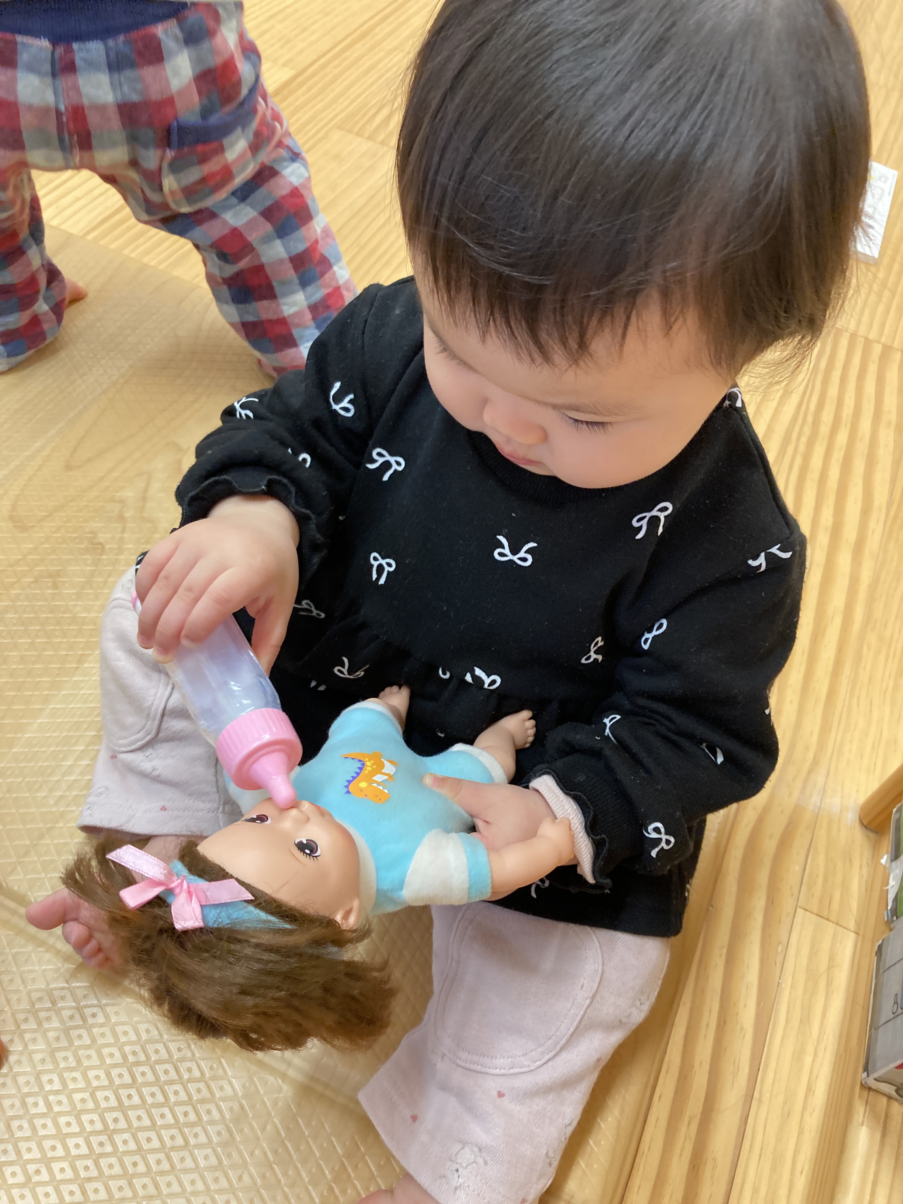 お人形さんを見つめる視線は優しく、ちょっぴりお兄さん、お姉さん気分のきのみ組さんです!!