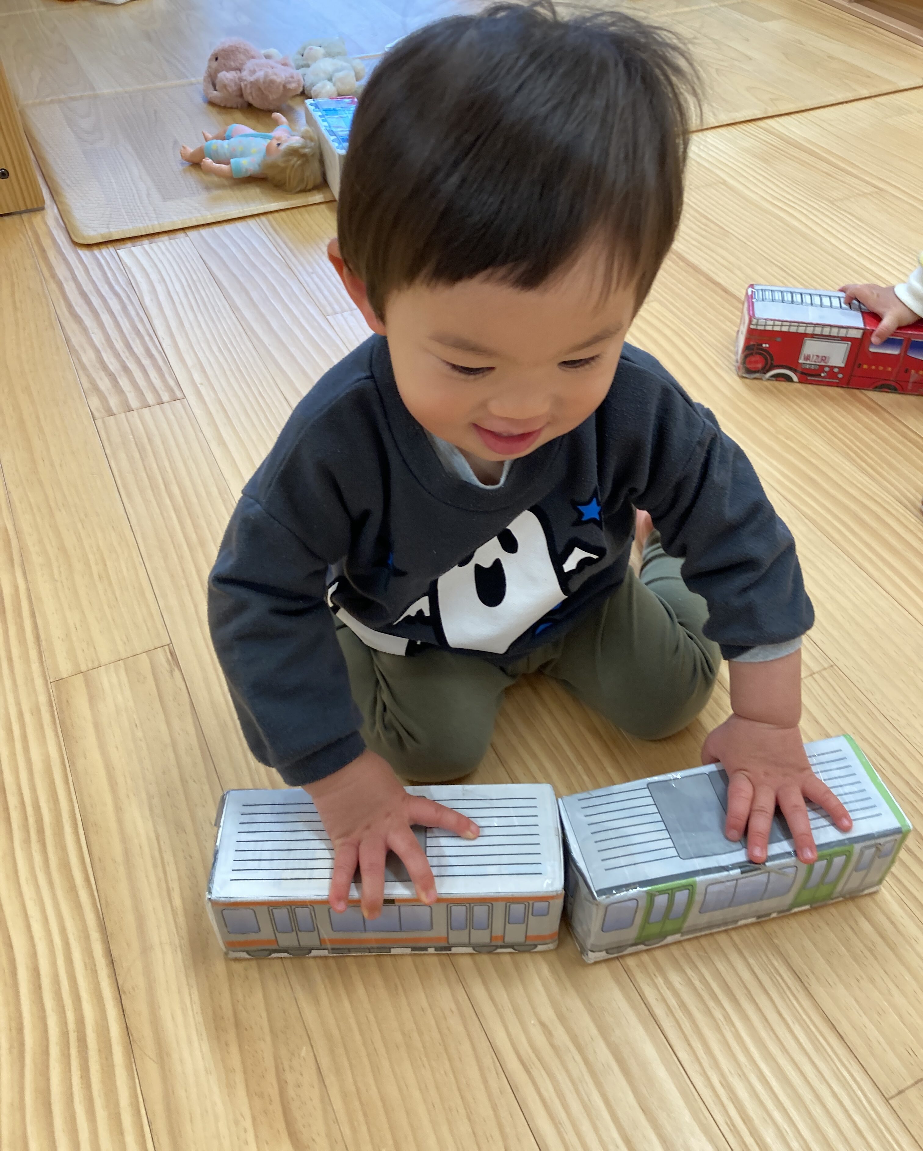 乗り物のおもちゃも大人気!毎日お友だちと一緒にお部屋の中を走らせています!
