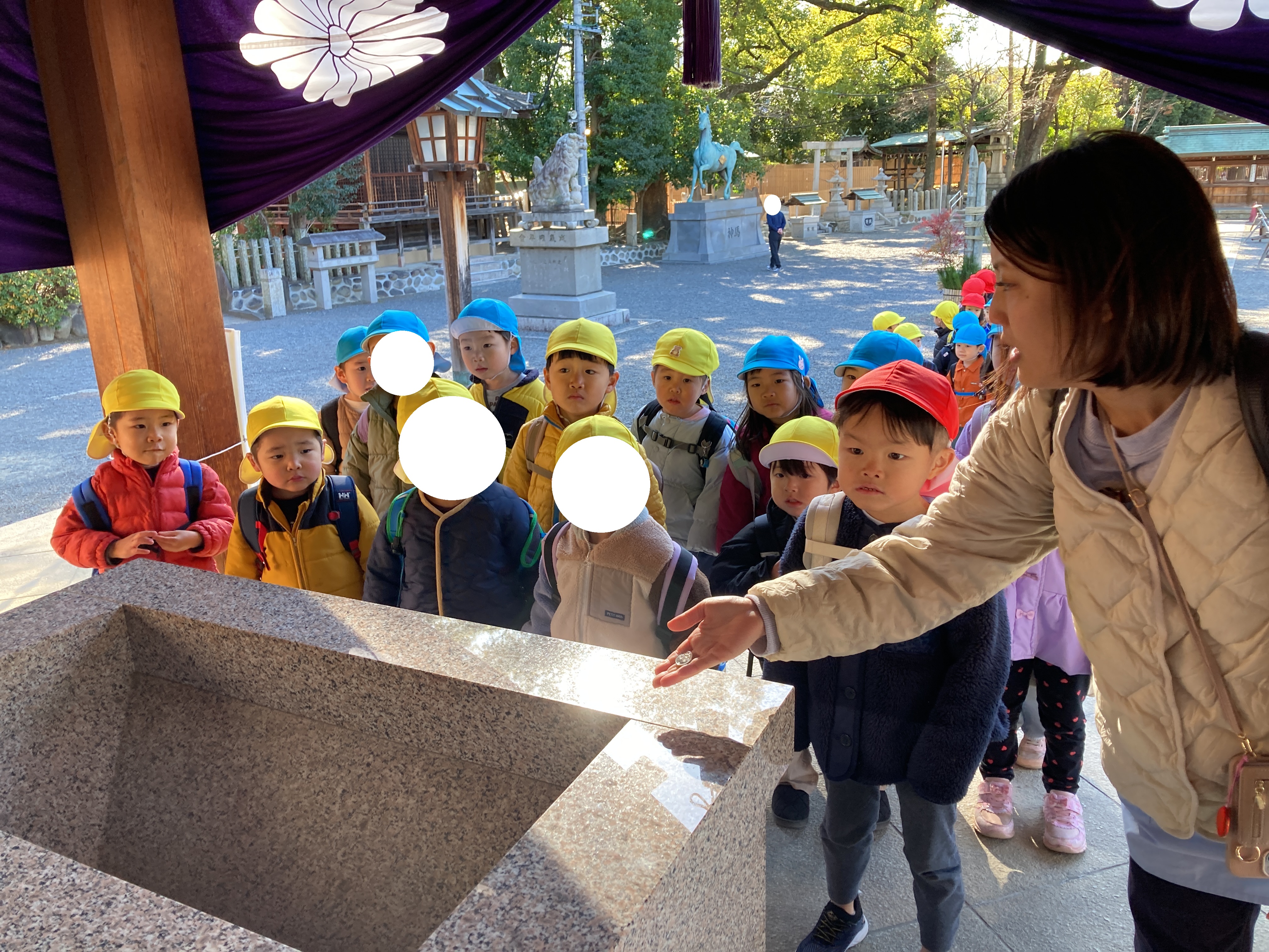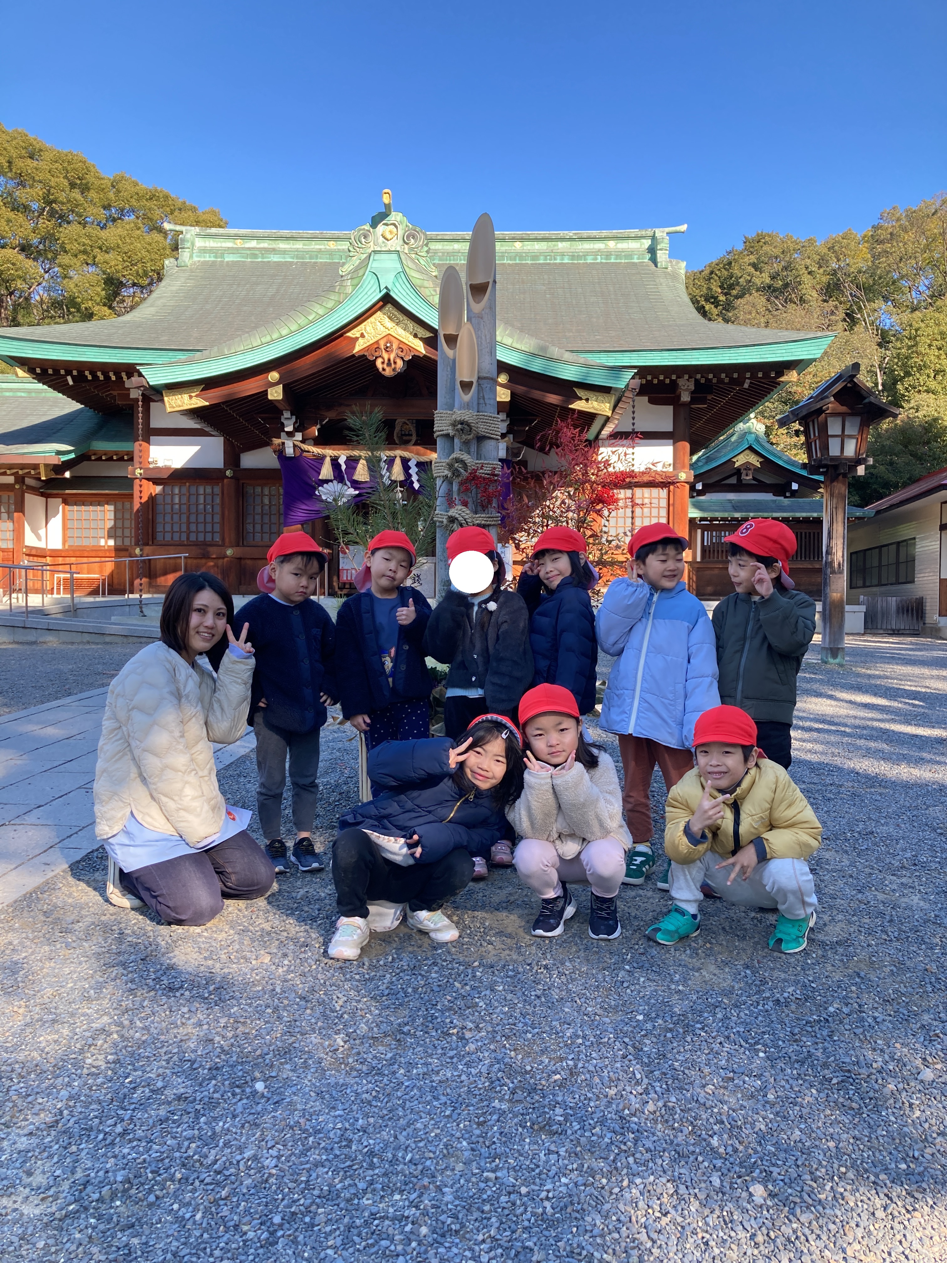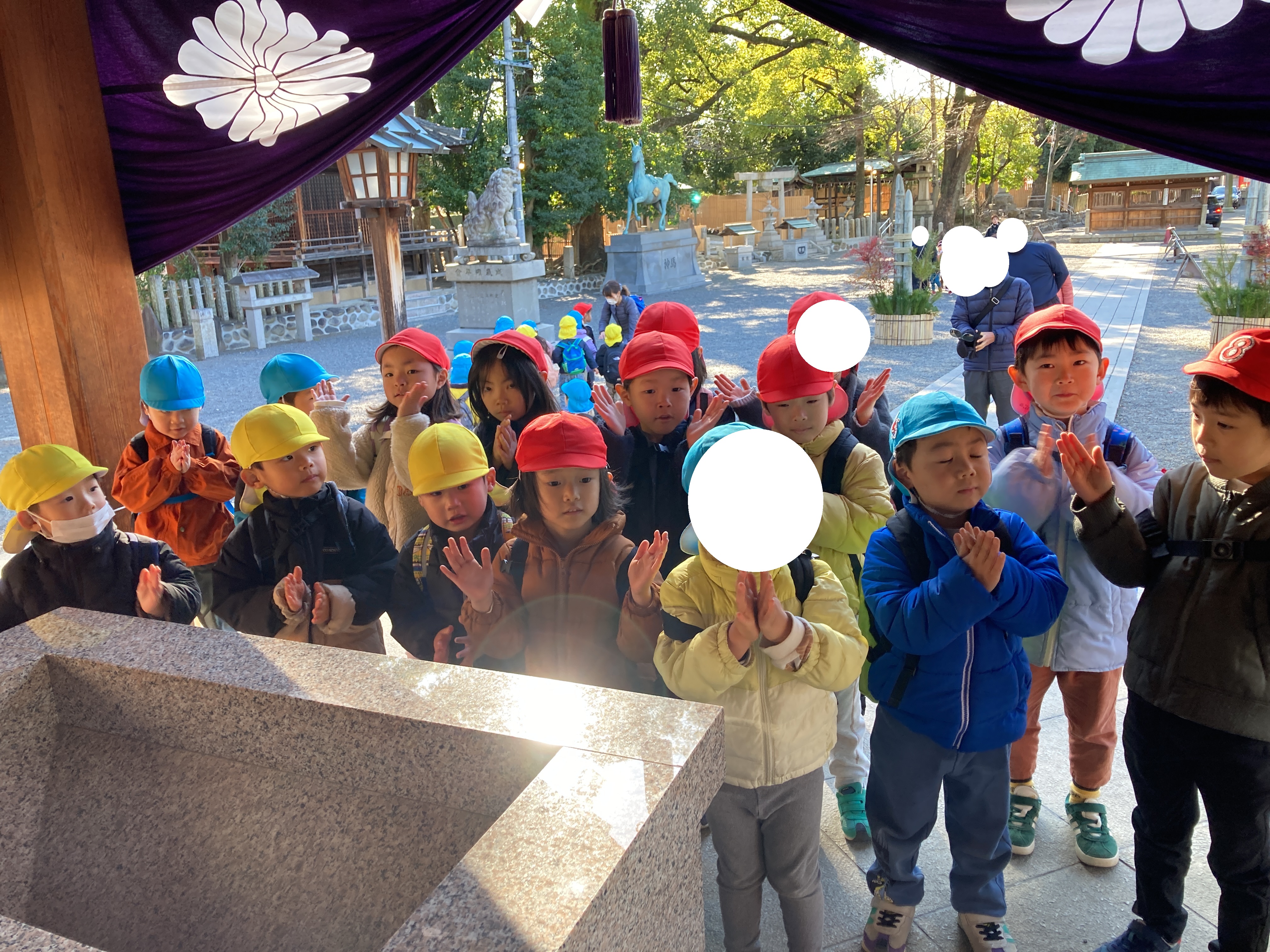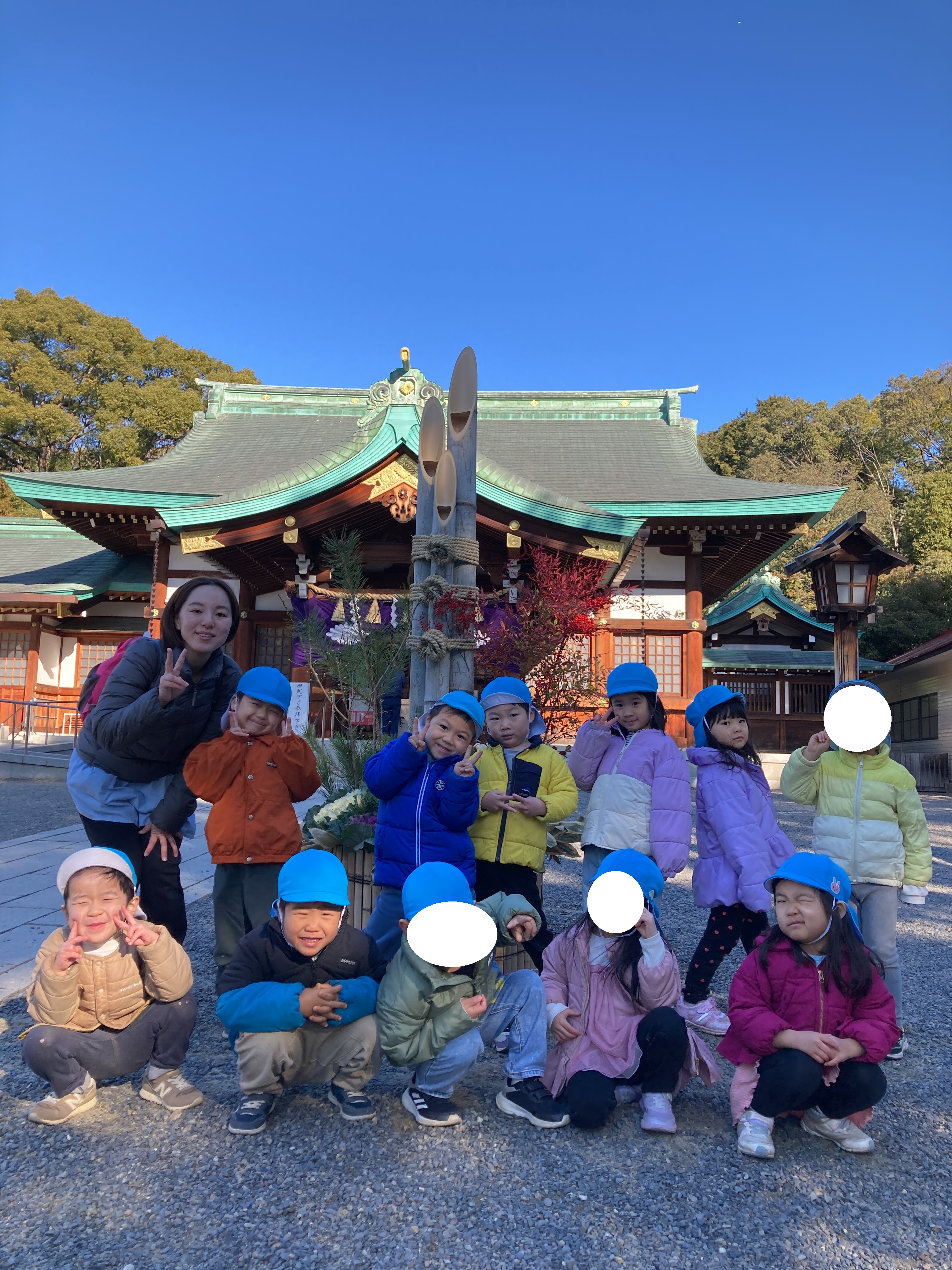 新年を迎えた次の日、3・4・5歳児のみんなで川原神社までお参りに行きました❤️