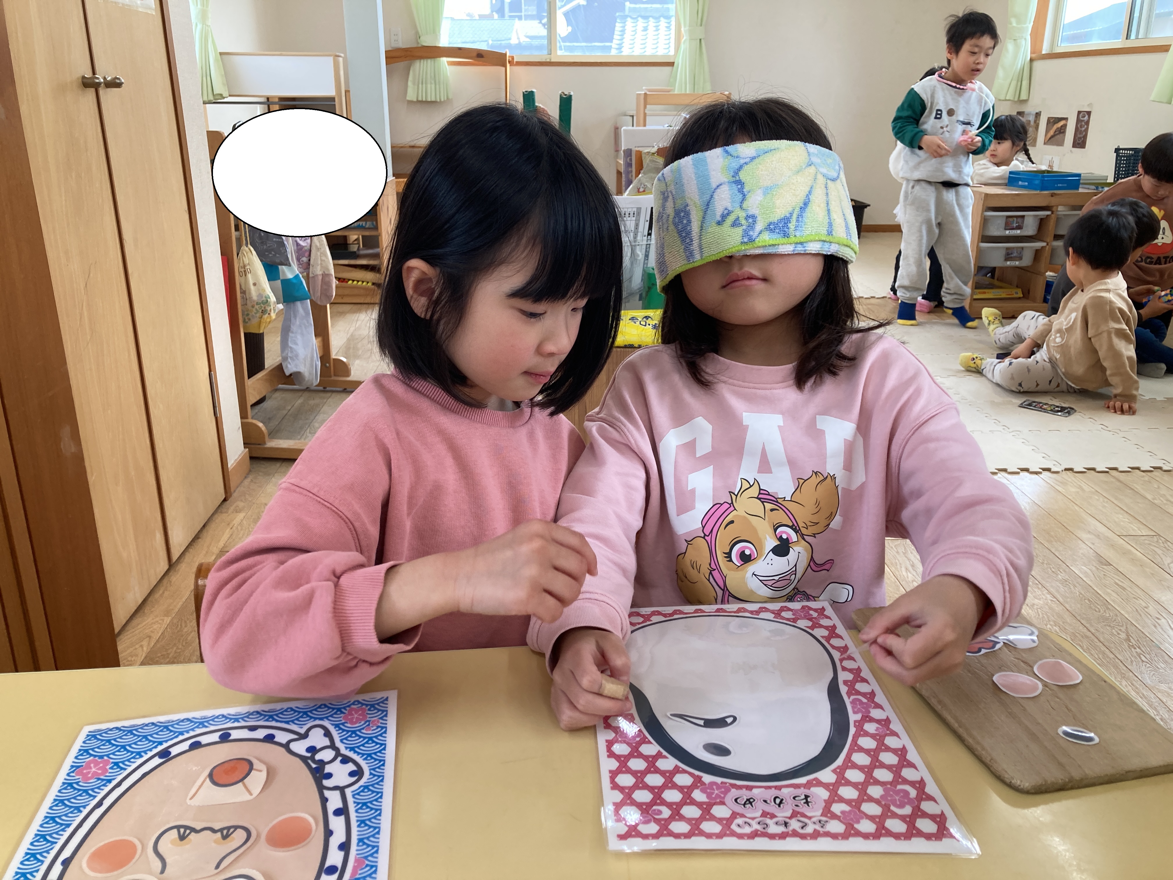 お正月の伝統遊び、「福笑い」をして楽しみました![]()