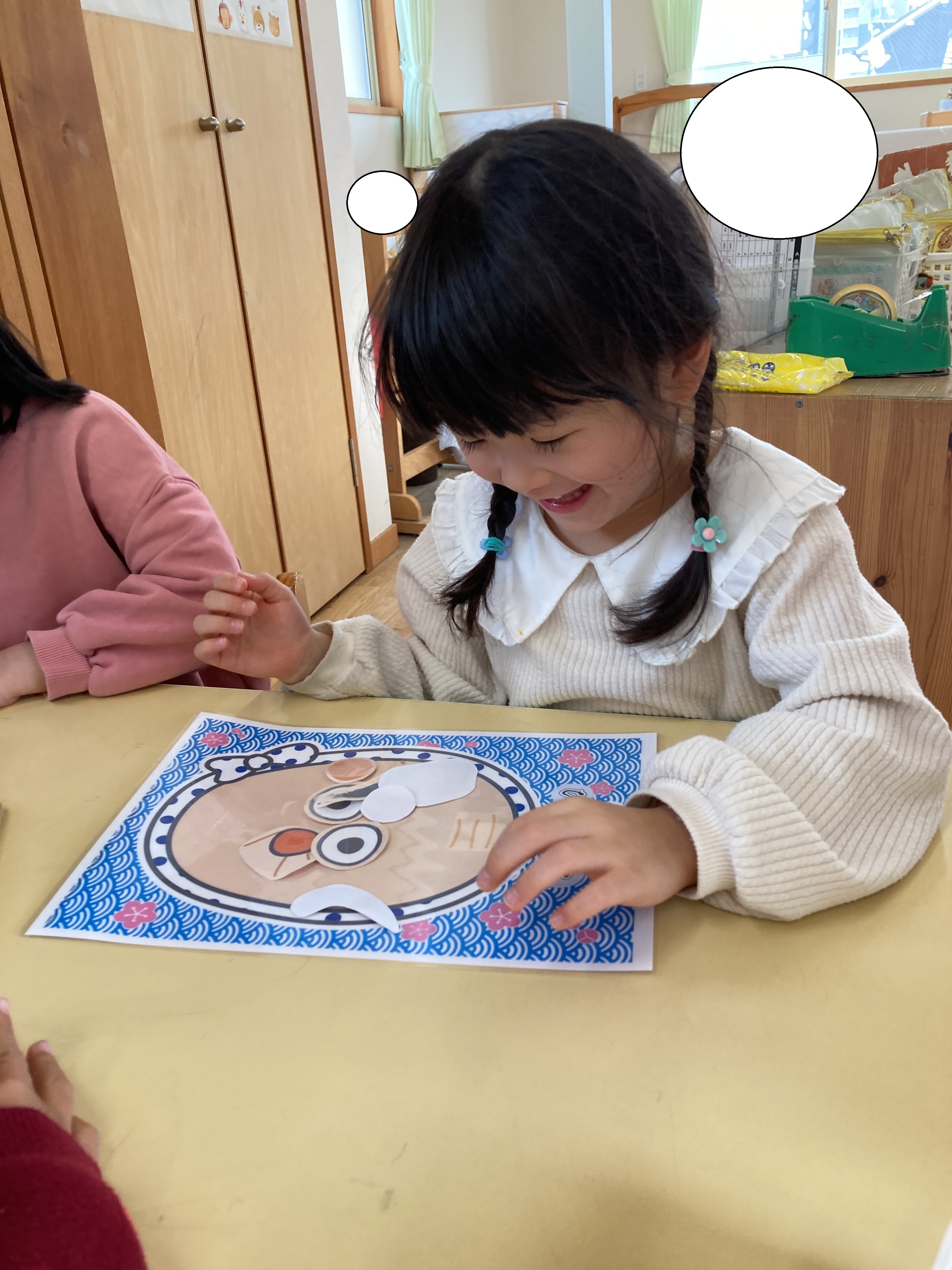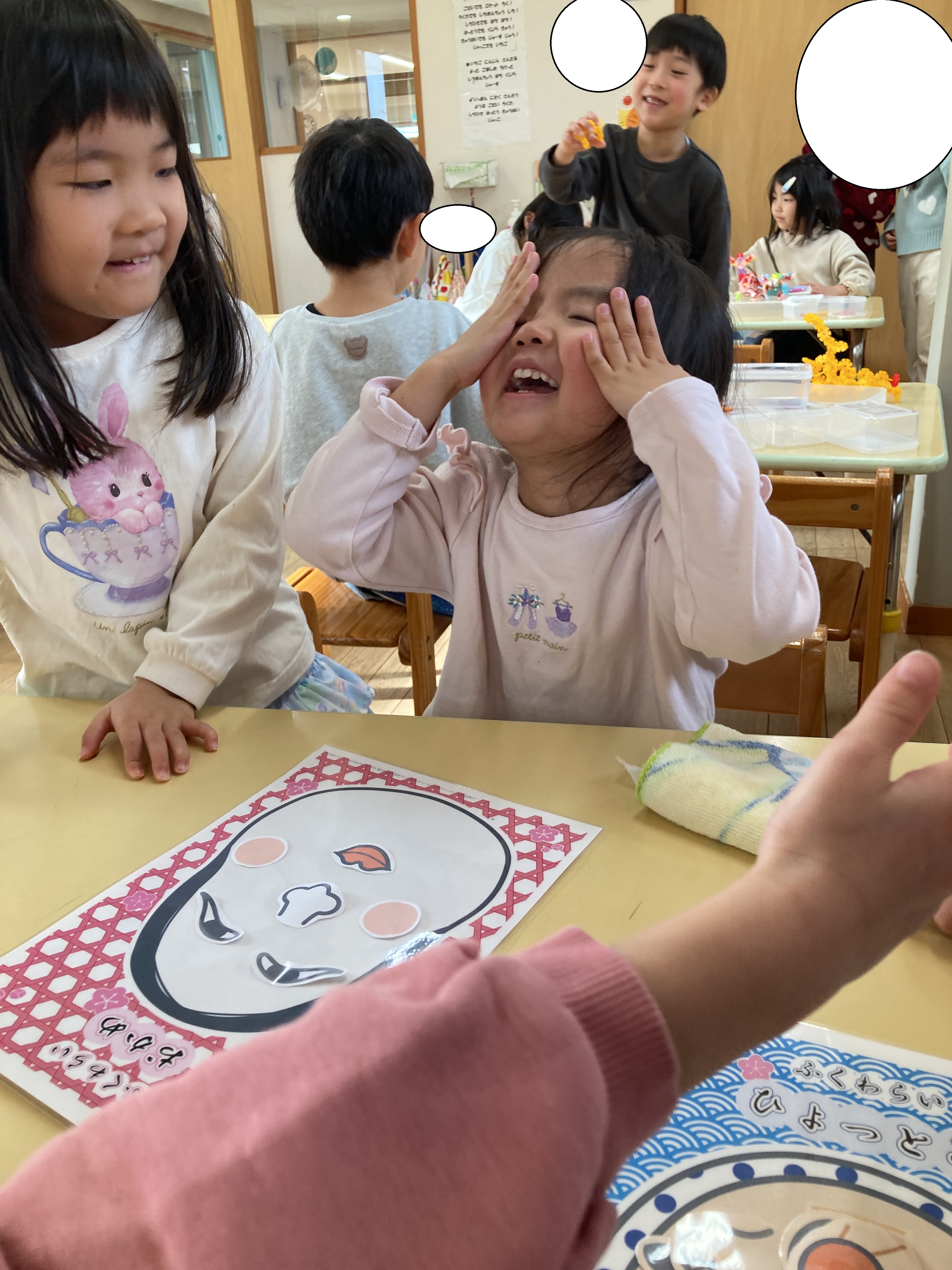 「笑う門には福来る」の意味がこめられたこの遊び、遊び方を子どもたちに説明すると「面白そう!」と興味津々です![]()