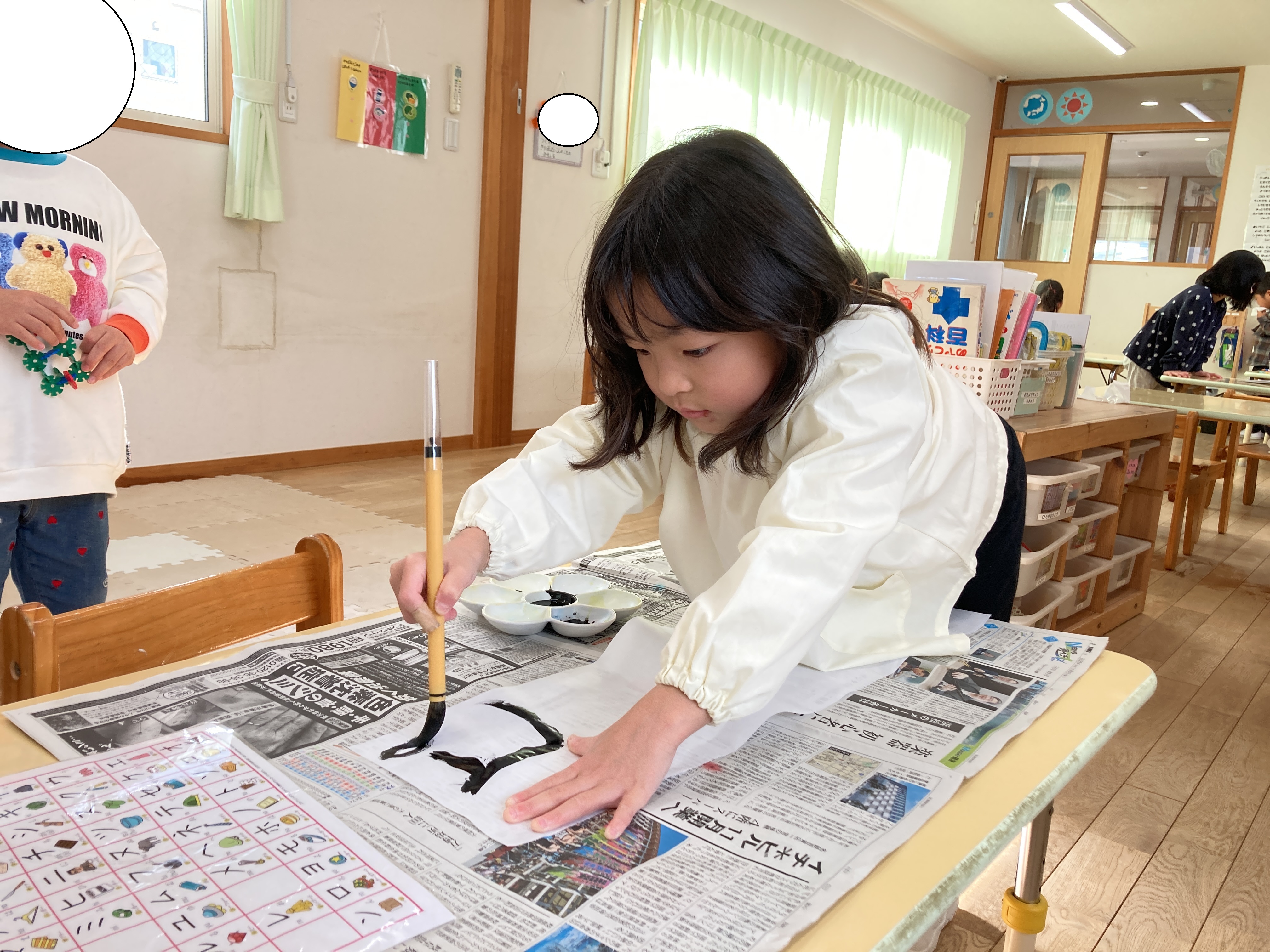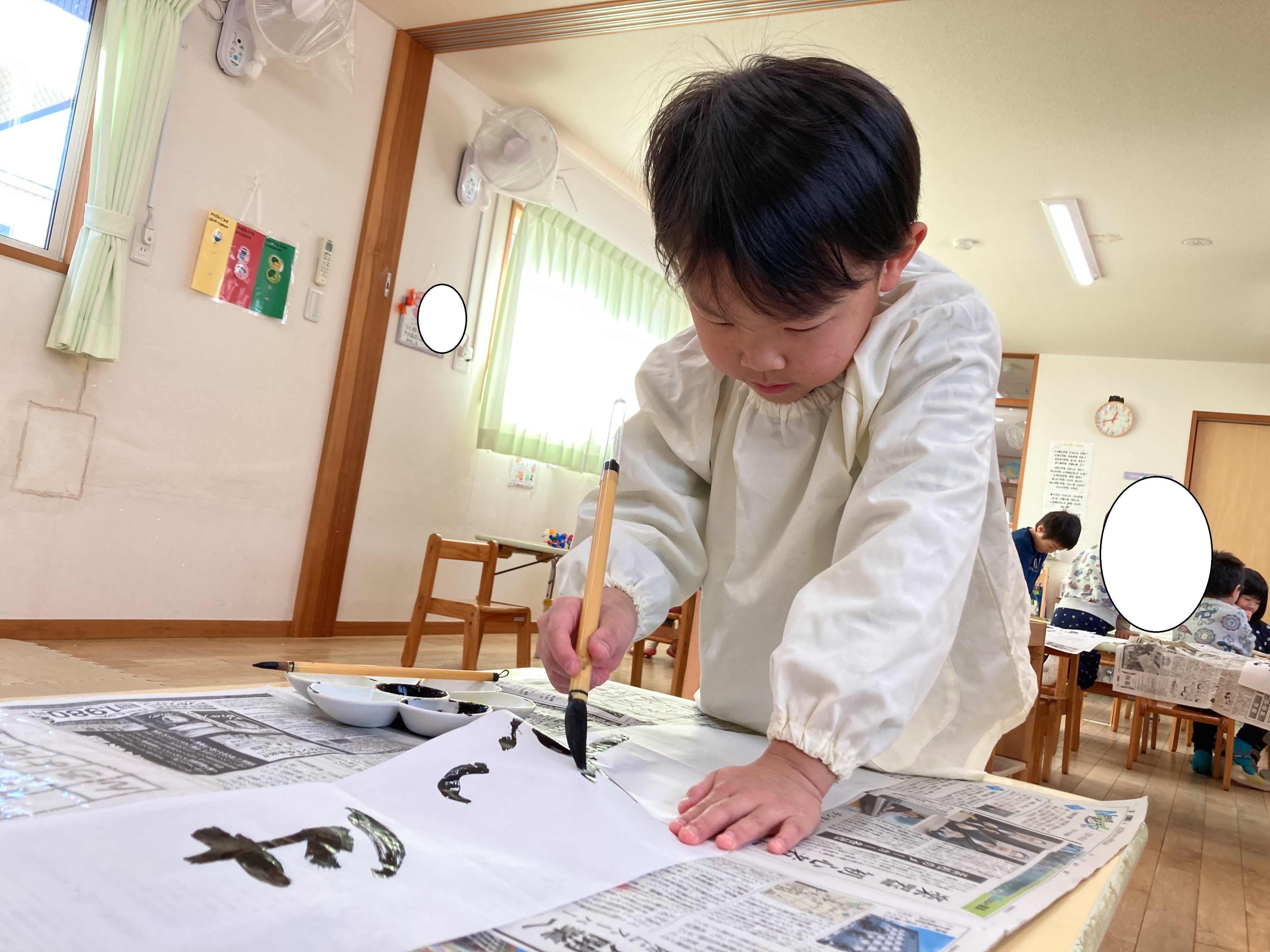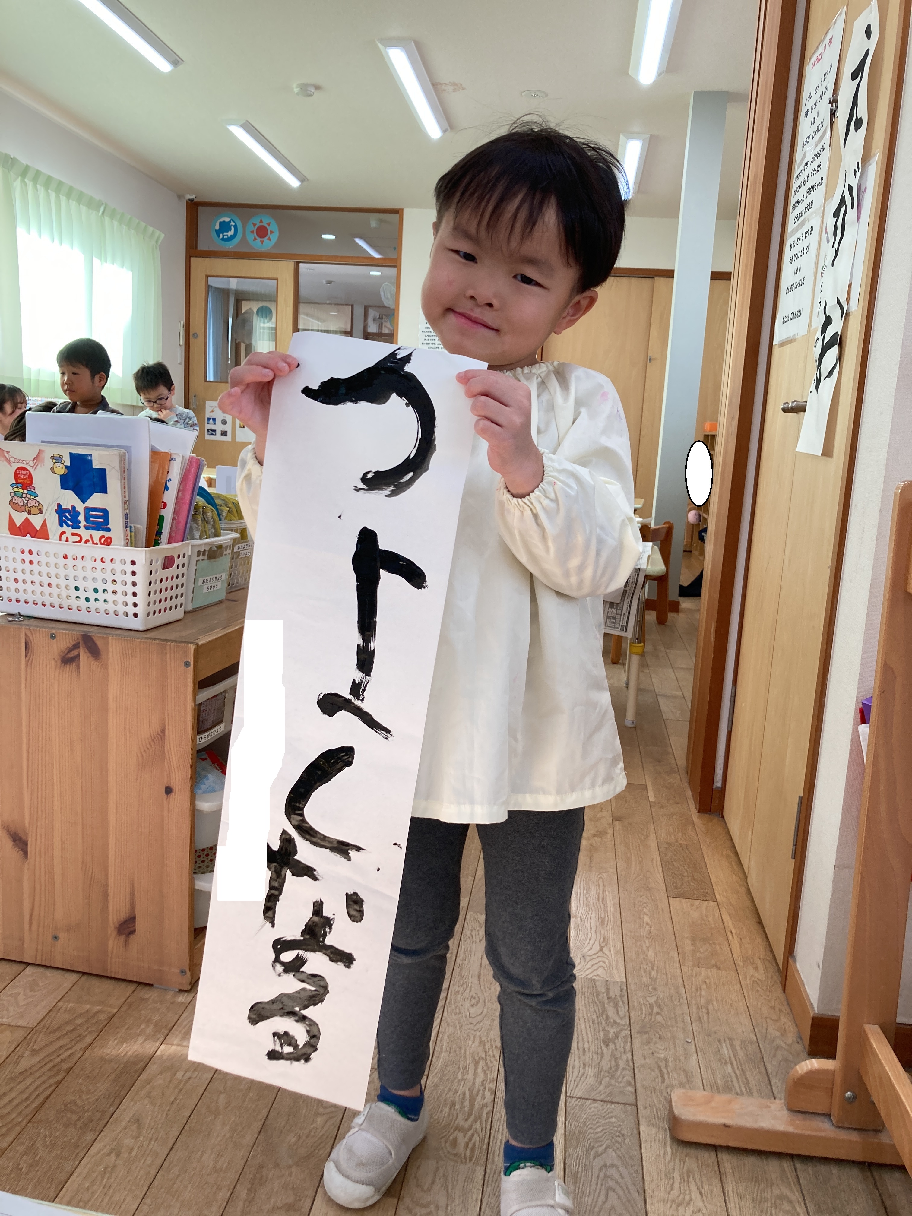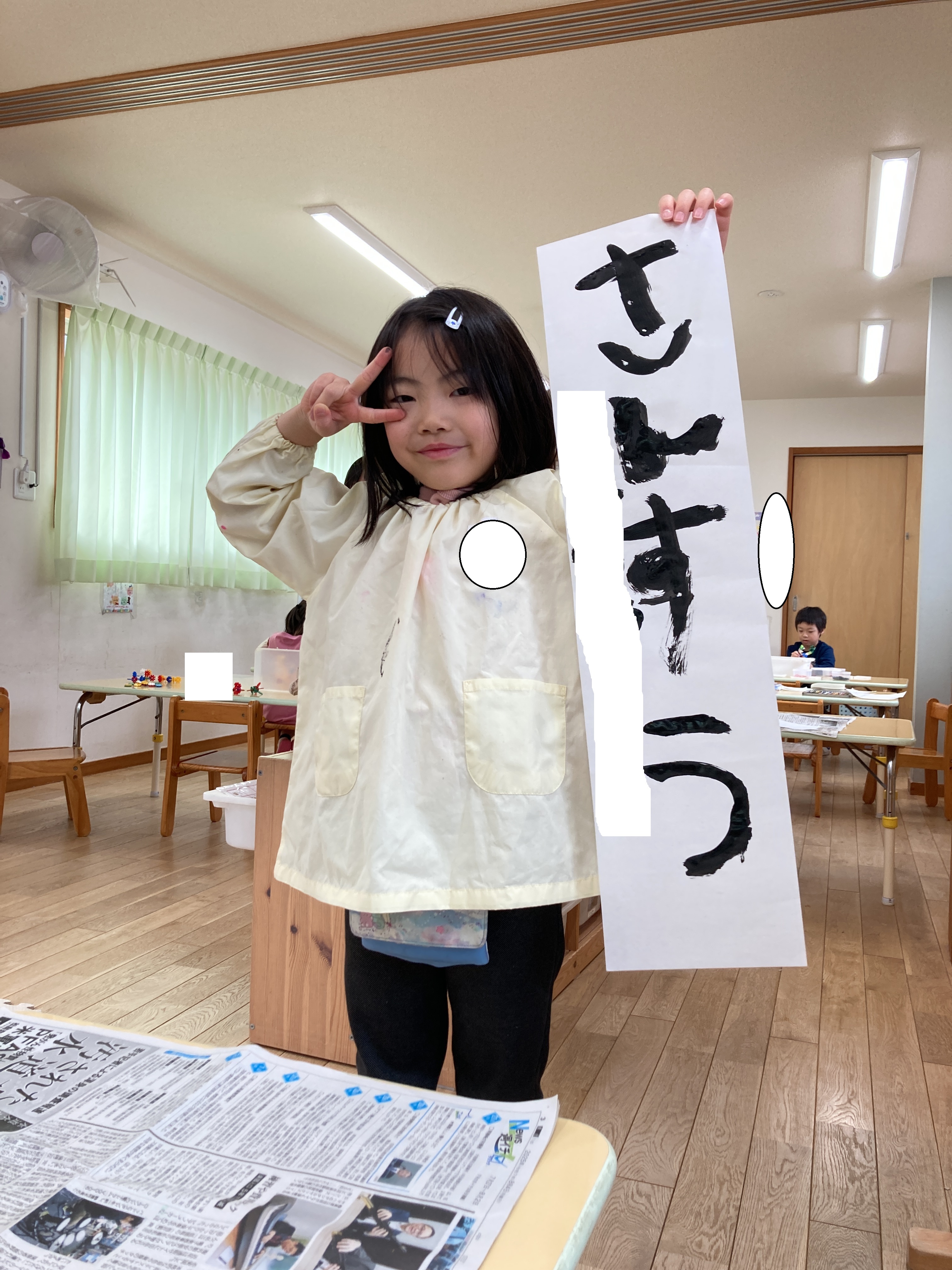 「半紙っておさえてないと、筆にくっついてきちゃう!」と慌てる姿も見られました![]()