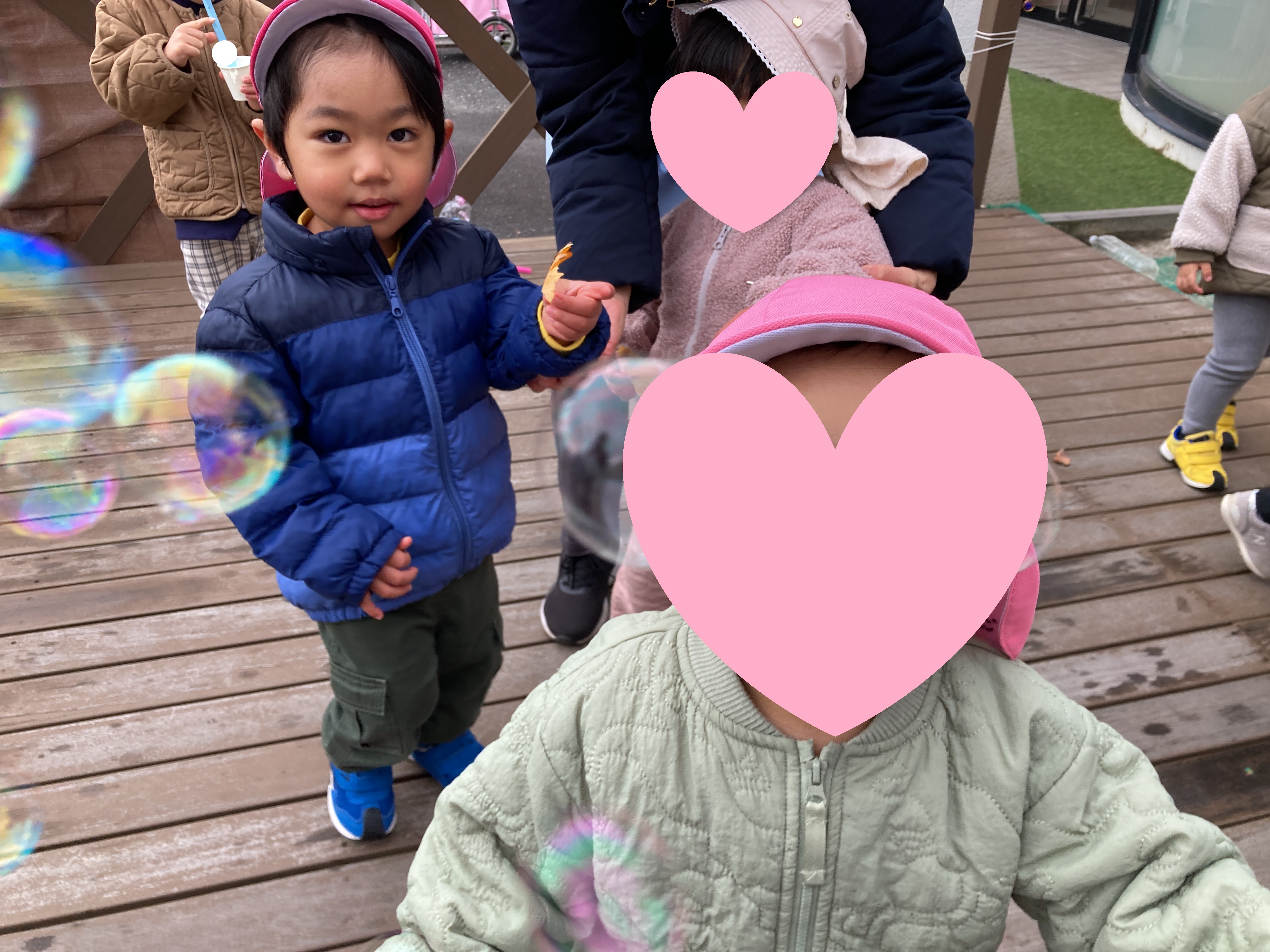 途中からは1歳児さんも合流し、みんなでシャボン玉タイムに🫧追いかけたり、触ろうとしたり、それぞれの年齢ならではの関わり方で、異年齢交流を楽しむ姿が見られました![]()
