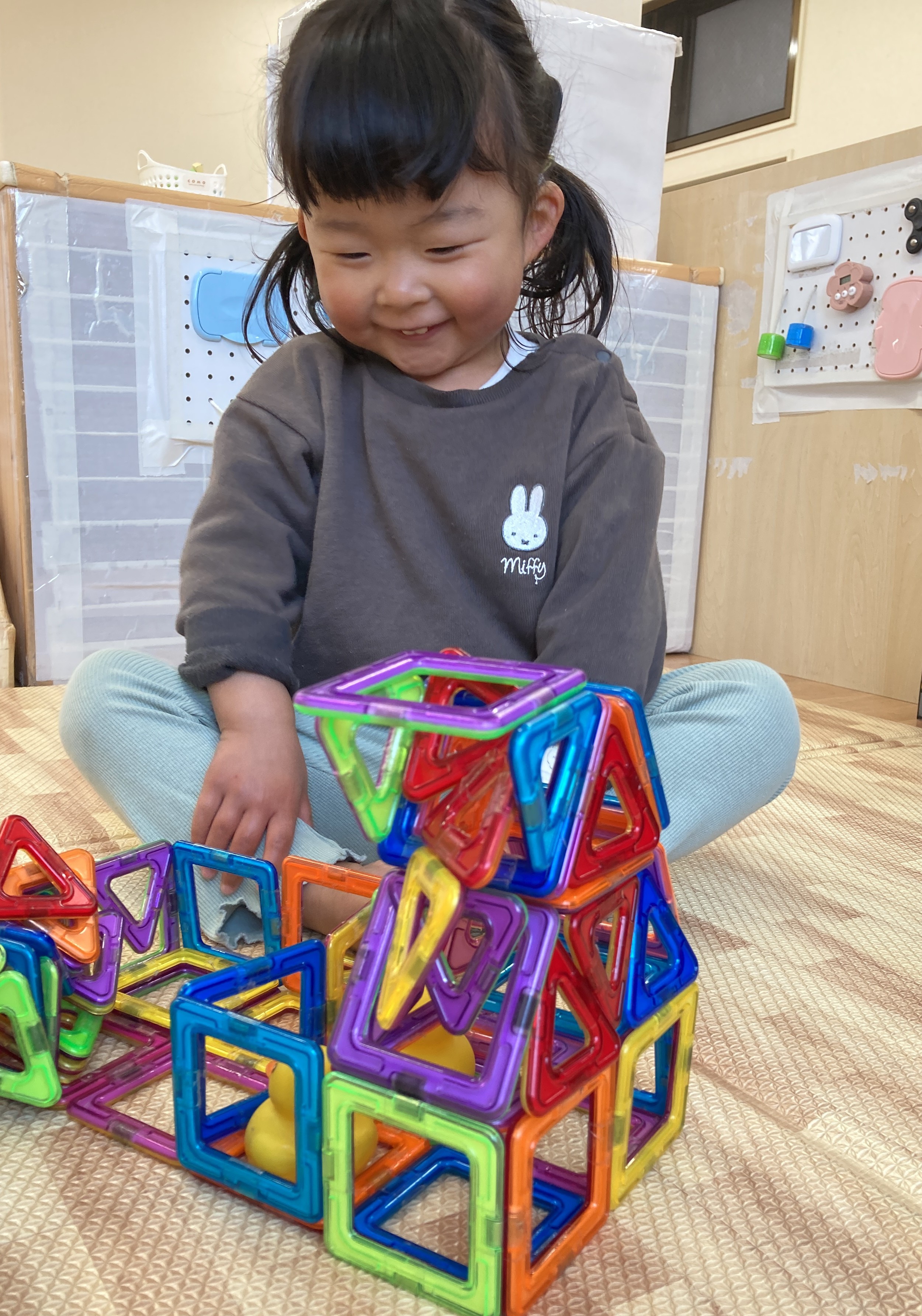 マグフォーマーでカラフルなお家を作っていました