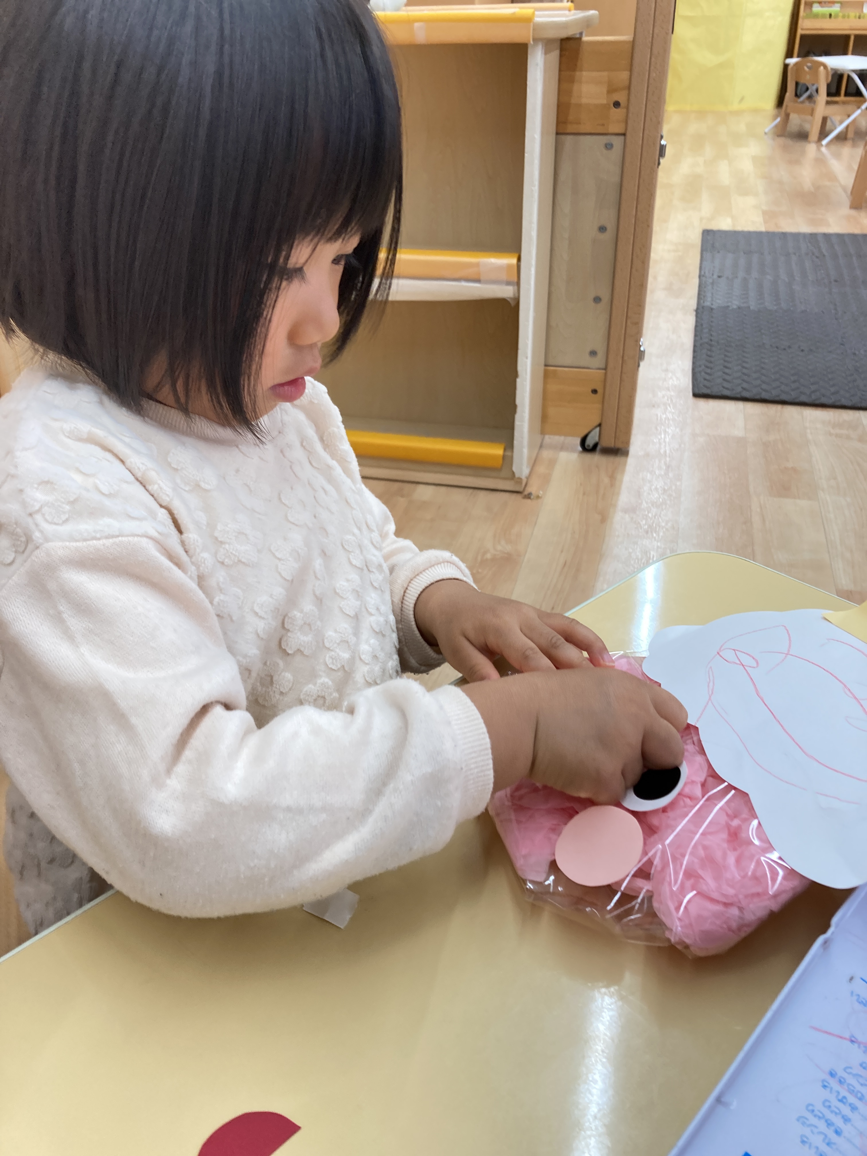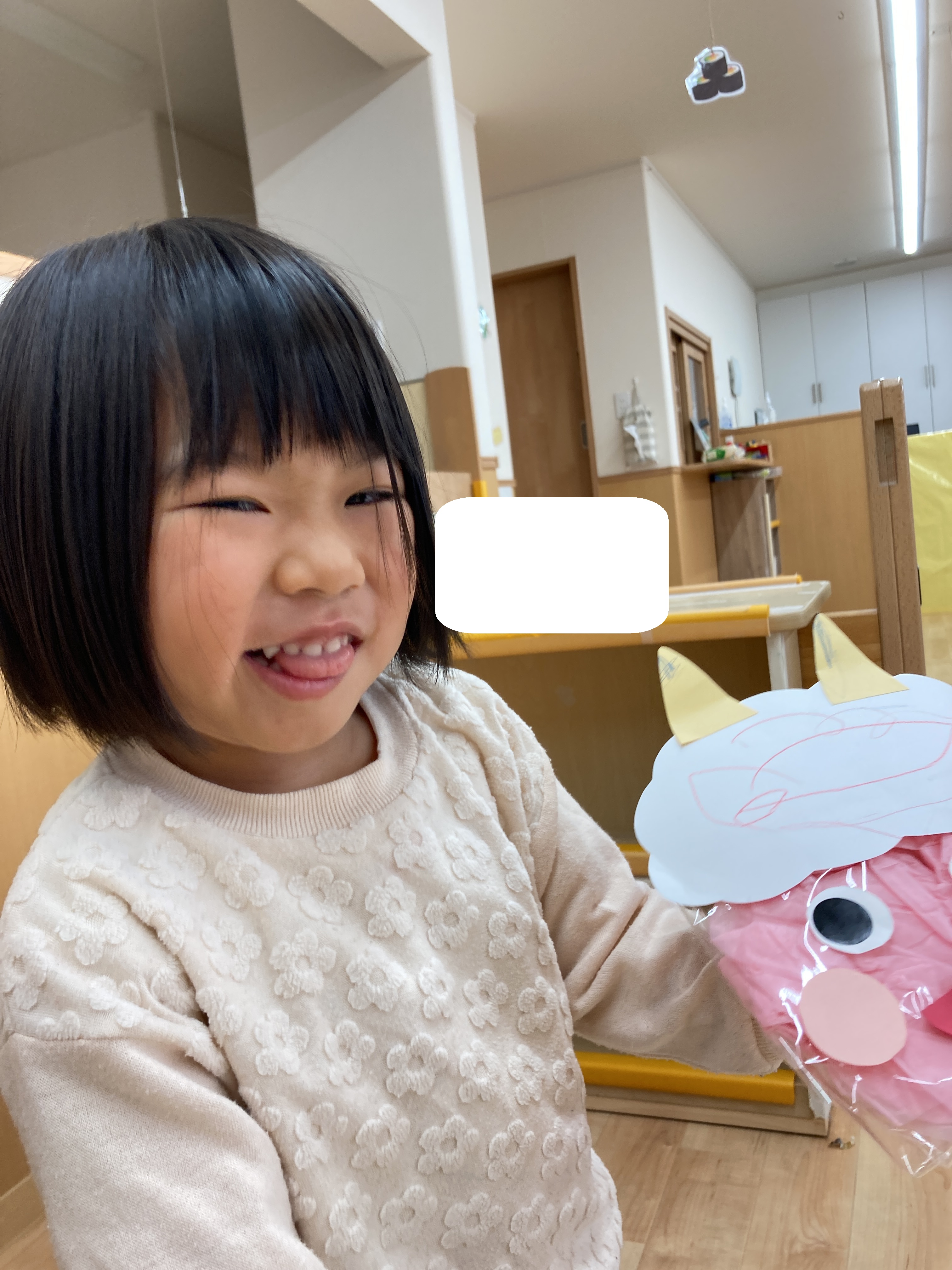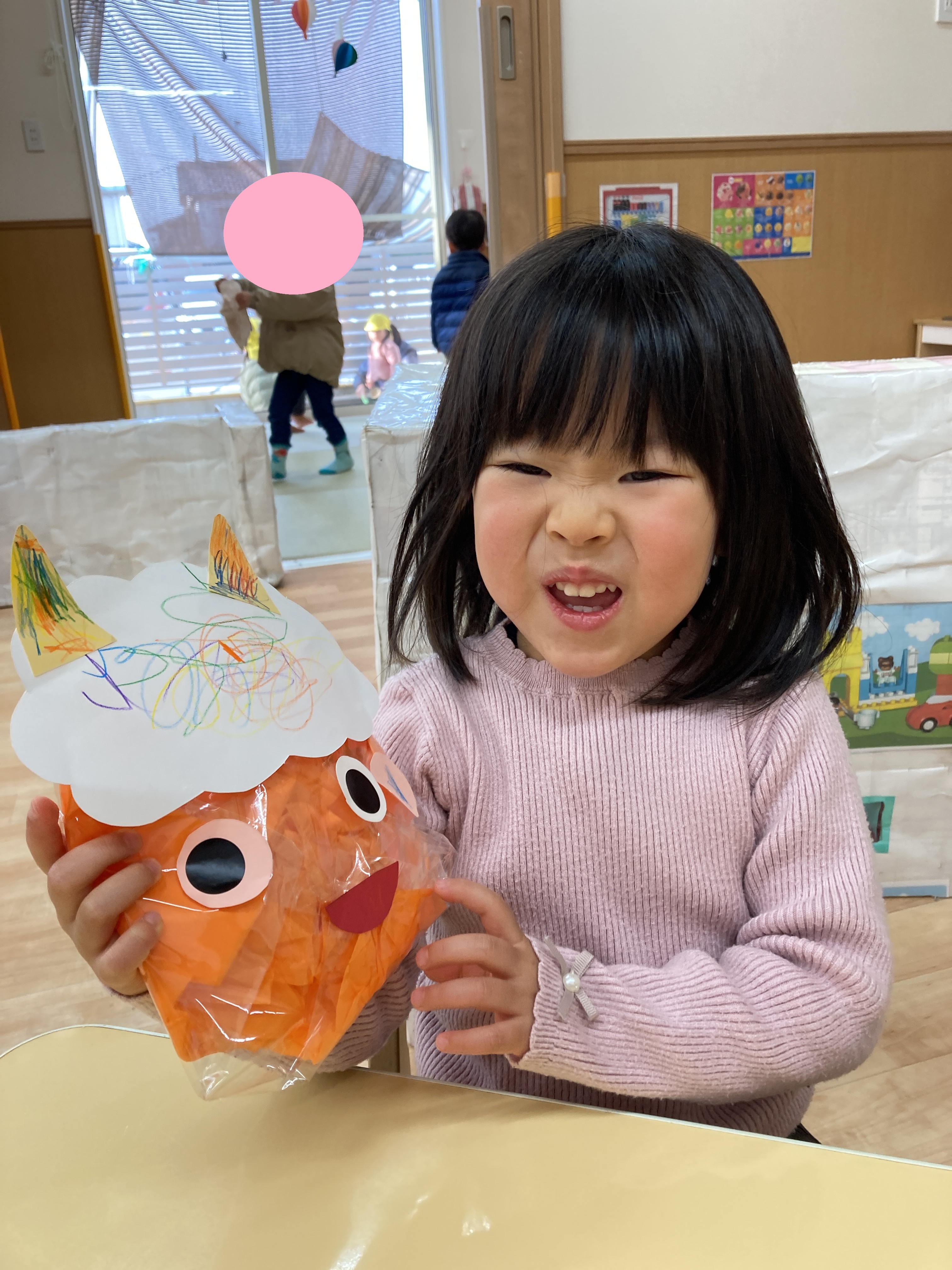 「みてみて!〇〇ちゃんのおにできたよ」と、嬉しそうに話す姿が見られました![]()