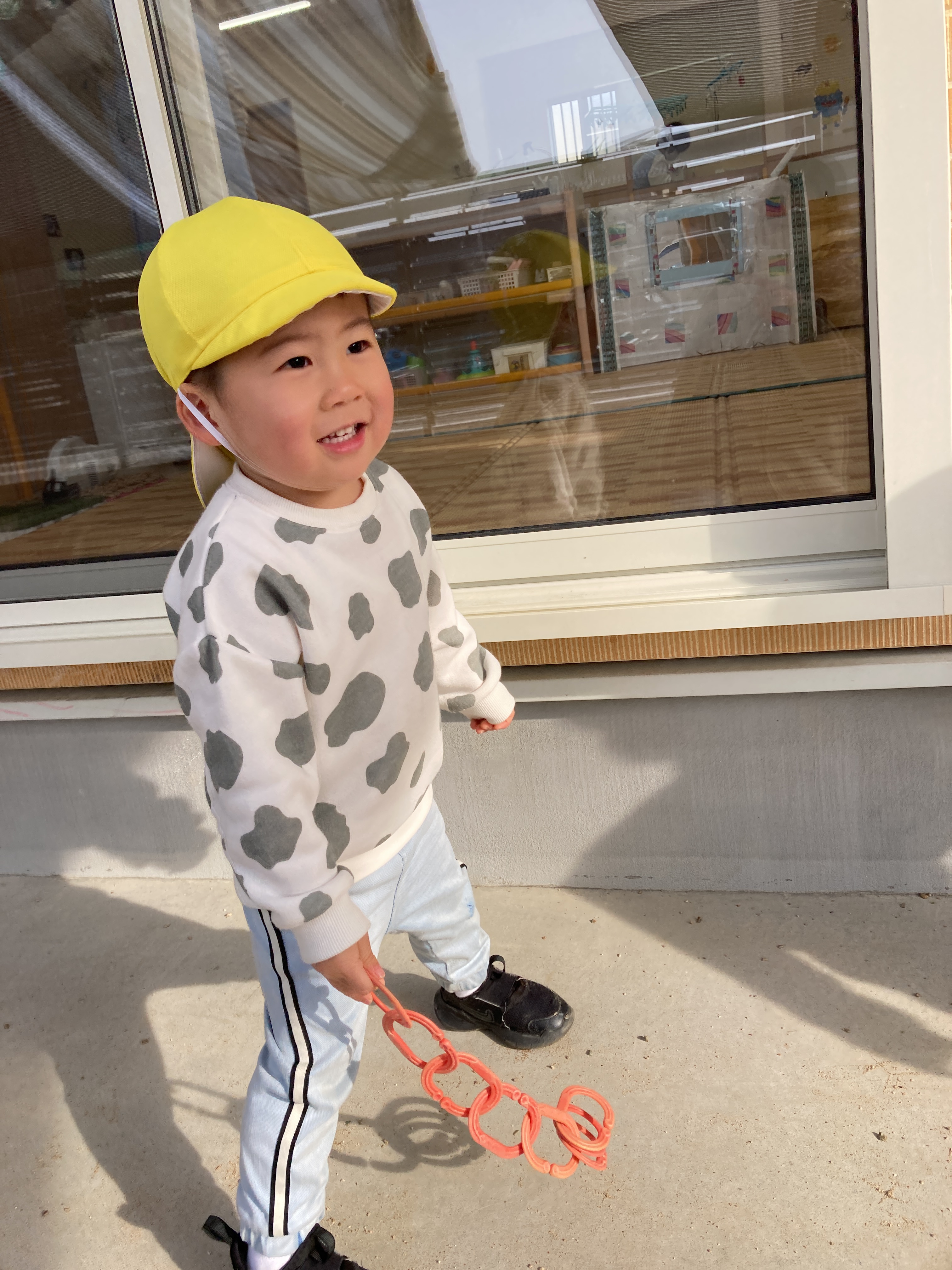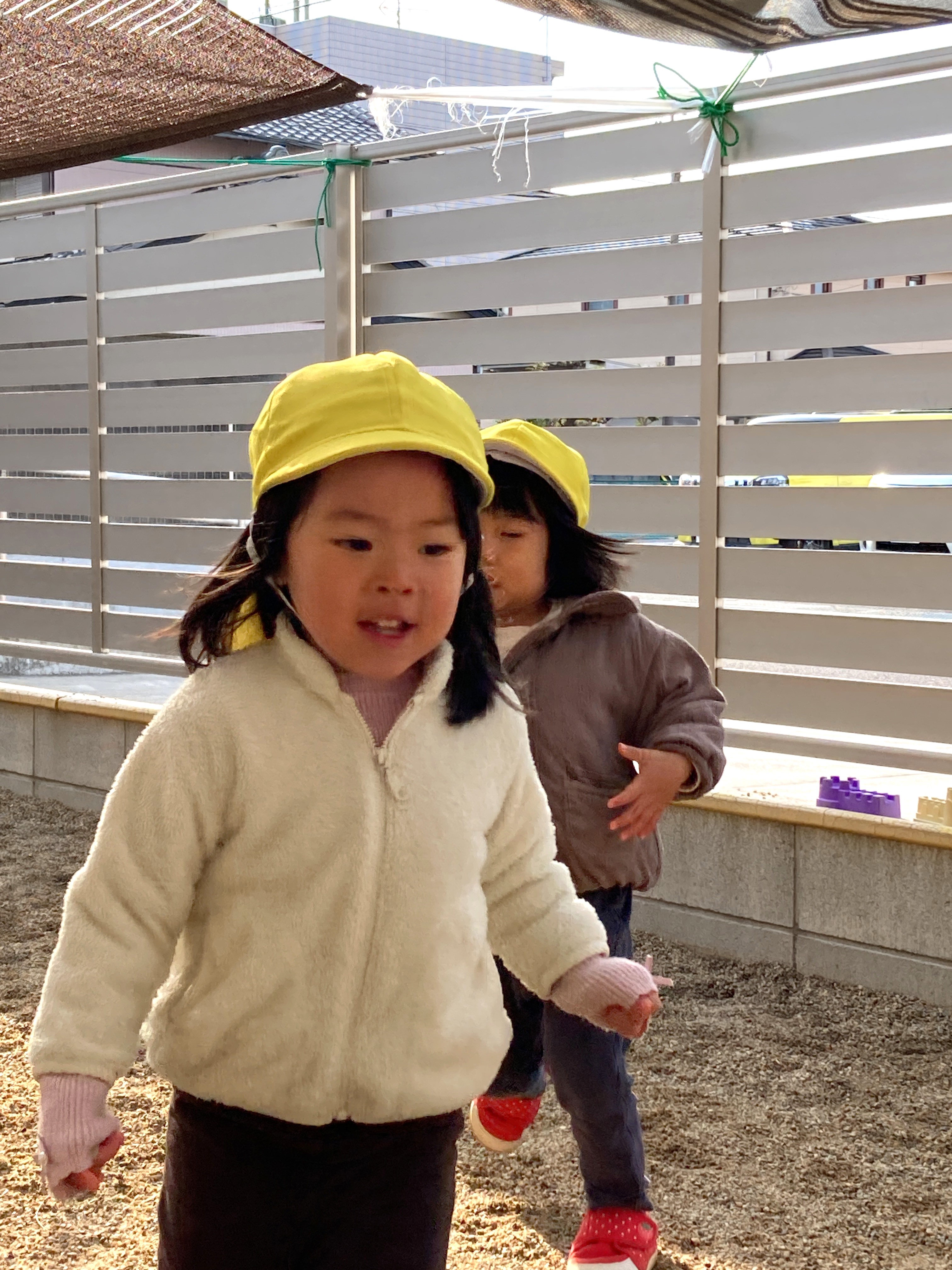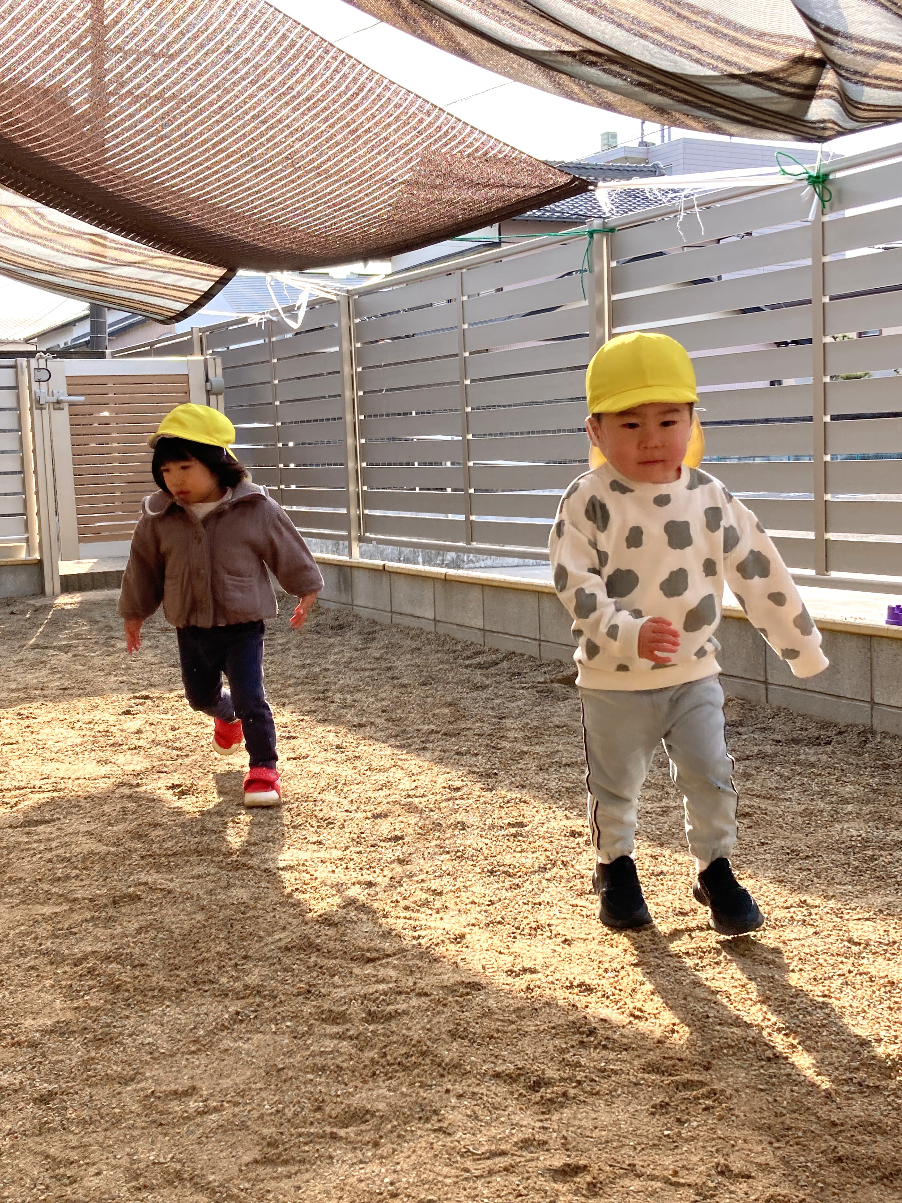 園庭に出ると、「〇〇くんまてまて」と、すぐにおいかけっこが始まります![]()