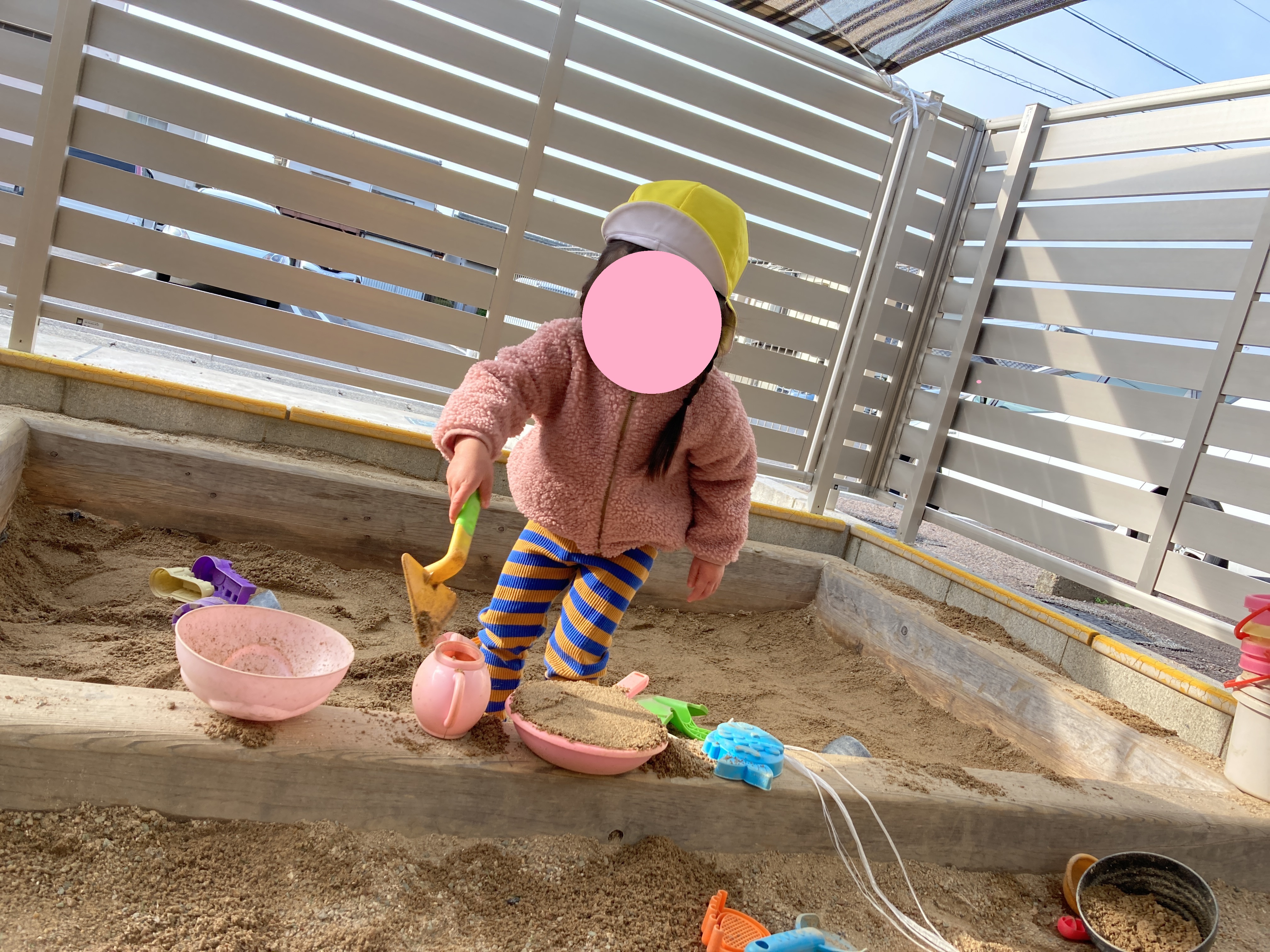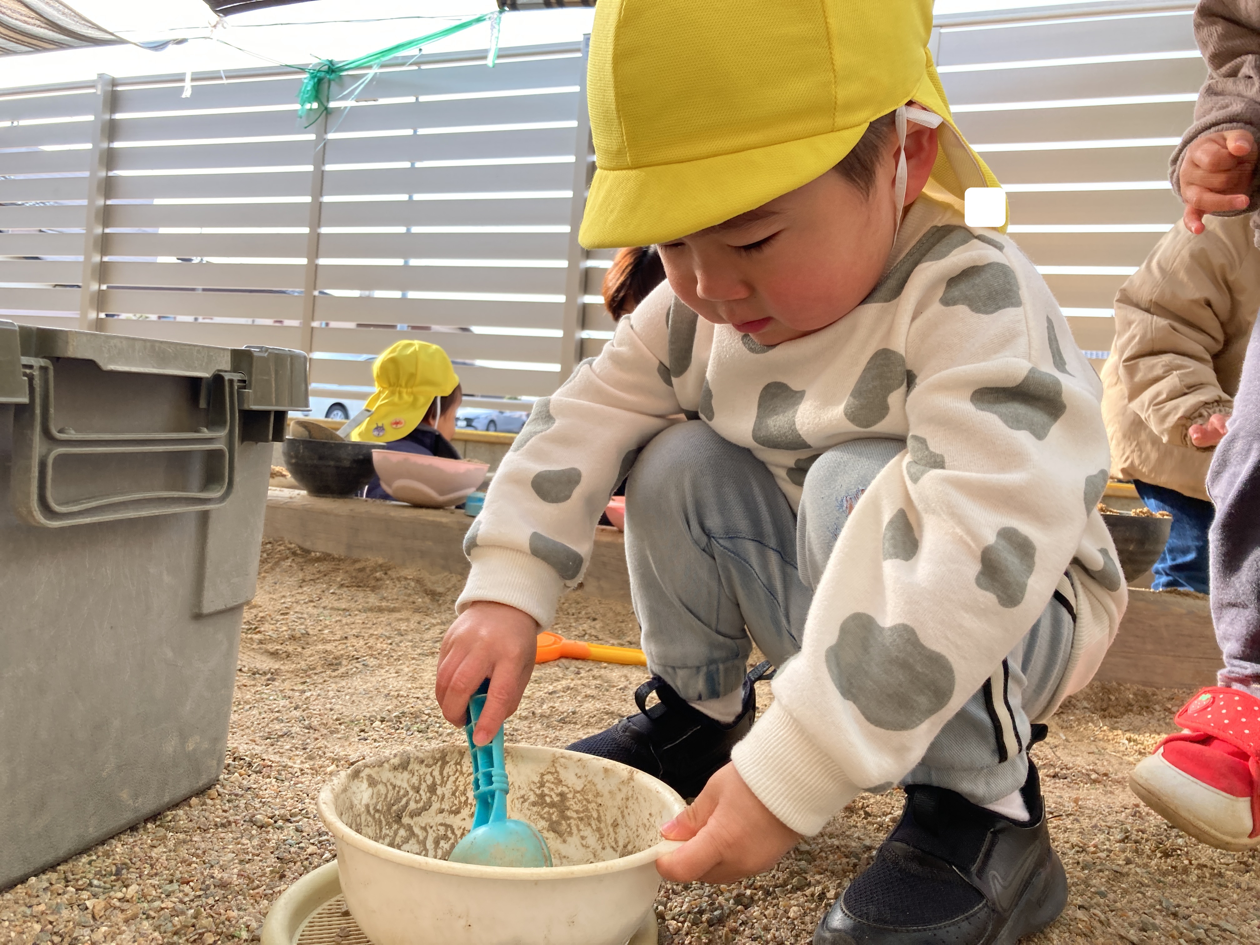 こちらのお友だちは砂場遊びに夢中でしたよ☆