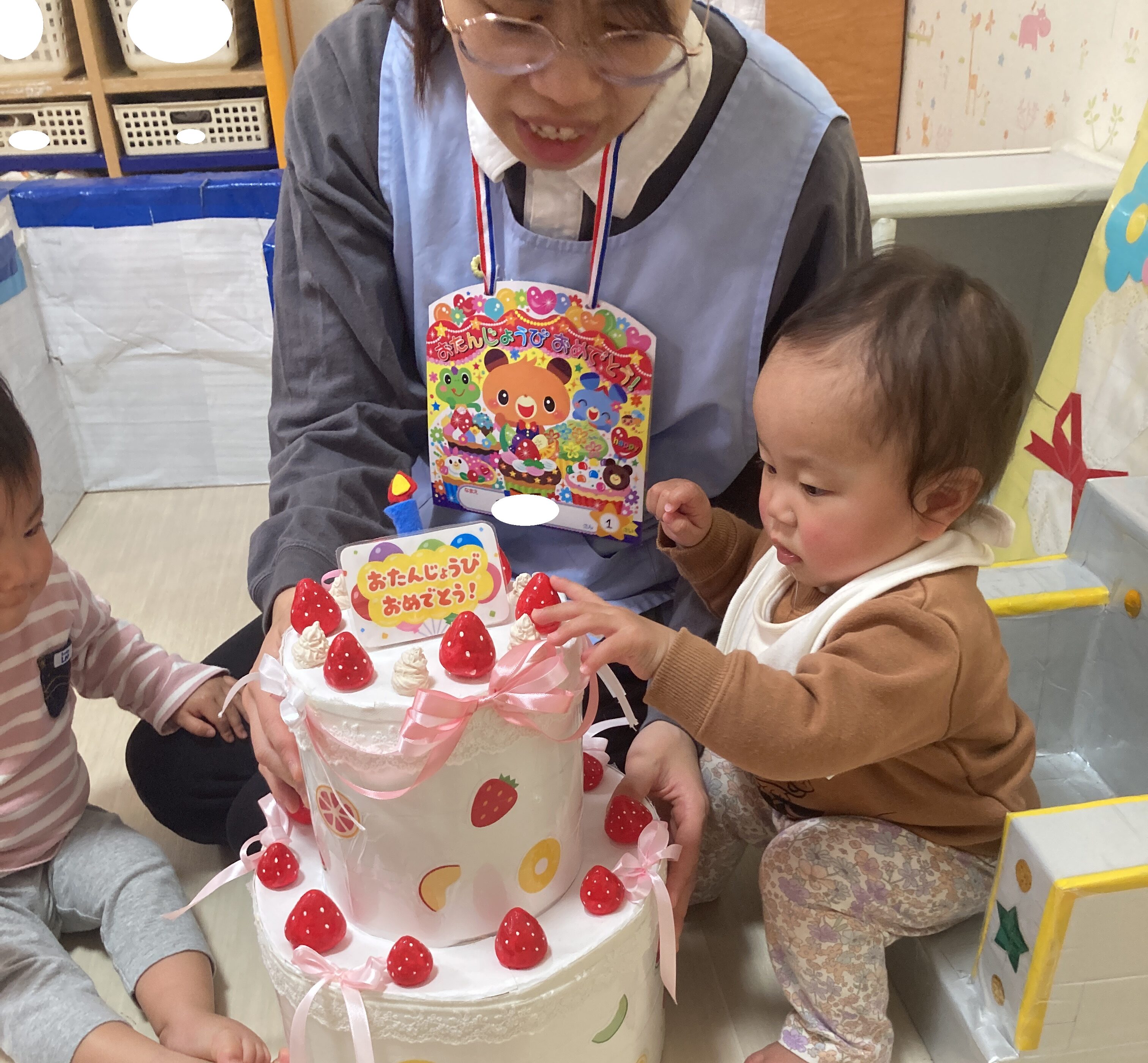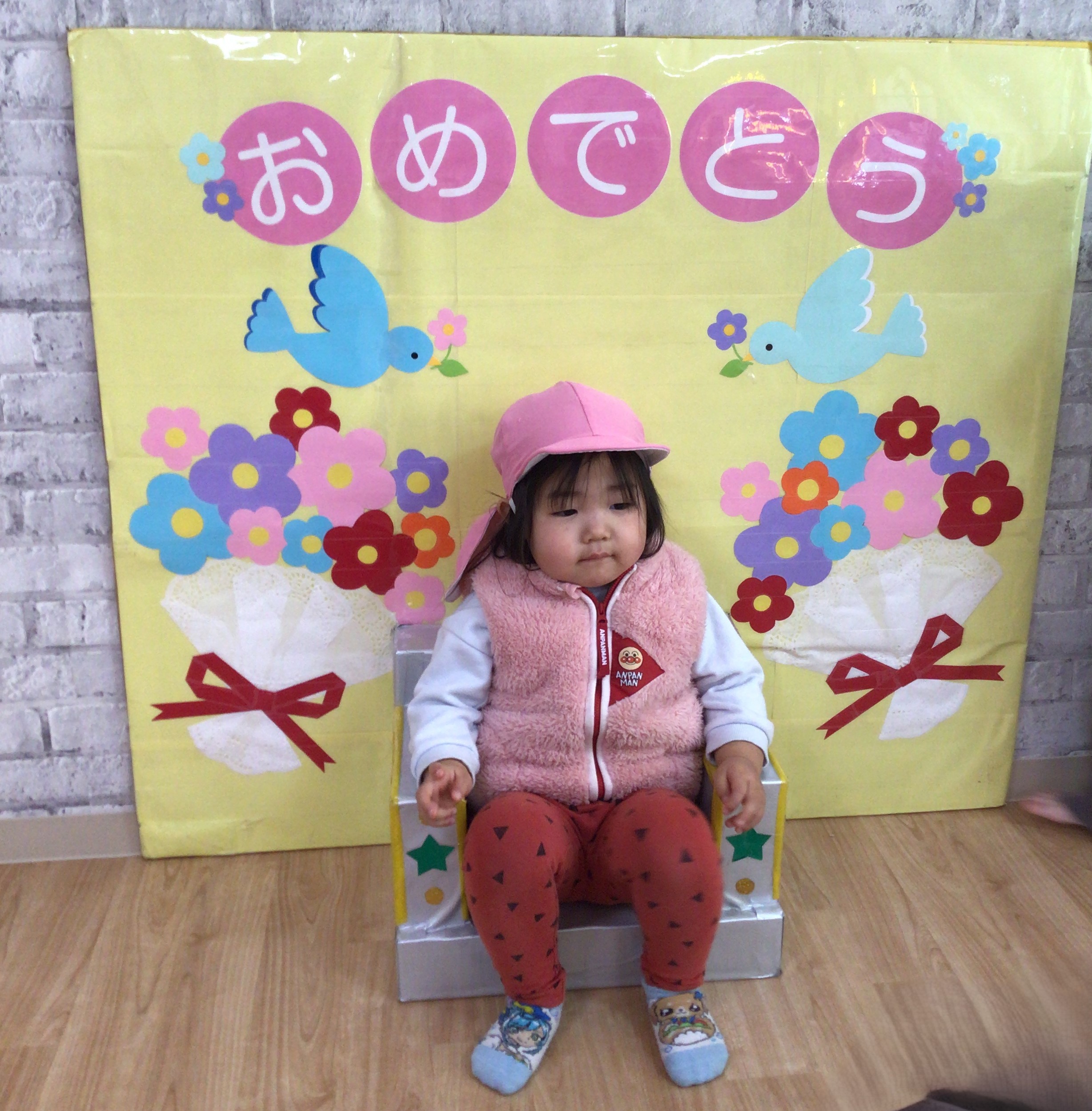 実は本番はドキドキして誕生日用の椅子に座れなかったのですが、会が終わって、お散歩に行く前に誕生日の椅子に座ってくれて