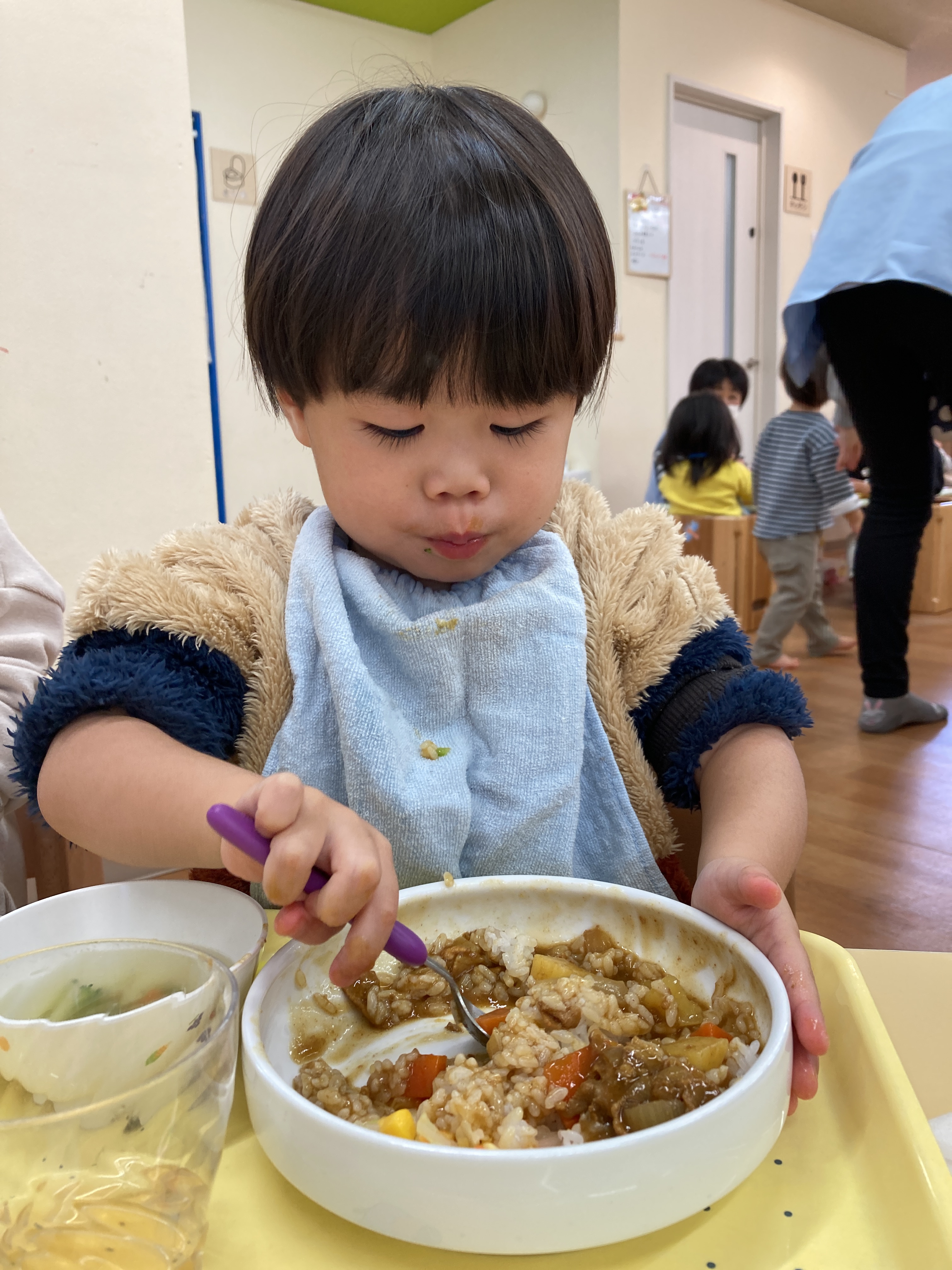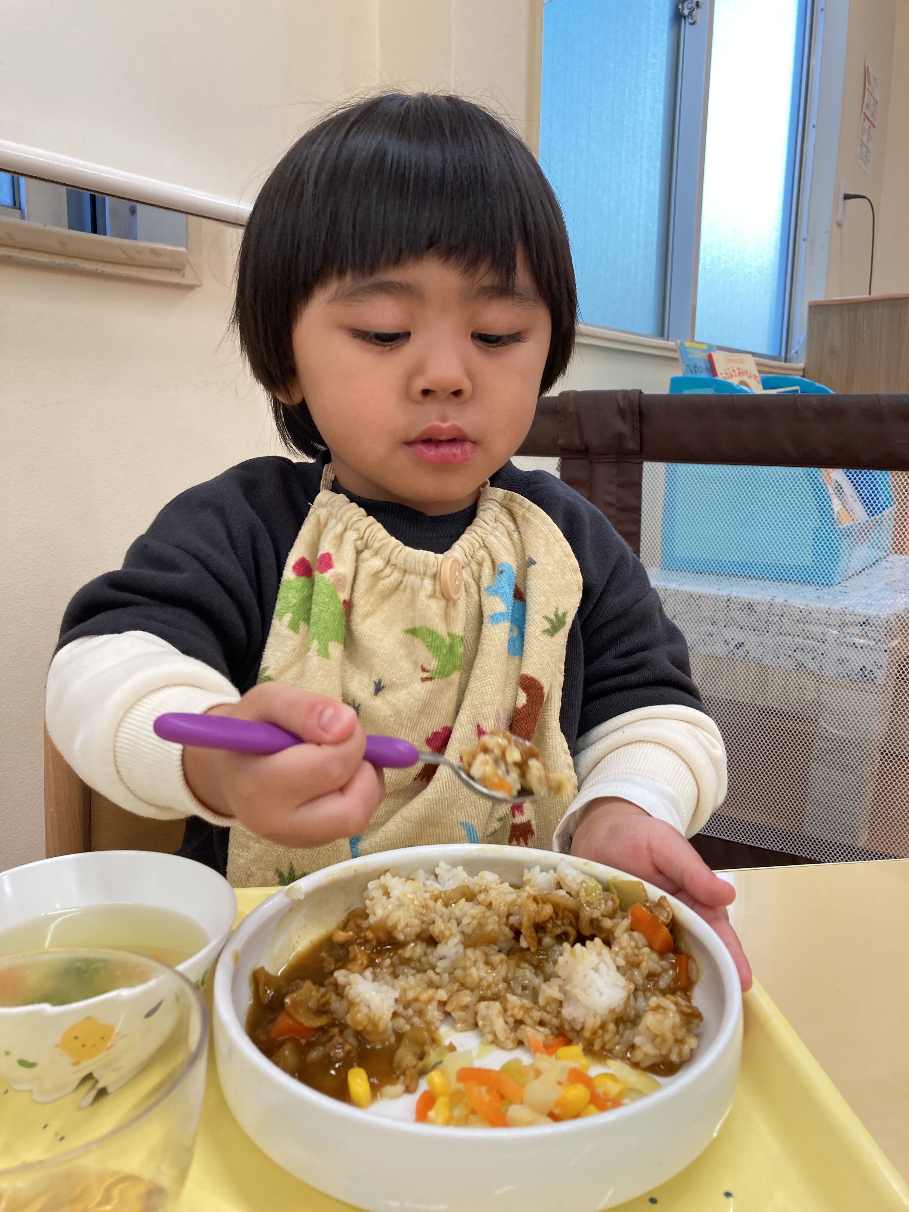スプーン・フォークの使い方がとっても上手になってきましたよ![]()