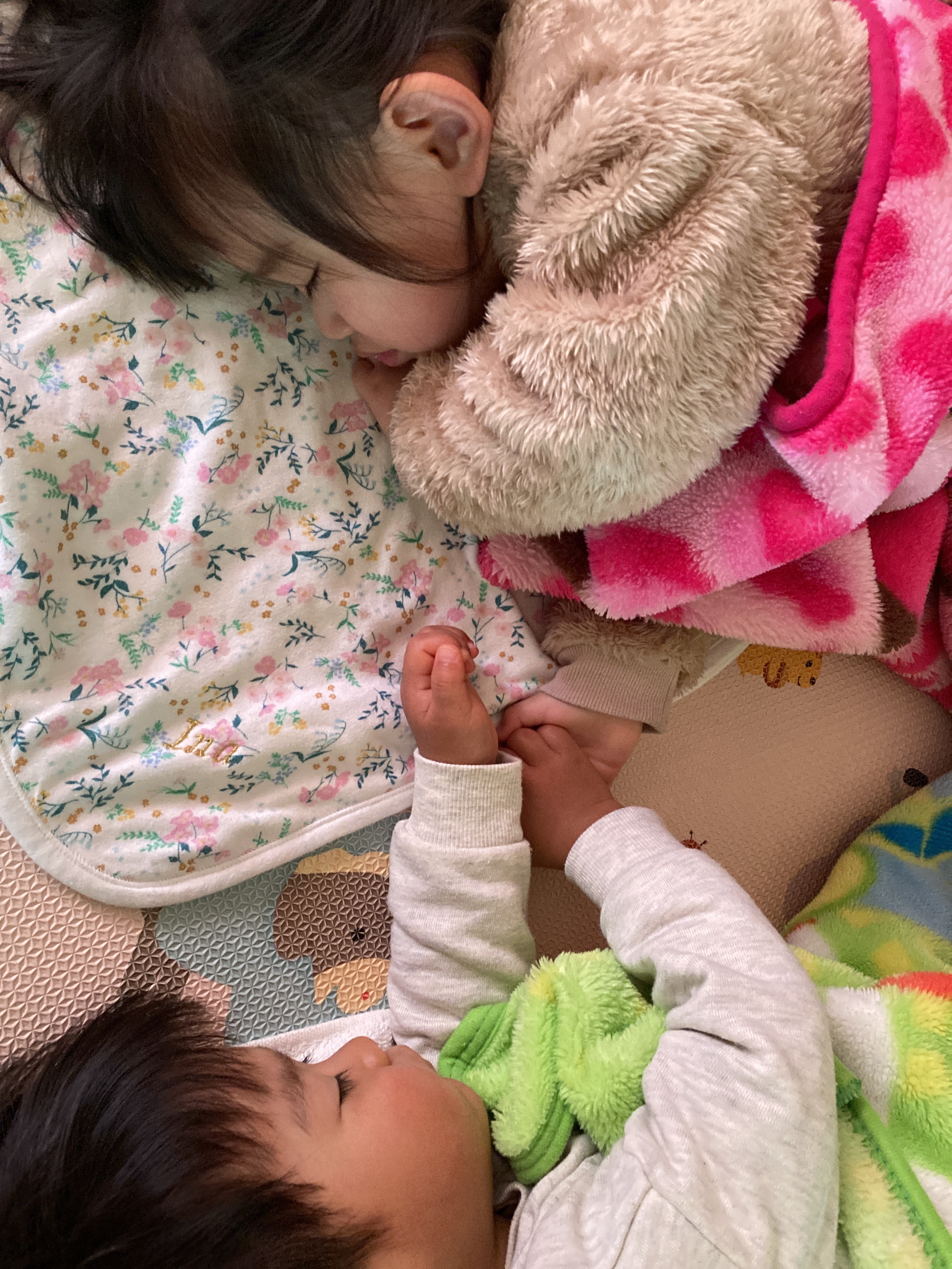お友だちと仲良く手をつないで寝ている可愛い姿が![]()