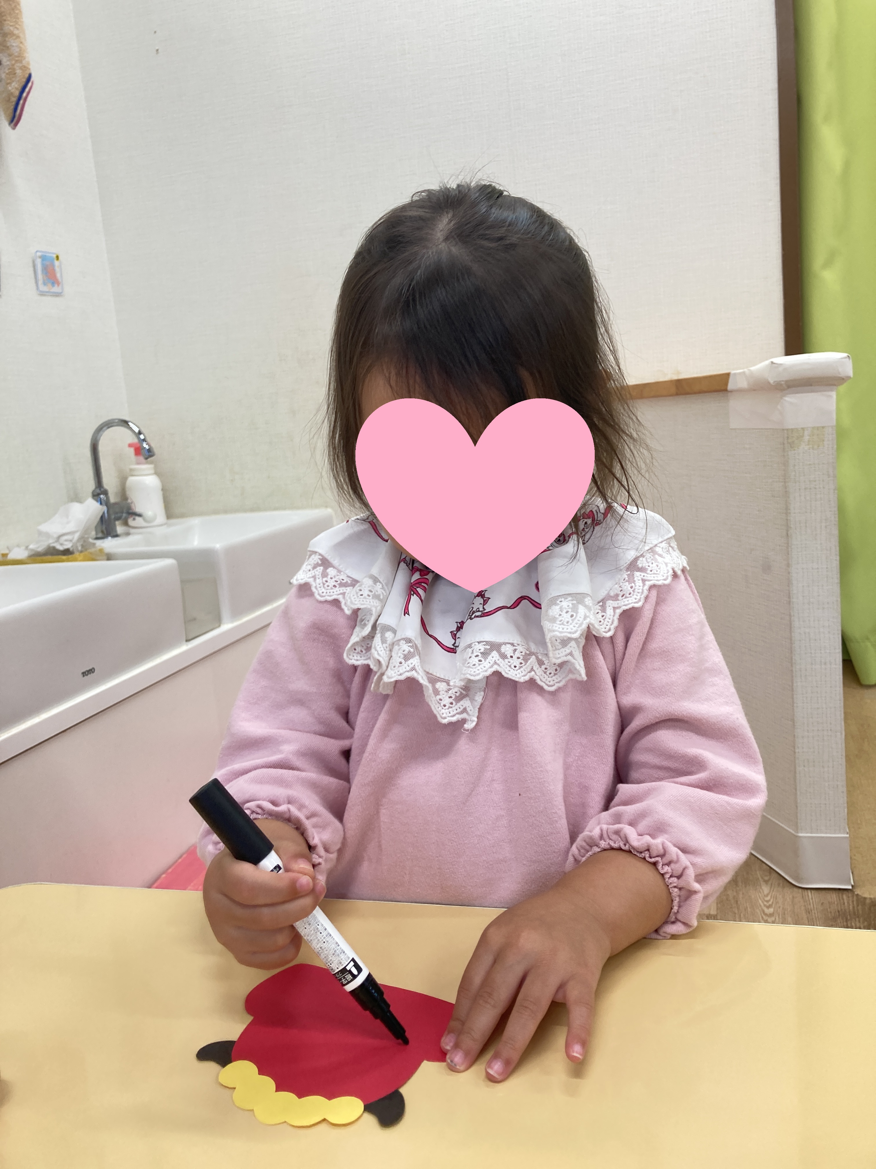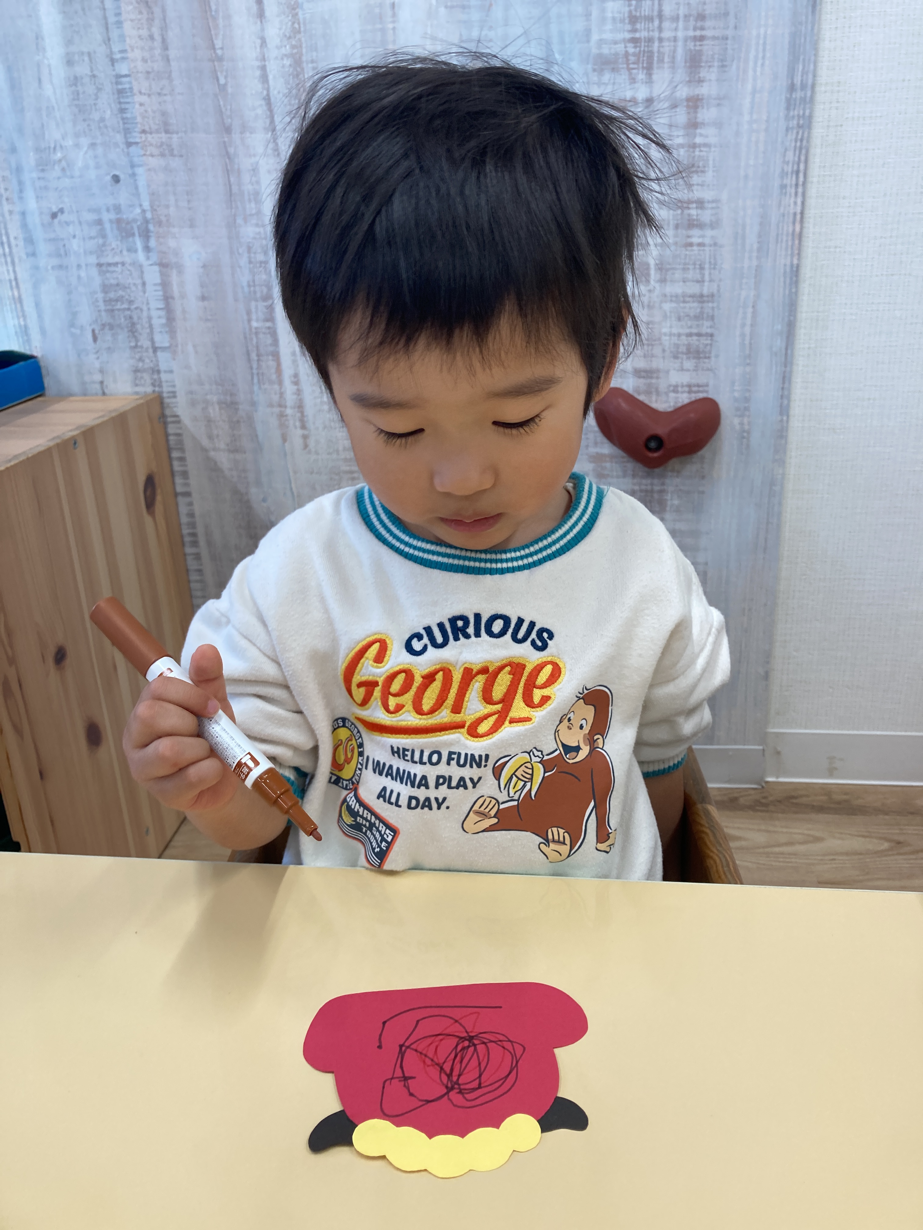 2歳児さんは獅子舞の顔も自分で描きました![]()