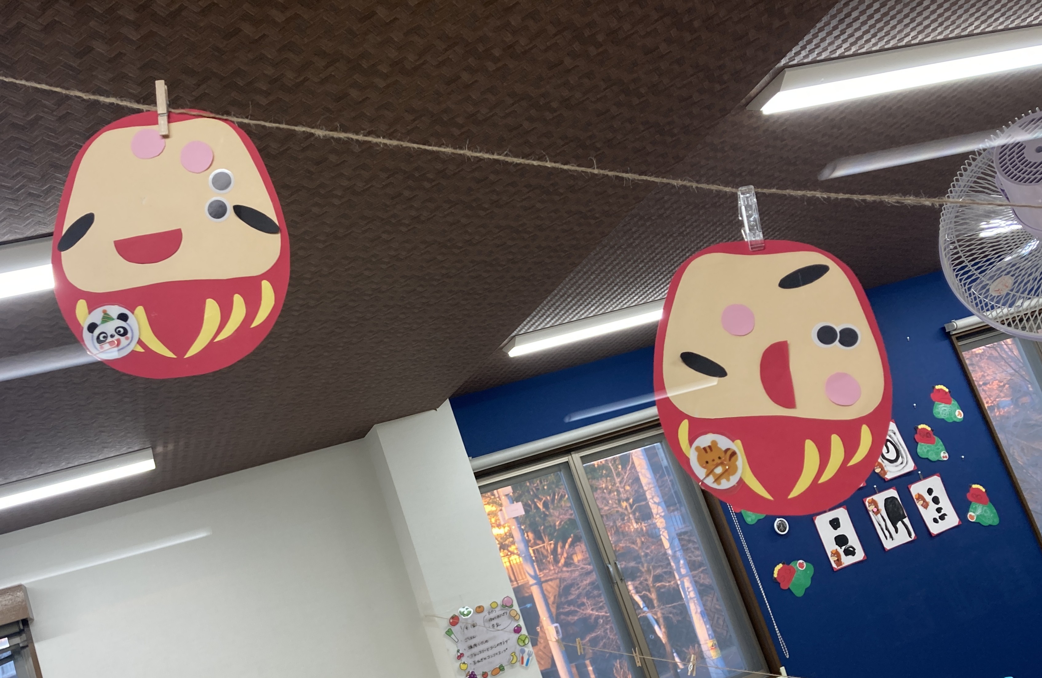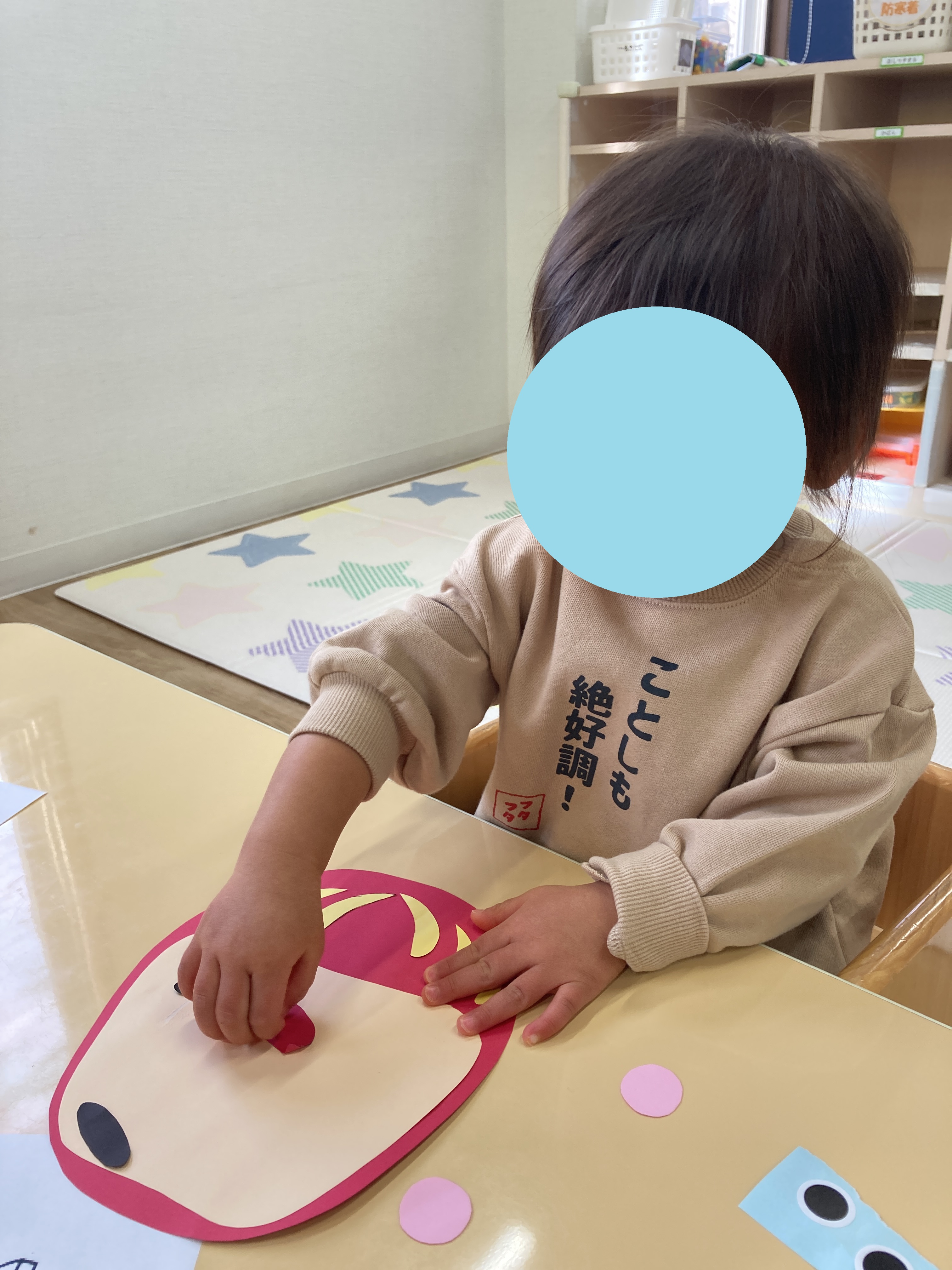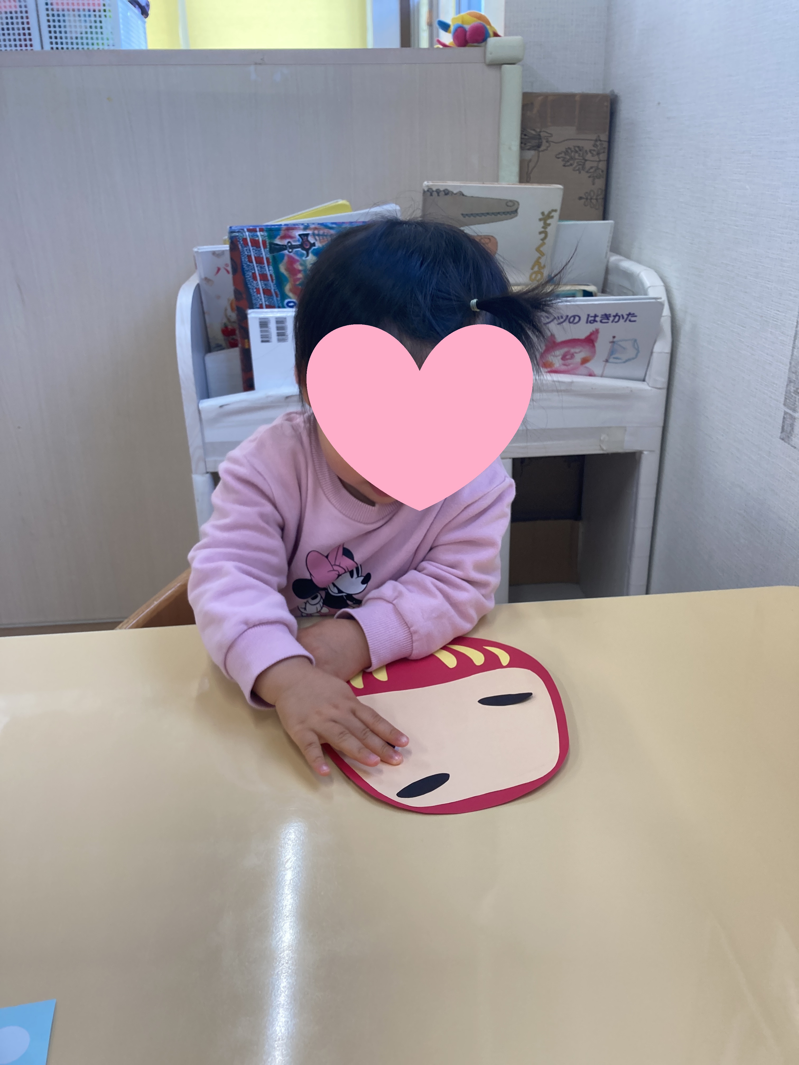 まだ目を隠して福笑いをするのは難しいので”目はどの位置にあるのかな口はどのあたりにあるのかな”とじっくり考えながら正月遊びの雰囲気を楽しんでいましたよ![]()