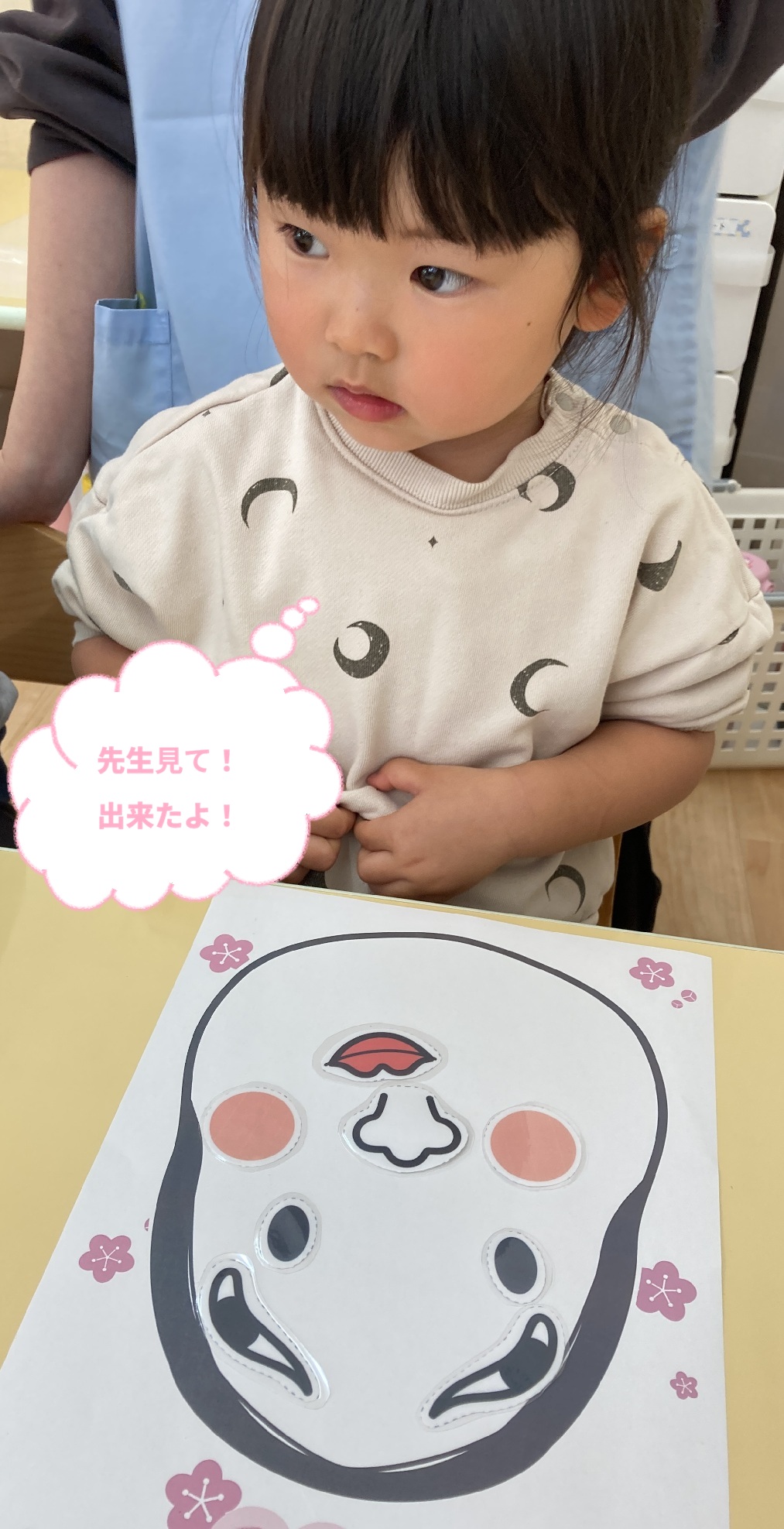 目隠しが怖くて無しでやってみると子ども達の発想は、面白くてこんなおかめさんも出来ました!![]()