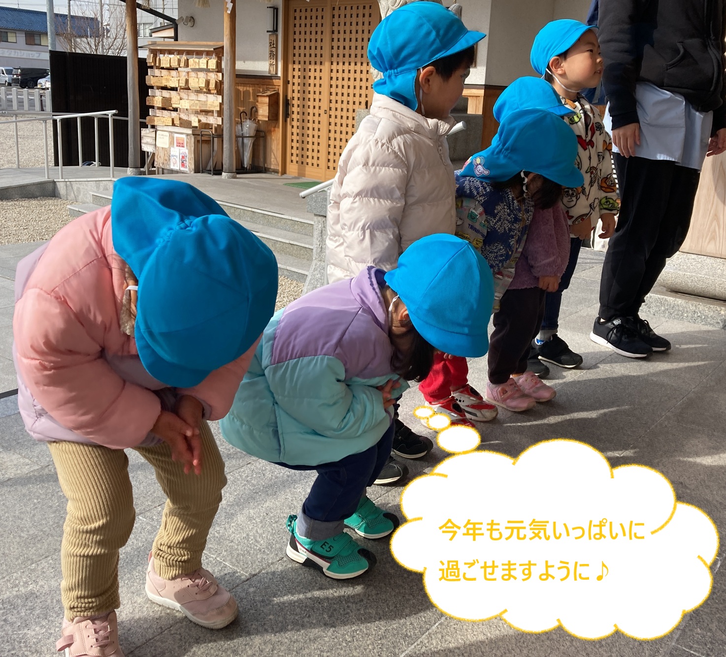 みんなで、「今年も元気いっぱいに過ごせますように!」としっかり手を合わせてお辞儀をしました![]()