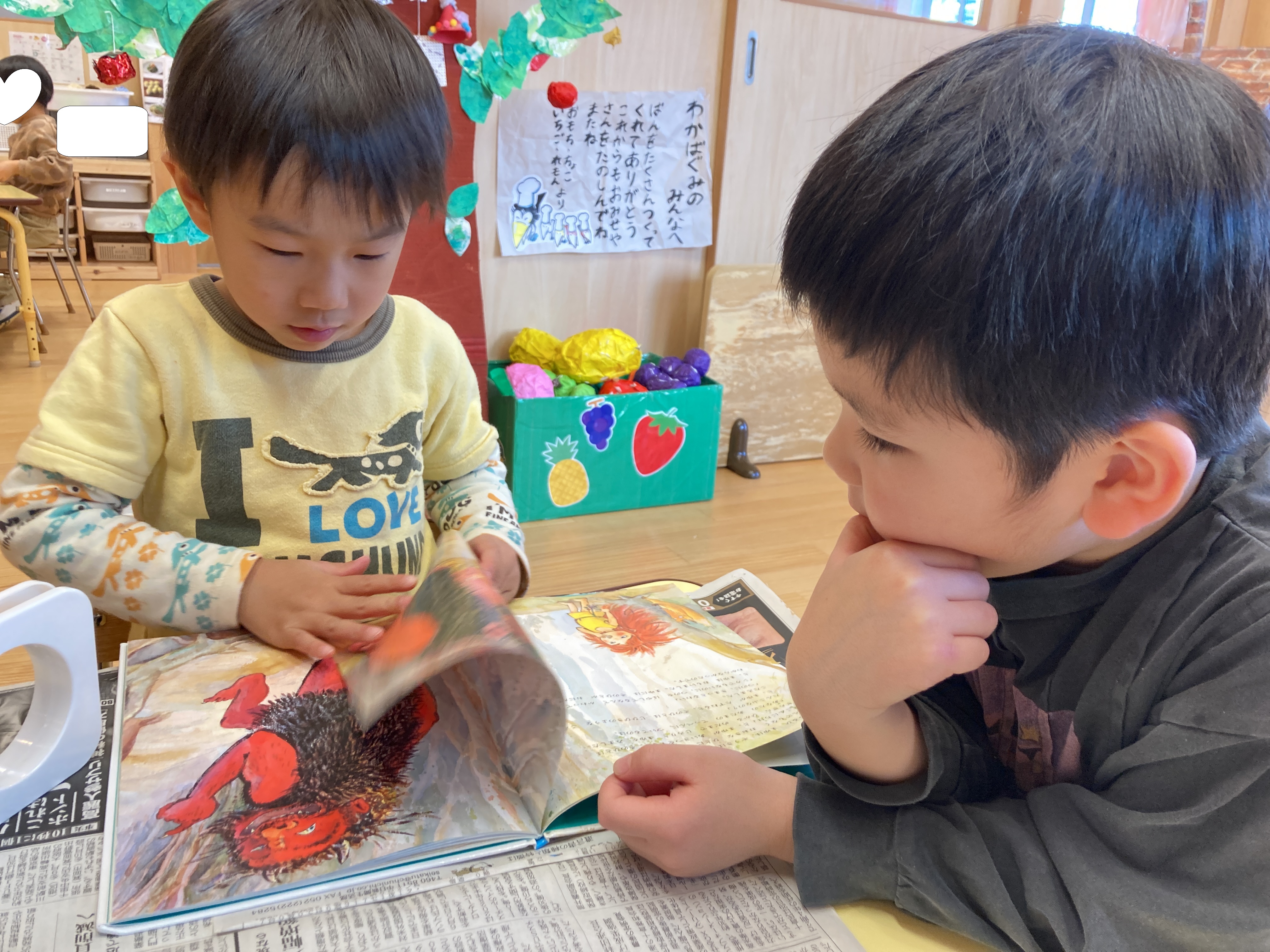 絵本タイムの後にみんなで見てみると・・・・