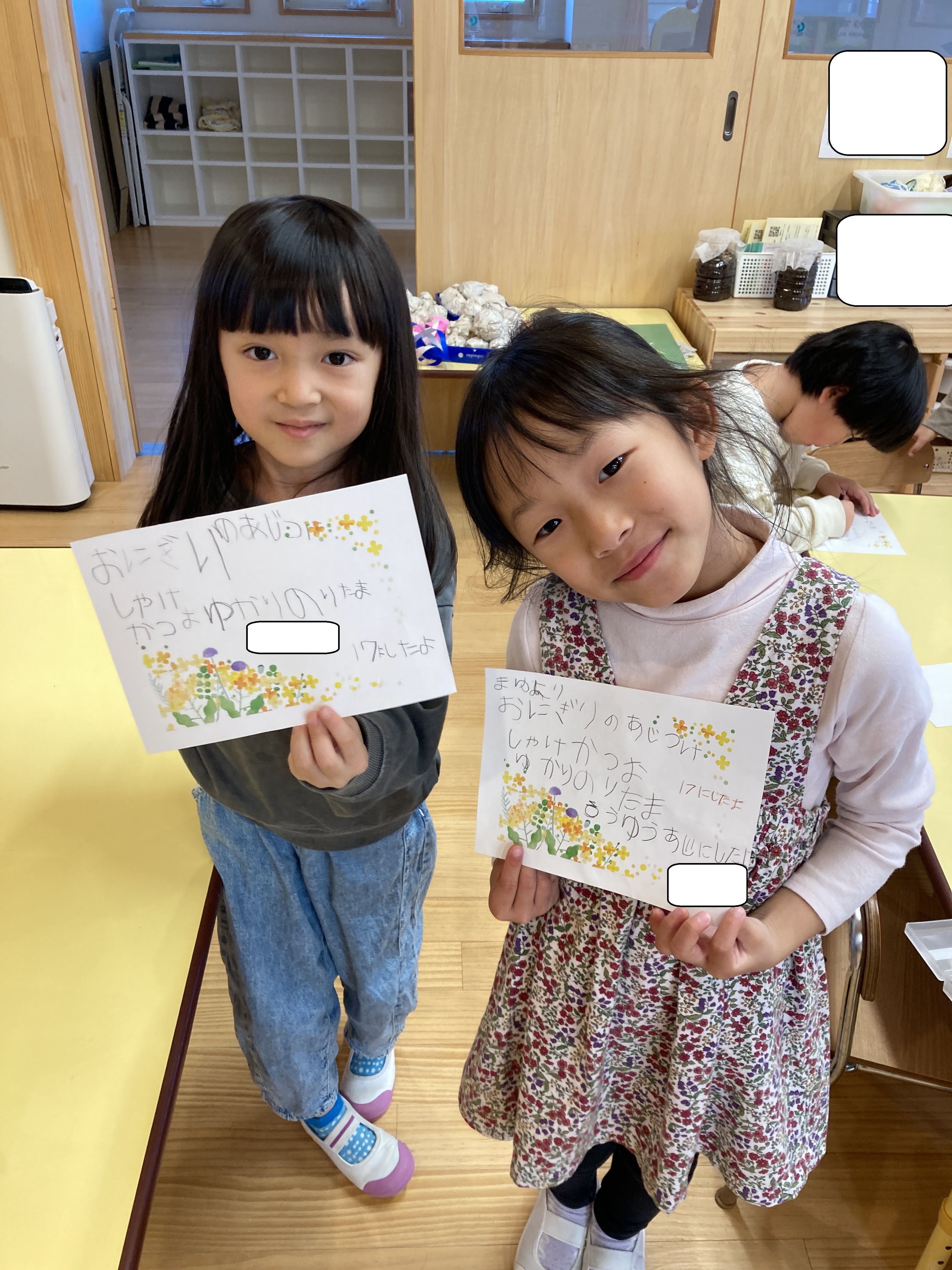 読んでみると「おにぎりをつくるひと、おにぎりのあじつけをきめないとだね!きまったらおしえてね!」と書いてありました!