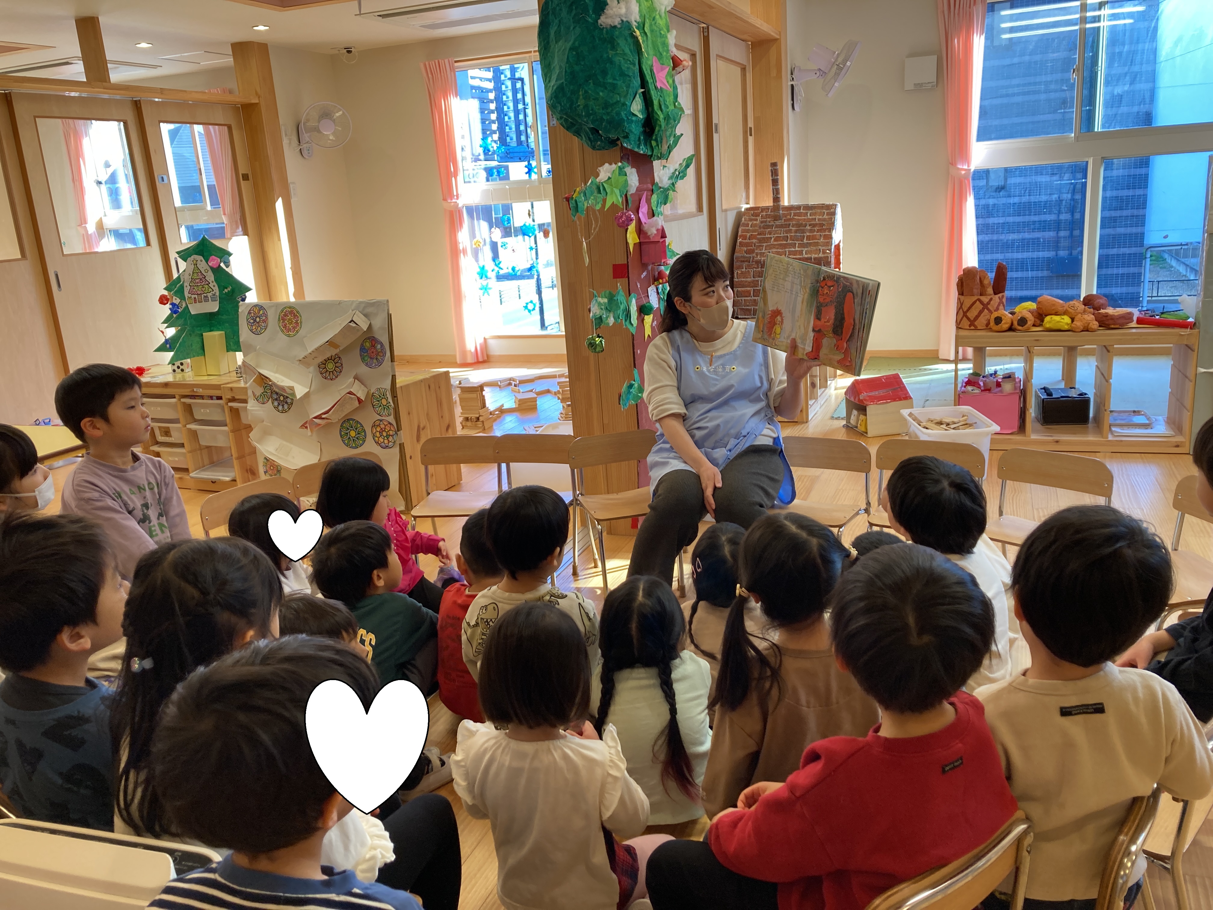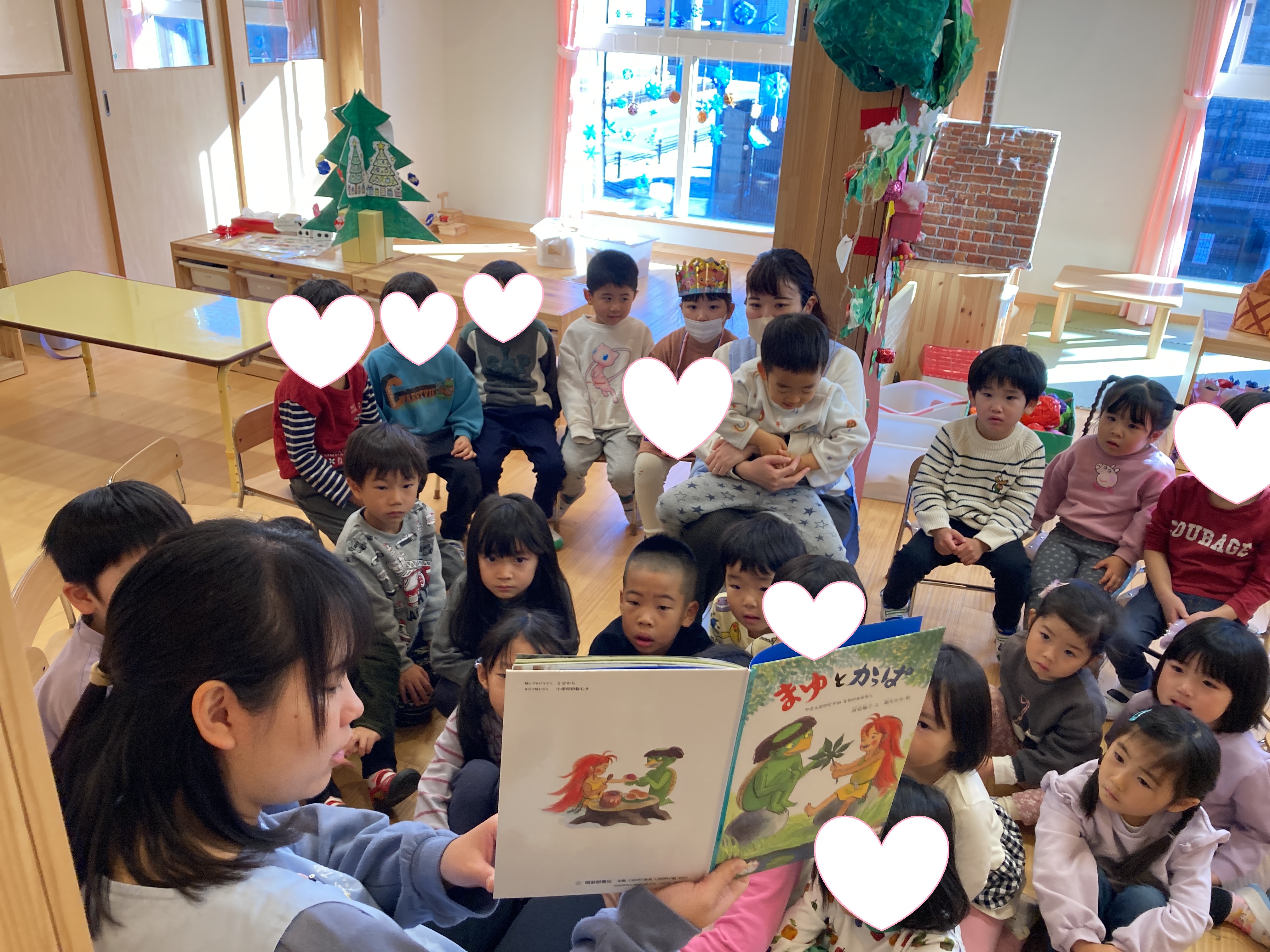 12月からわかば組、つぼみ組、みのり組では「まゆとおに」の絵本に夢中になっています♪![]()