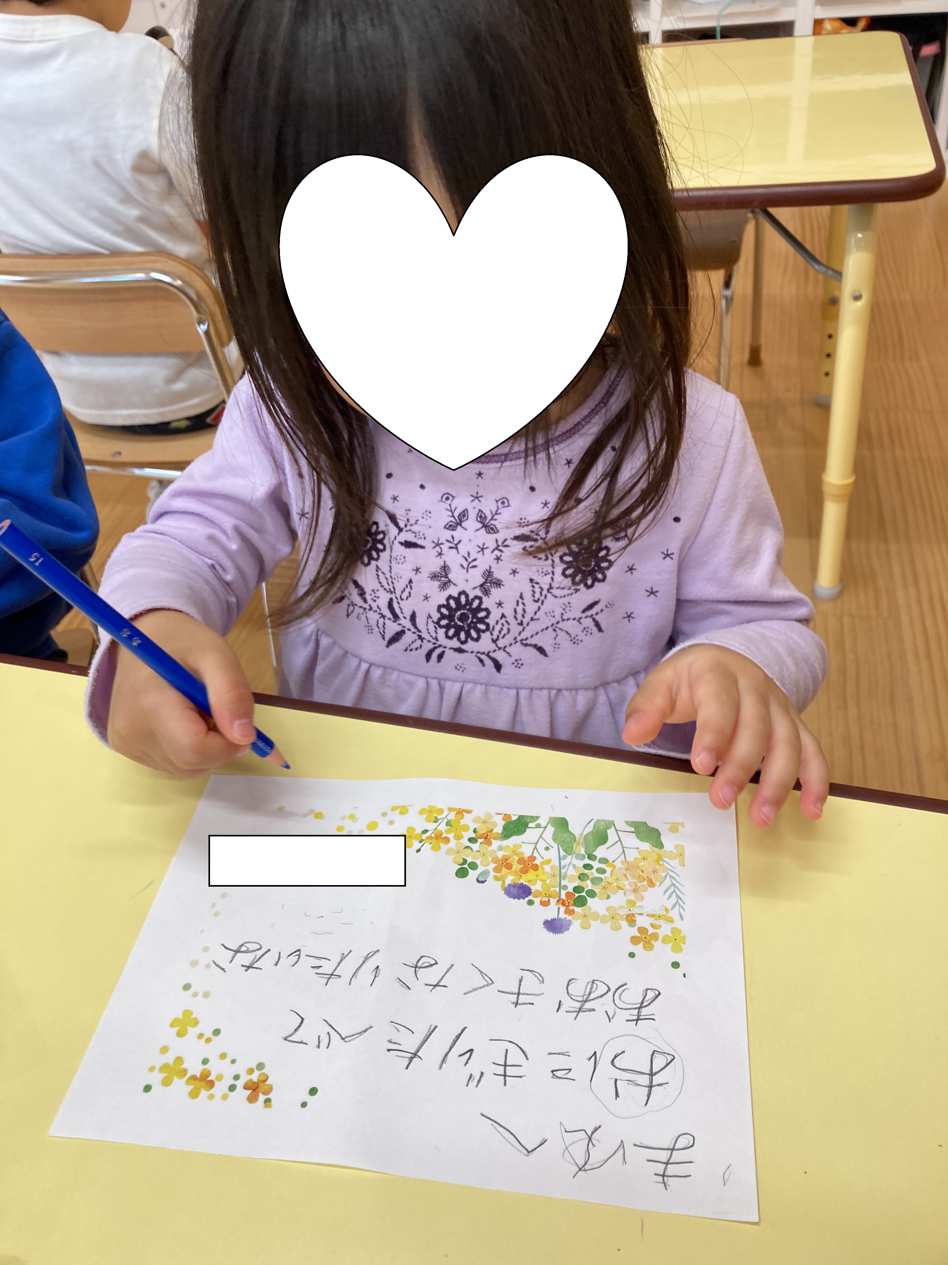 つぼみ組・みのり組さんは自分たちで文字を書くことができるので、伝えたいことを考えながら手紙を書いています!