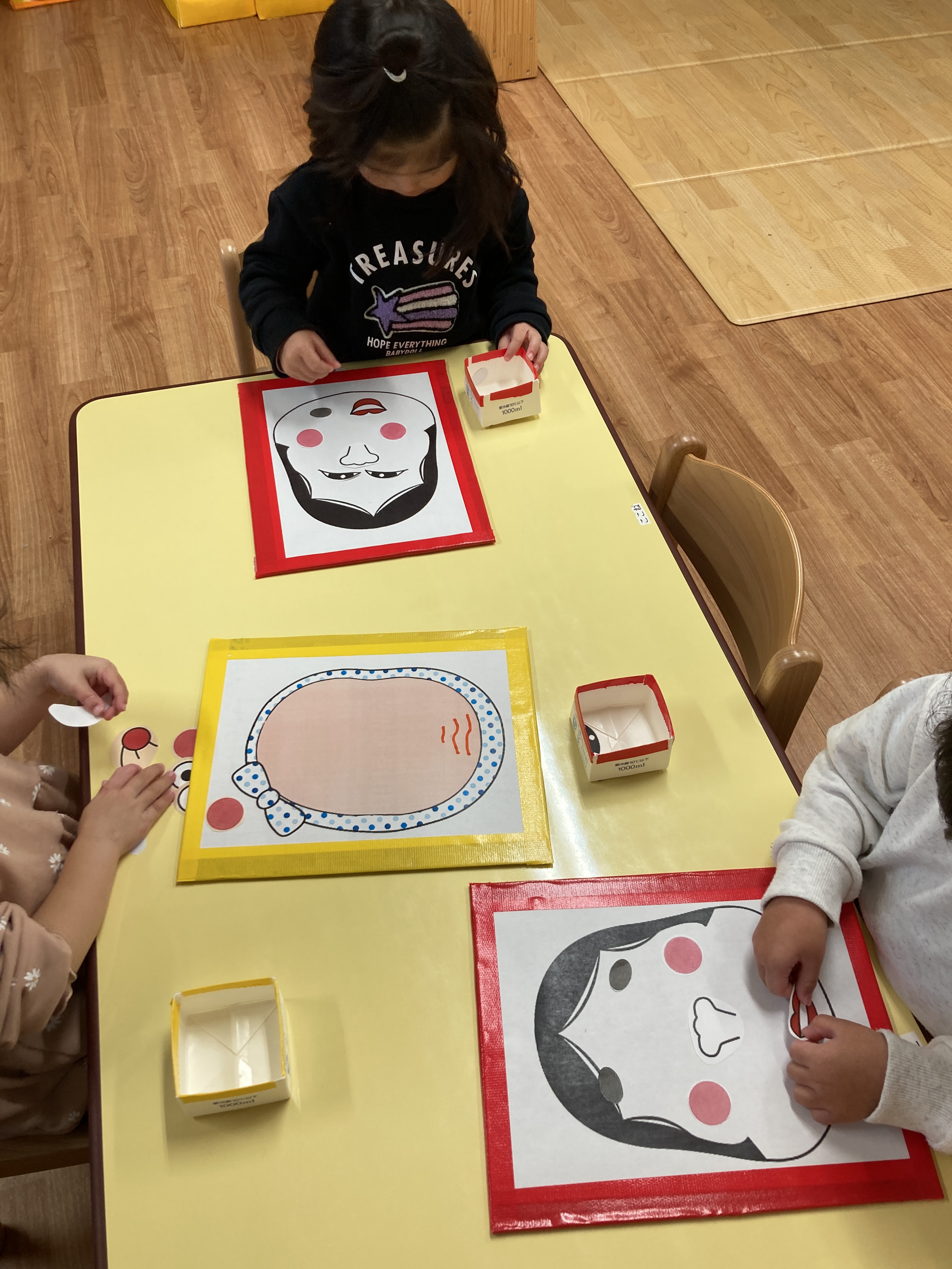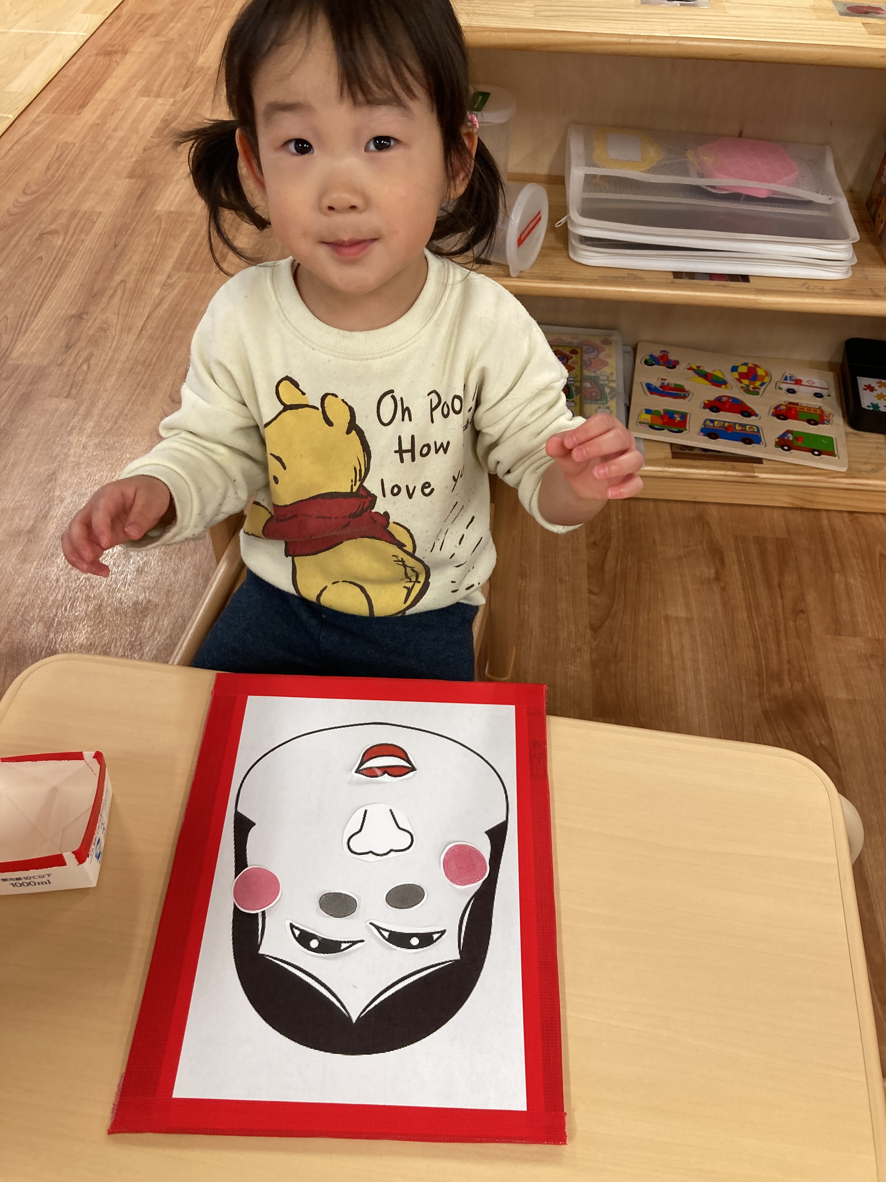 「こうかな」「ここだよね」と考えながらお顔に乗せていく子どもたち😊