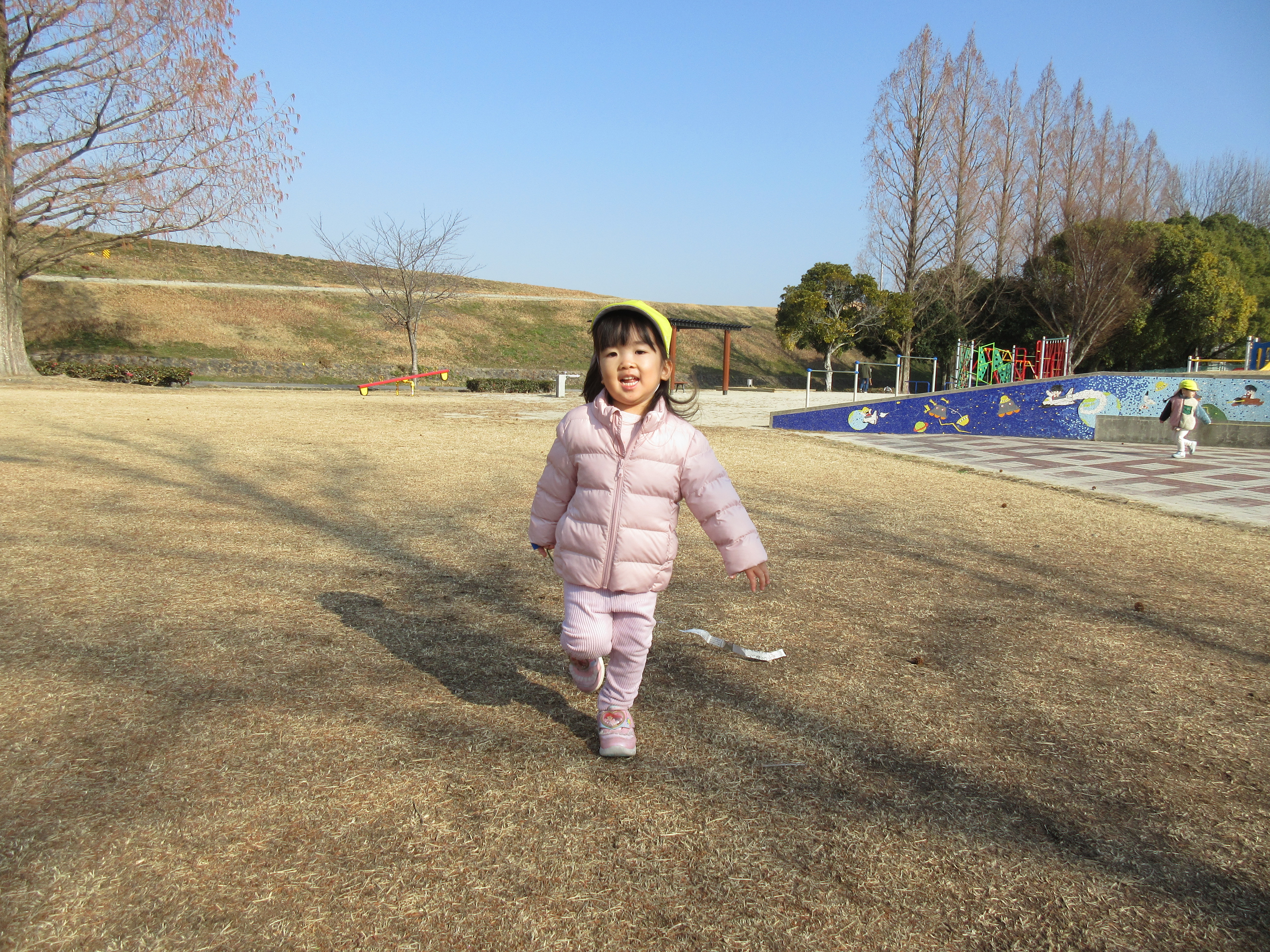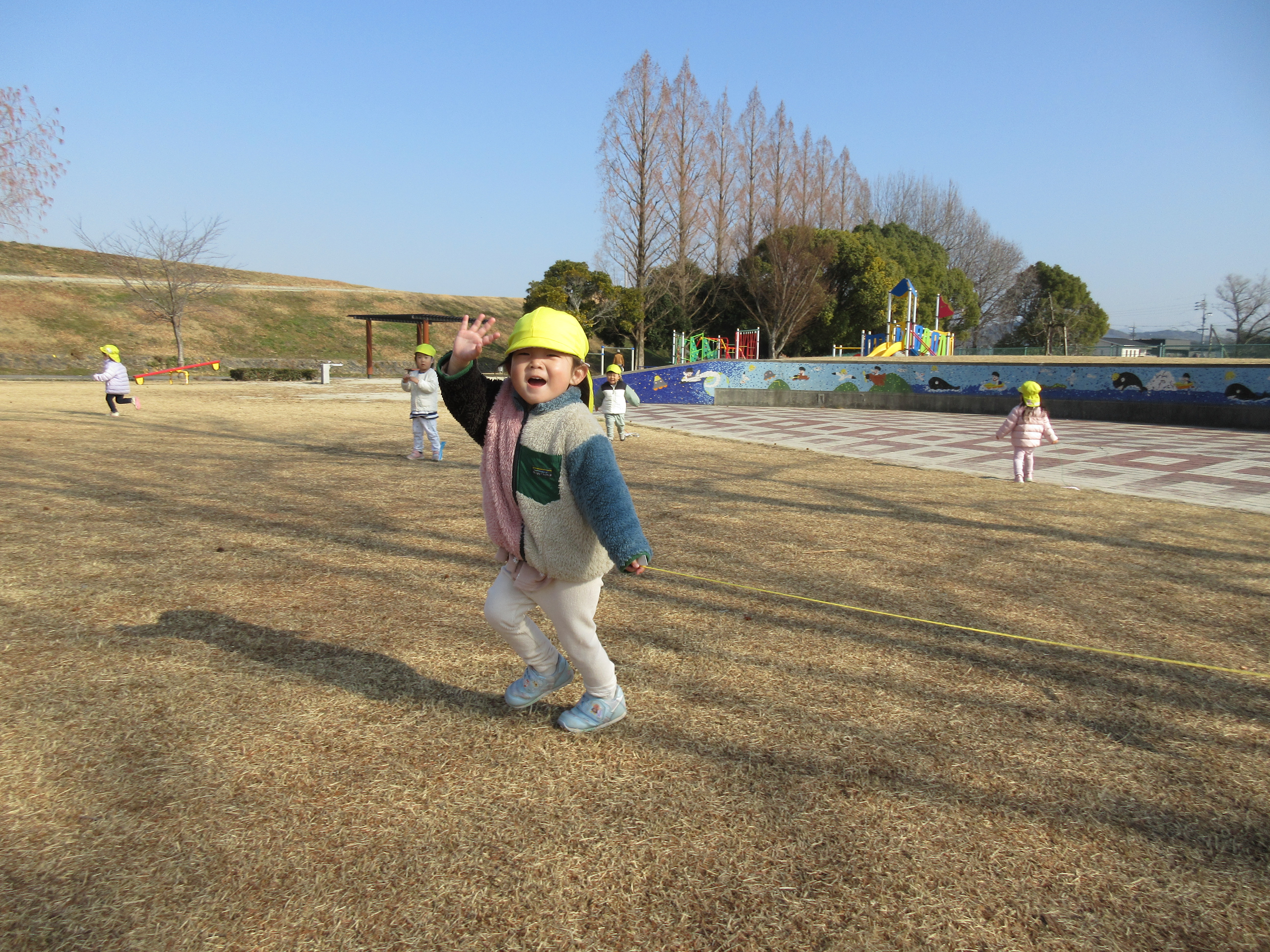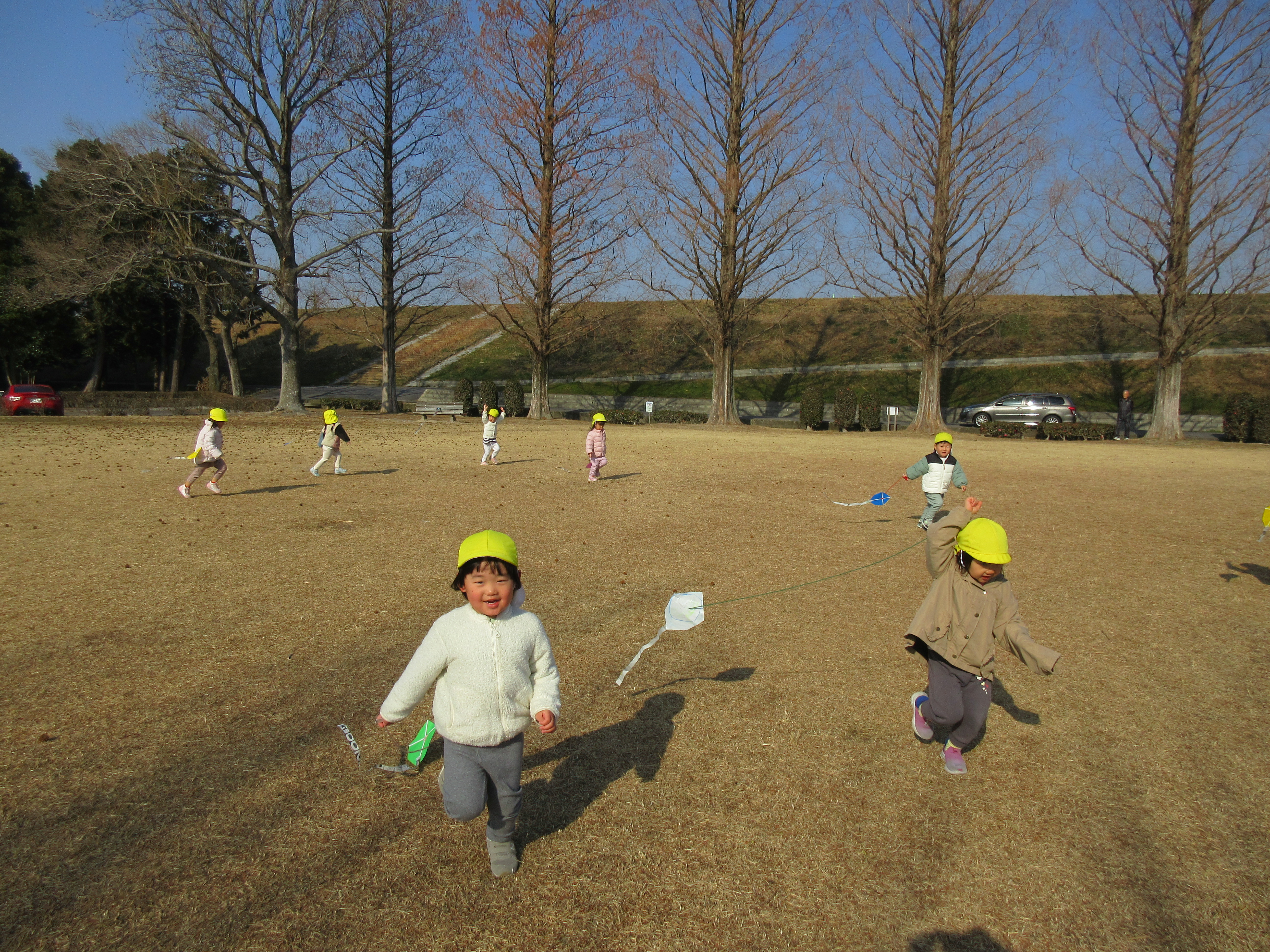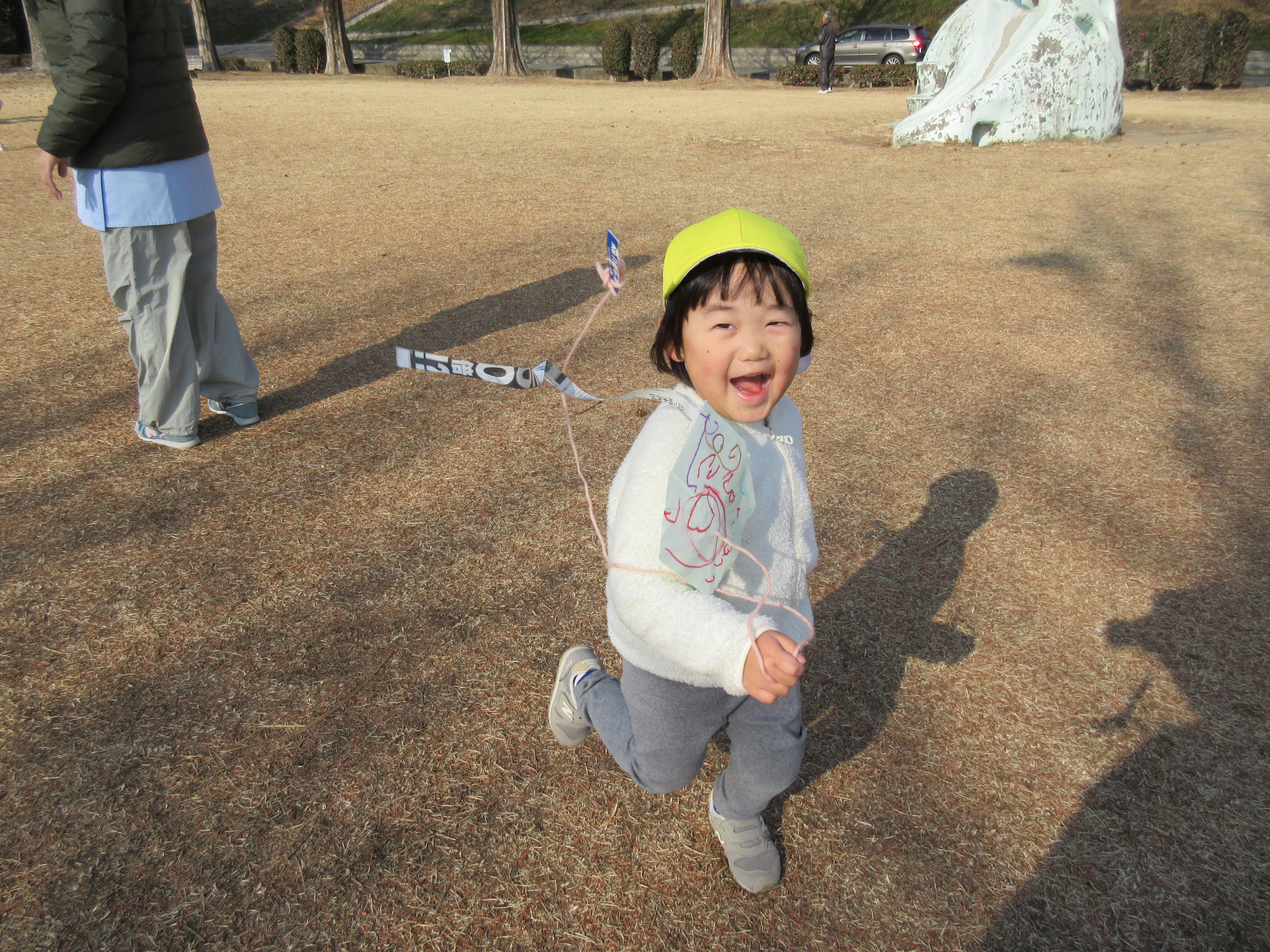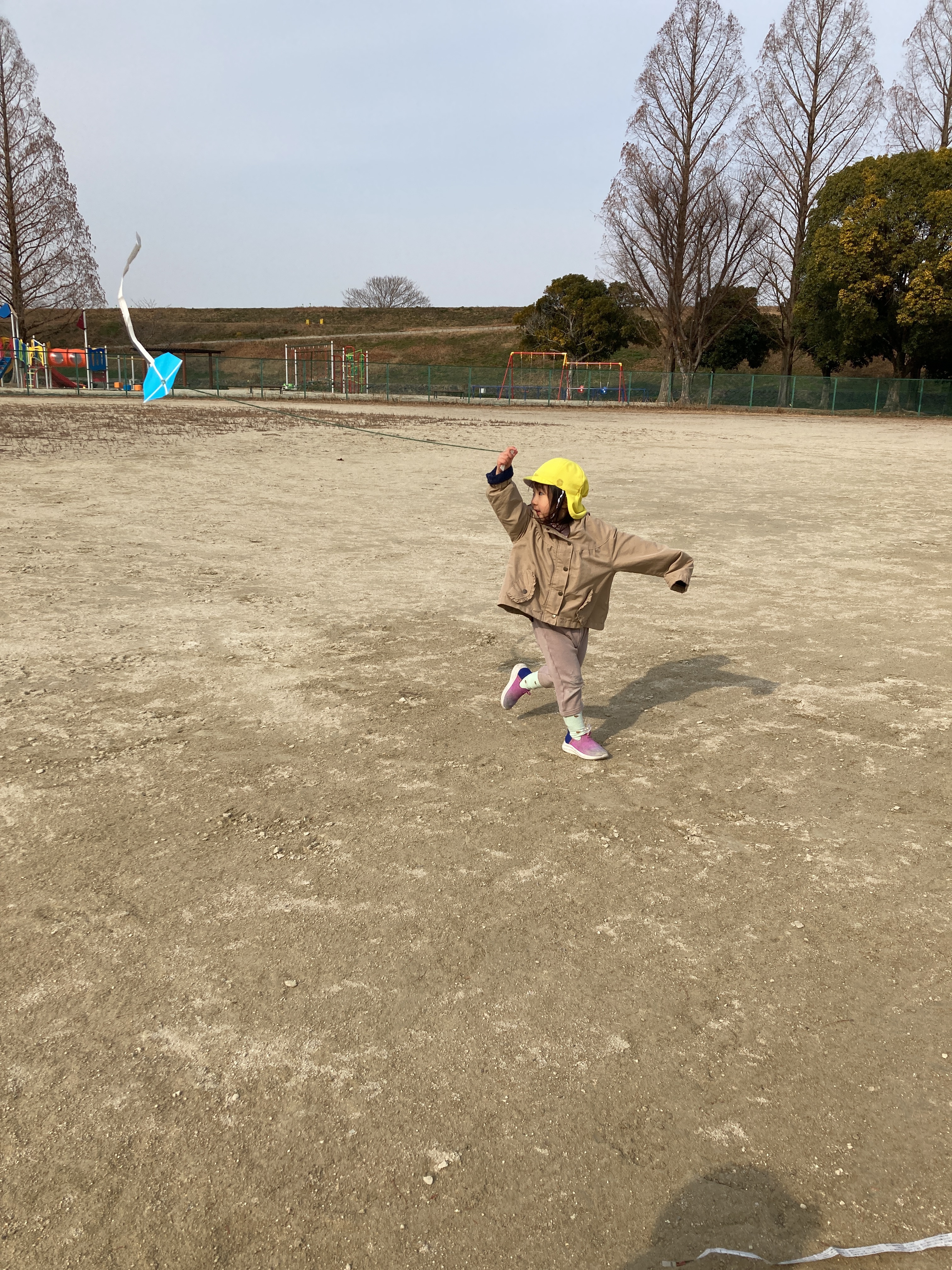 風に吹かれて飛んでいる凧を眺めてみたり、自分で走って飛ばしてみたりと楽しんでいました😊