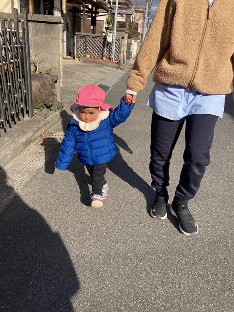 順番に散歩車に乗ったり、保育士と順番に手を繋いだり♪
