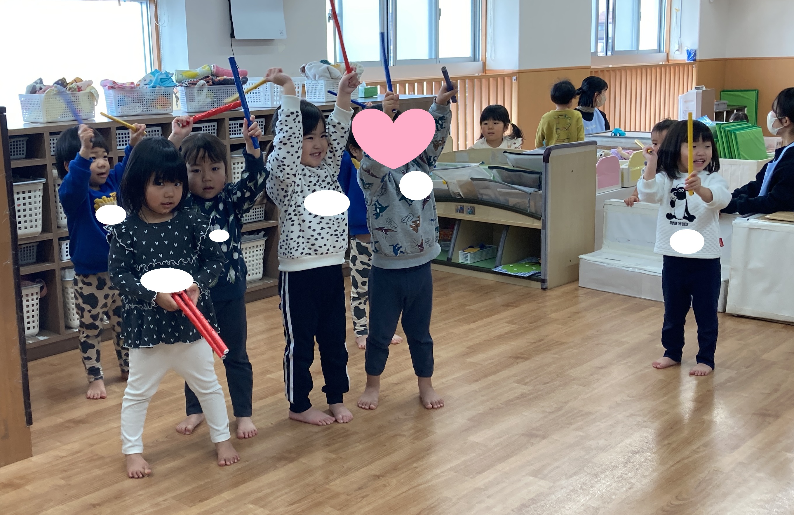 これからも、音楽を通して「楽しい」「やってみたい」という気持ちを大切にしながら、子どもたちと過ごしていきたいと思います。来月のリトミックも、どんな表情を見せてくれるのか楽しみです![]()