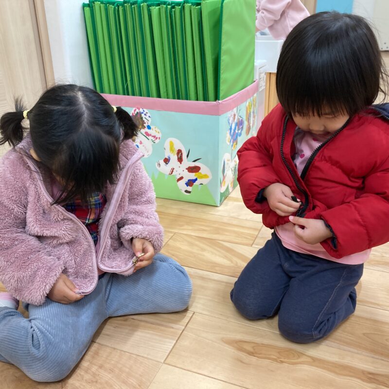 ファスナーも自分でやってみようとする子が増えてきました!