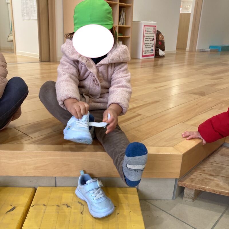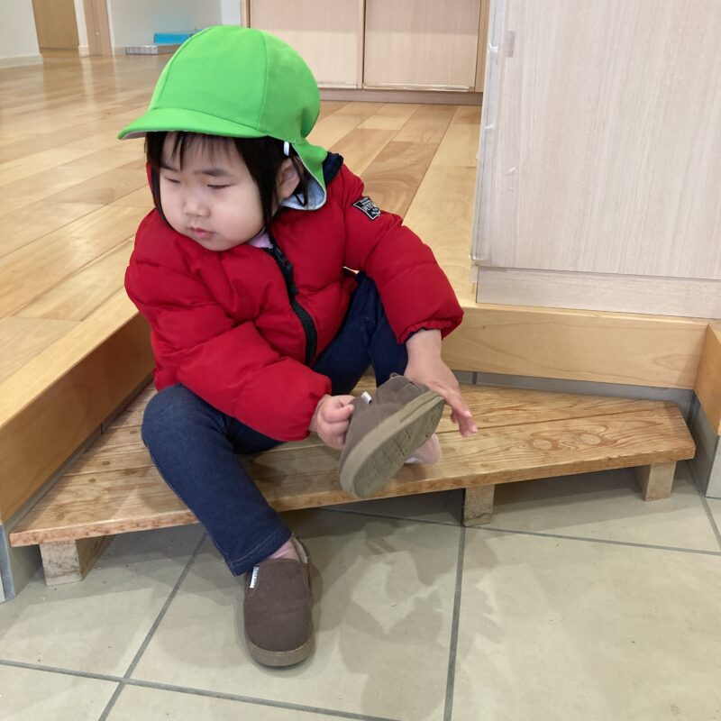 また、上靴から外靴への履き替えも、「よいしょ」と声に出しながら自分で行っています
