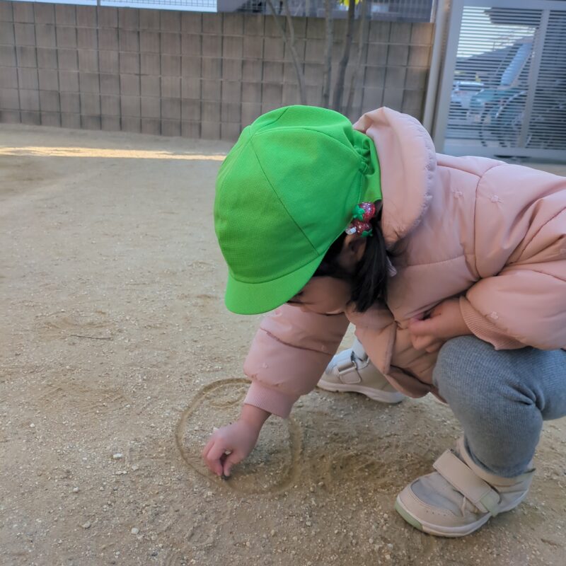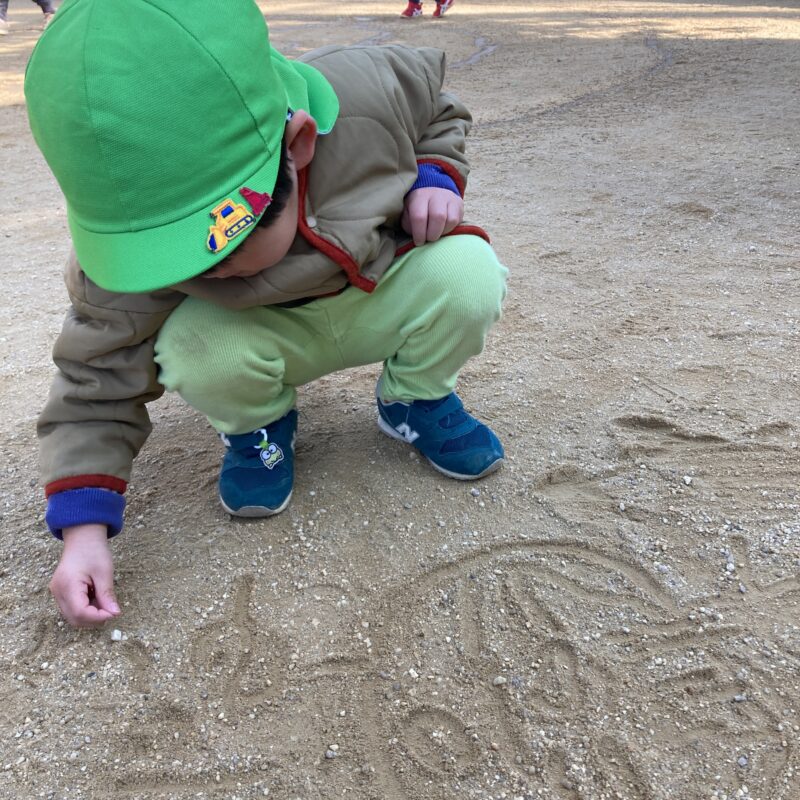 遊びの合間には、地面に絵を描いて楽しむ姿も🎨