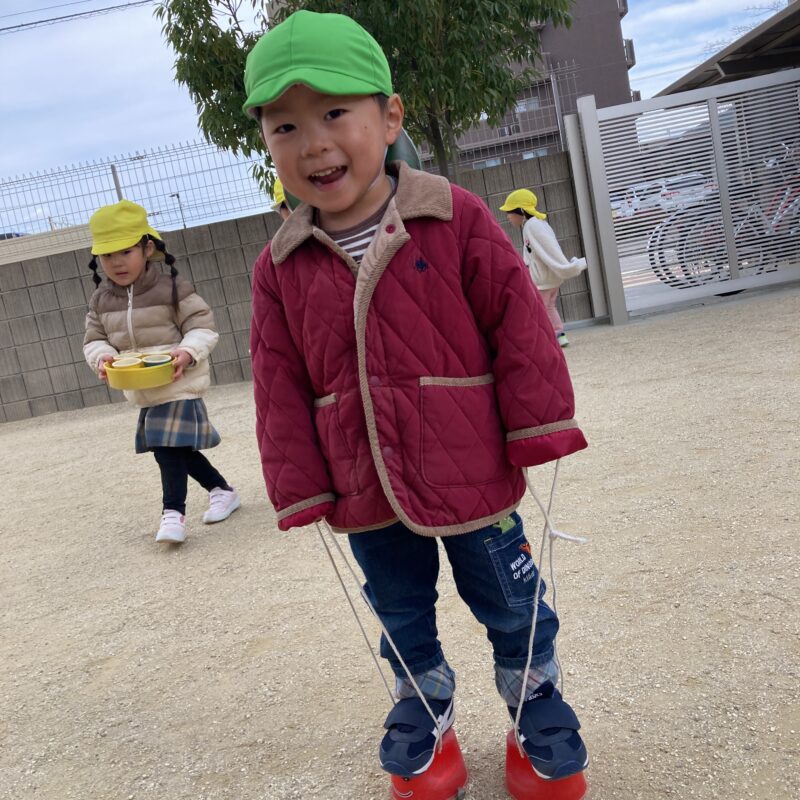 園庭では、ぽっくりに挑戦