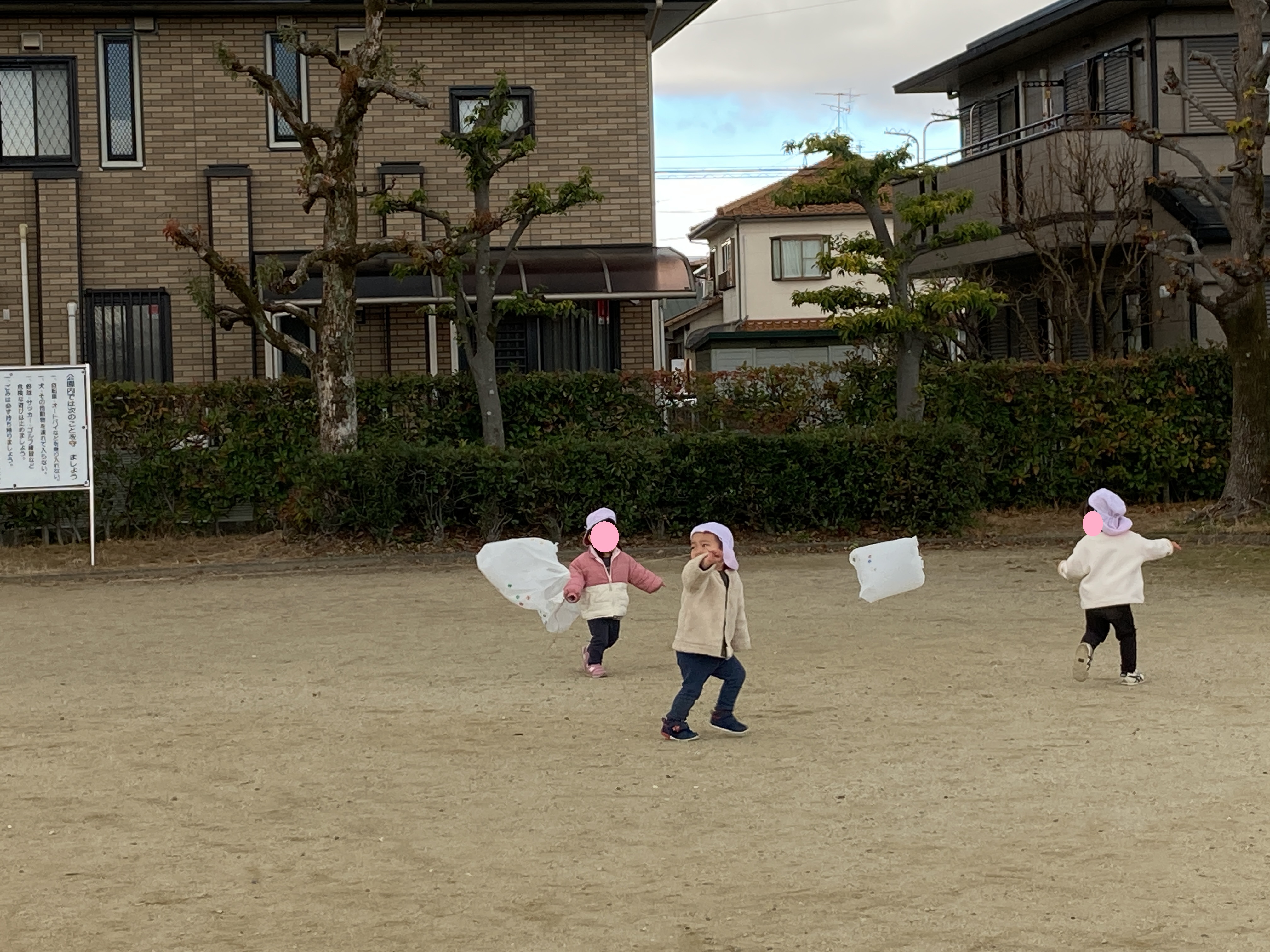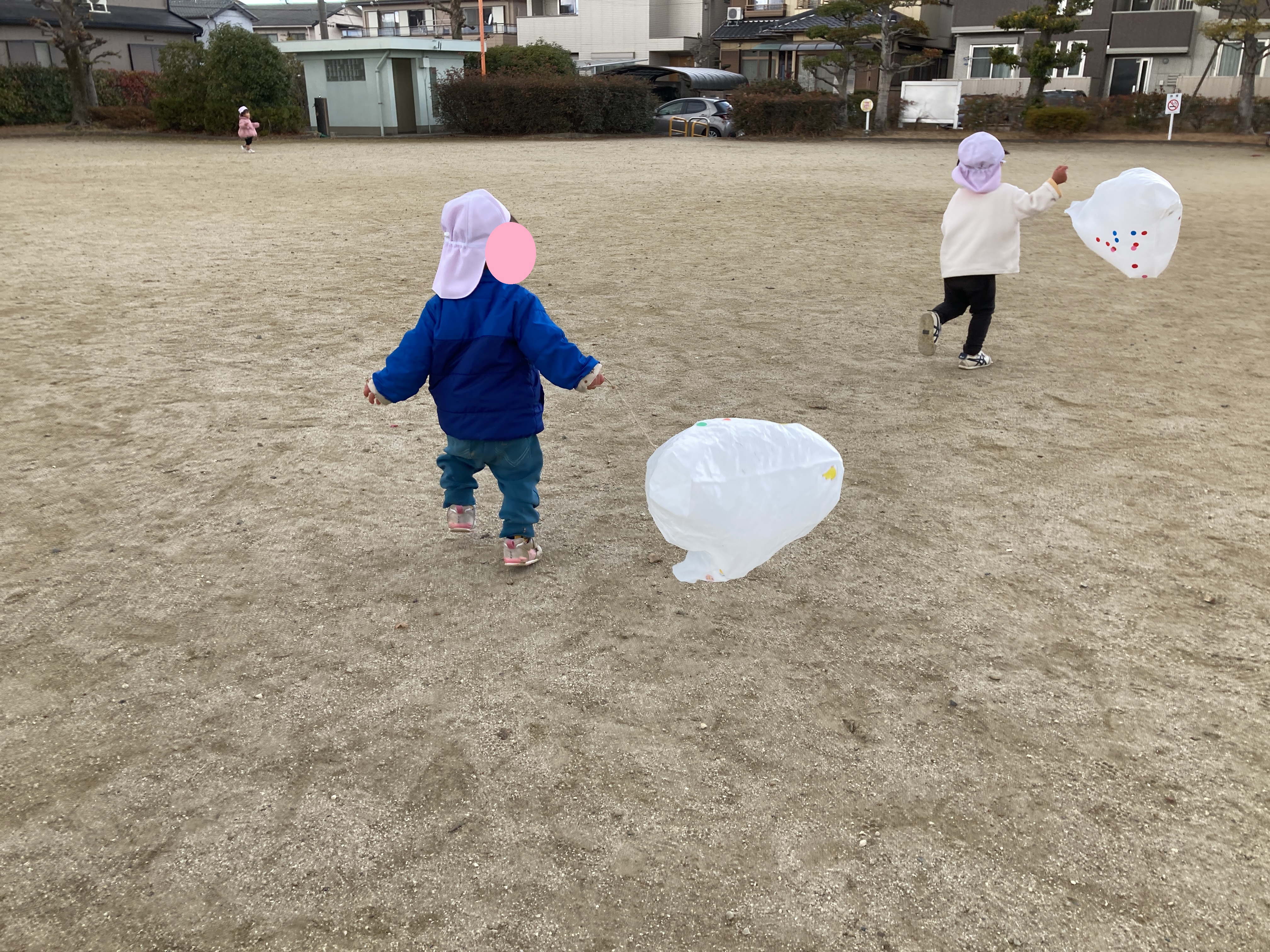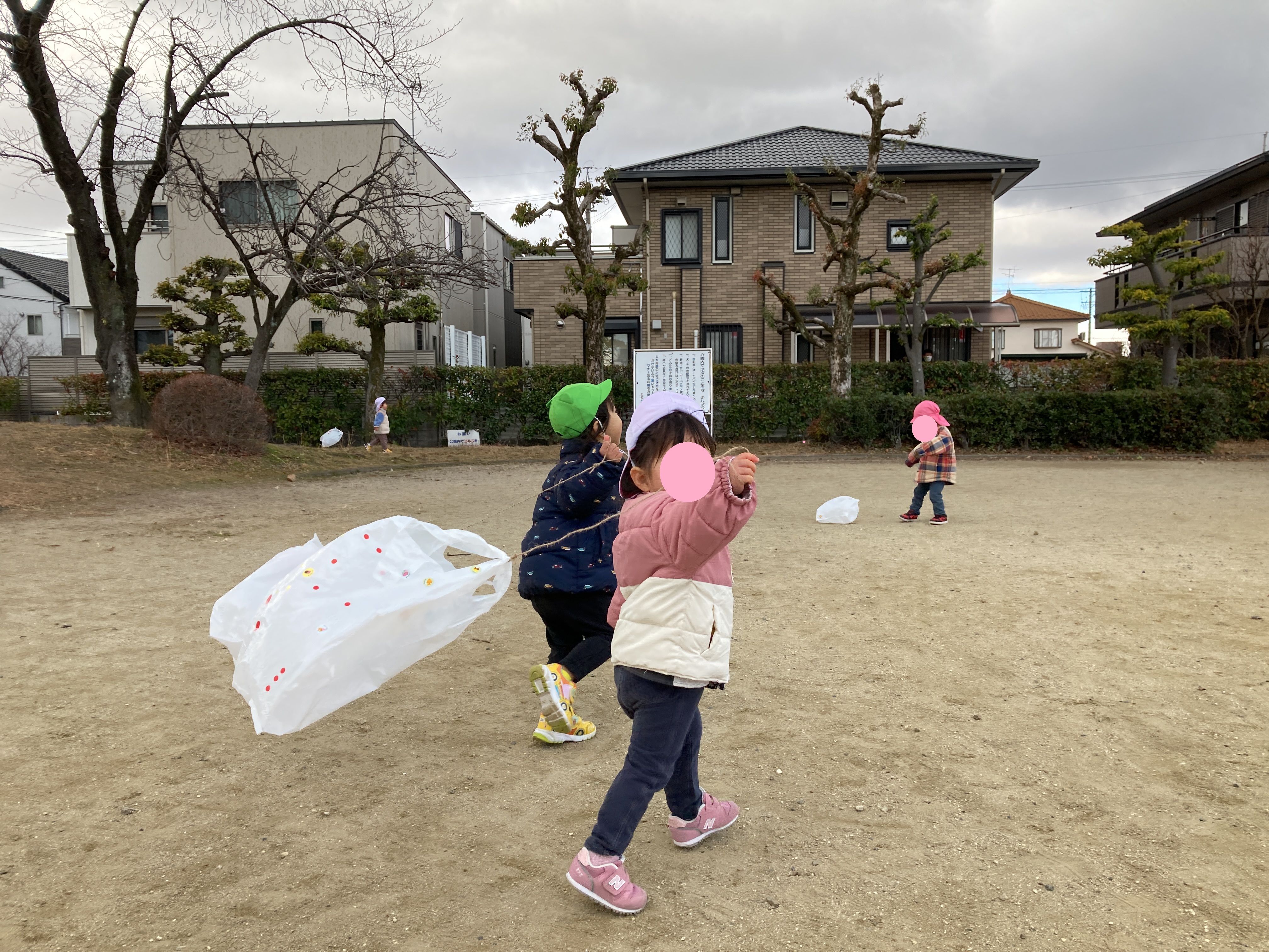 公園内を走り回って、子どもたちは元気に凧あげを楽しんでいました