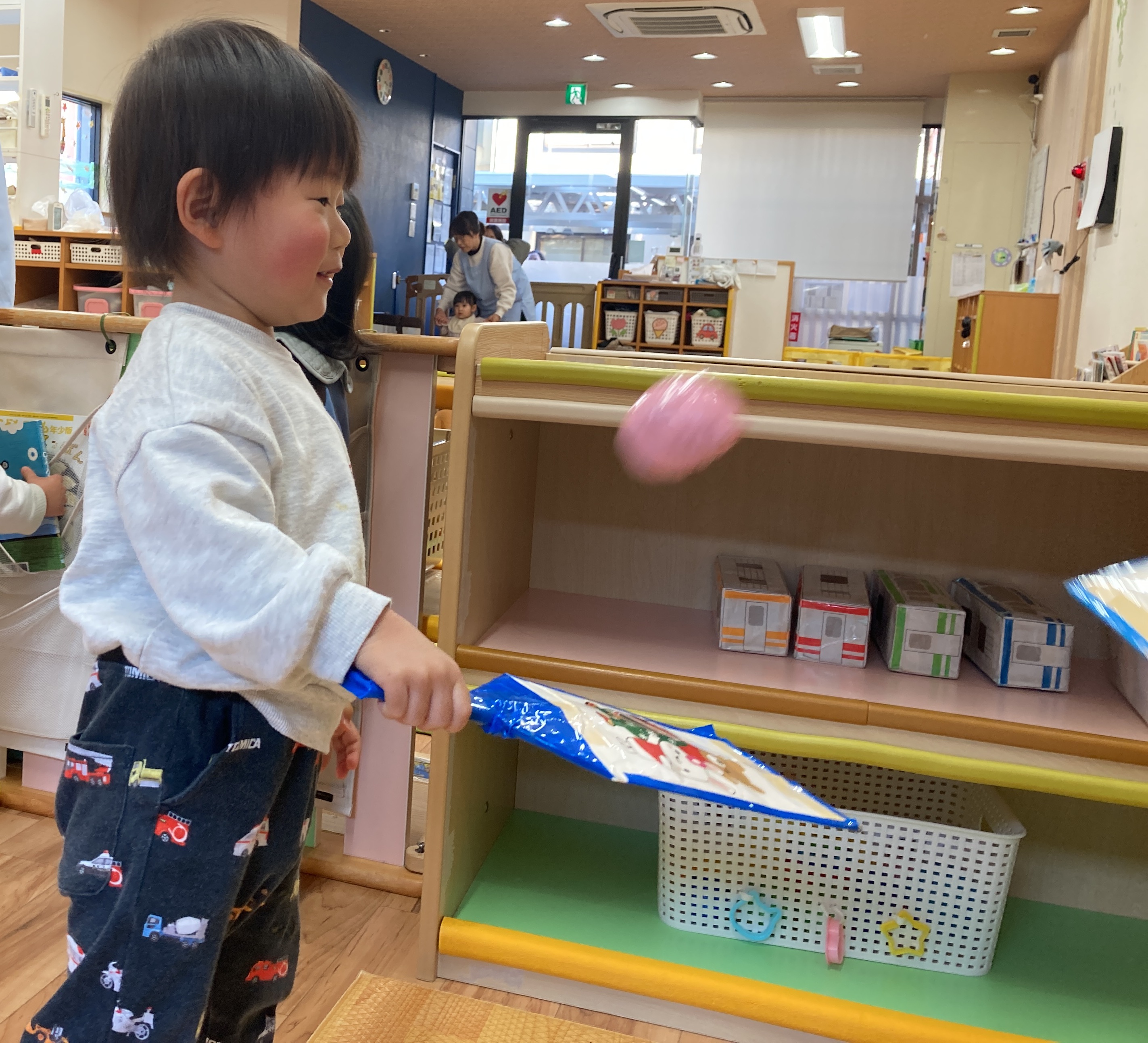 保育士が羽の代わりにボールを投げると、、