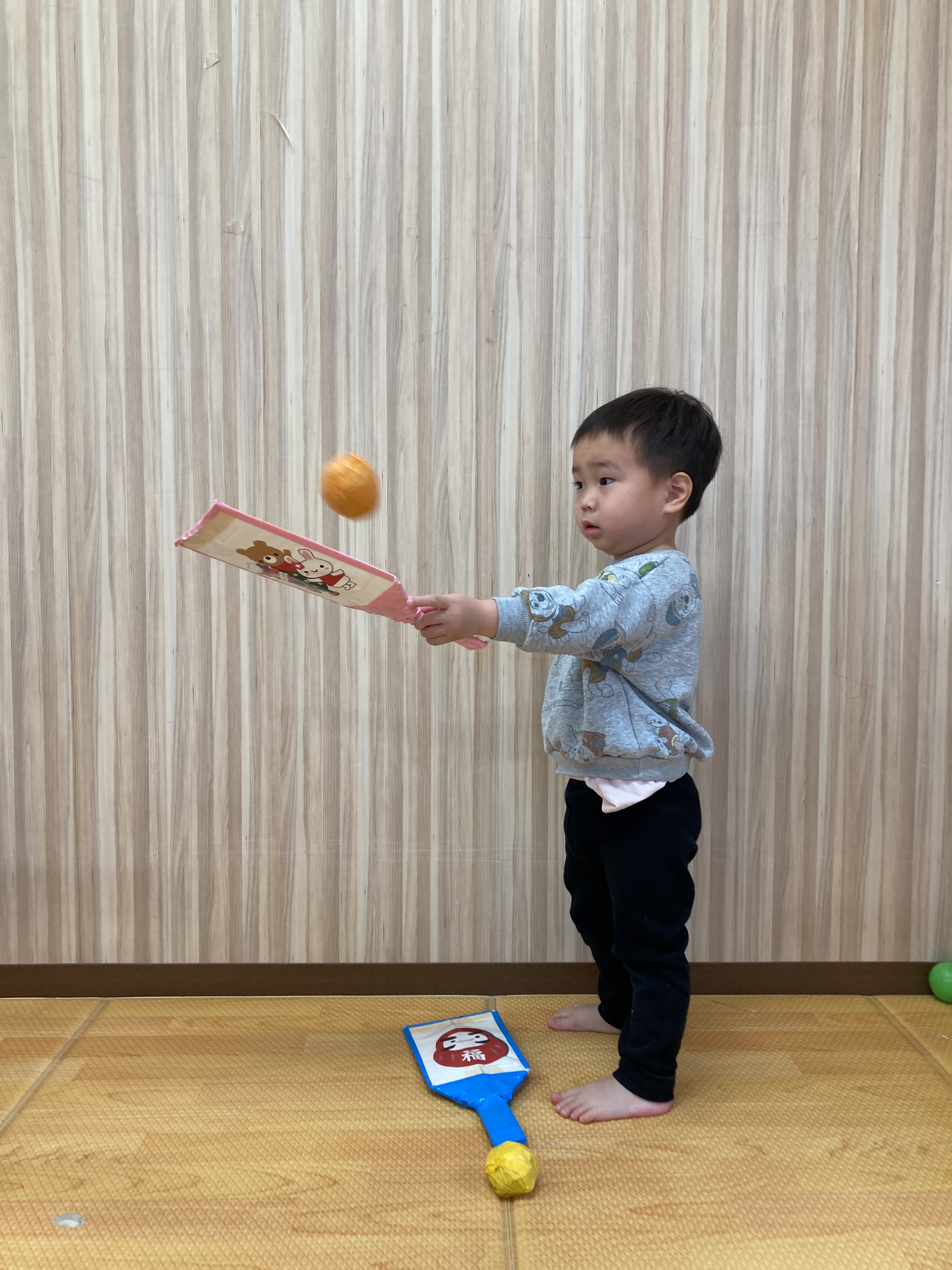 羽子板に上手くボールが当たると、みんな嬉しそうに「もう一回!」と何度も挑戦していました