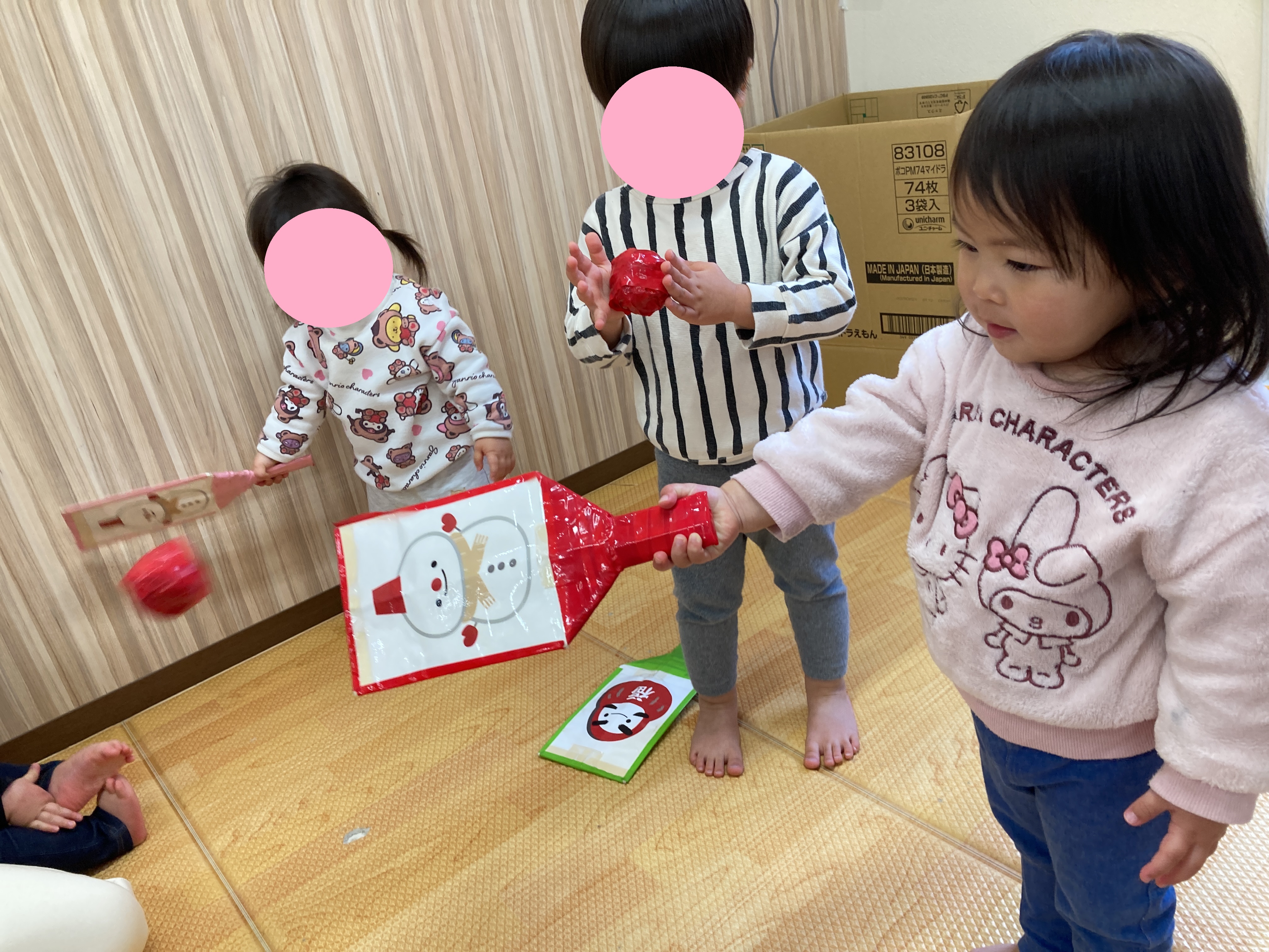 今回はき組(1歳児)さんのお正月遊びの様子をお届けします!