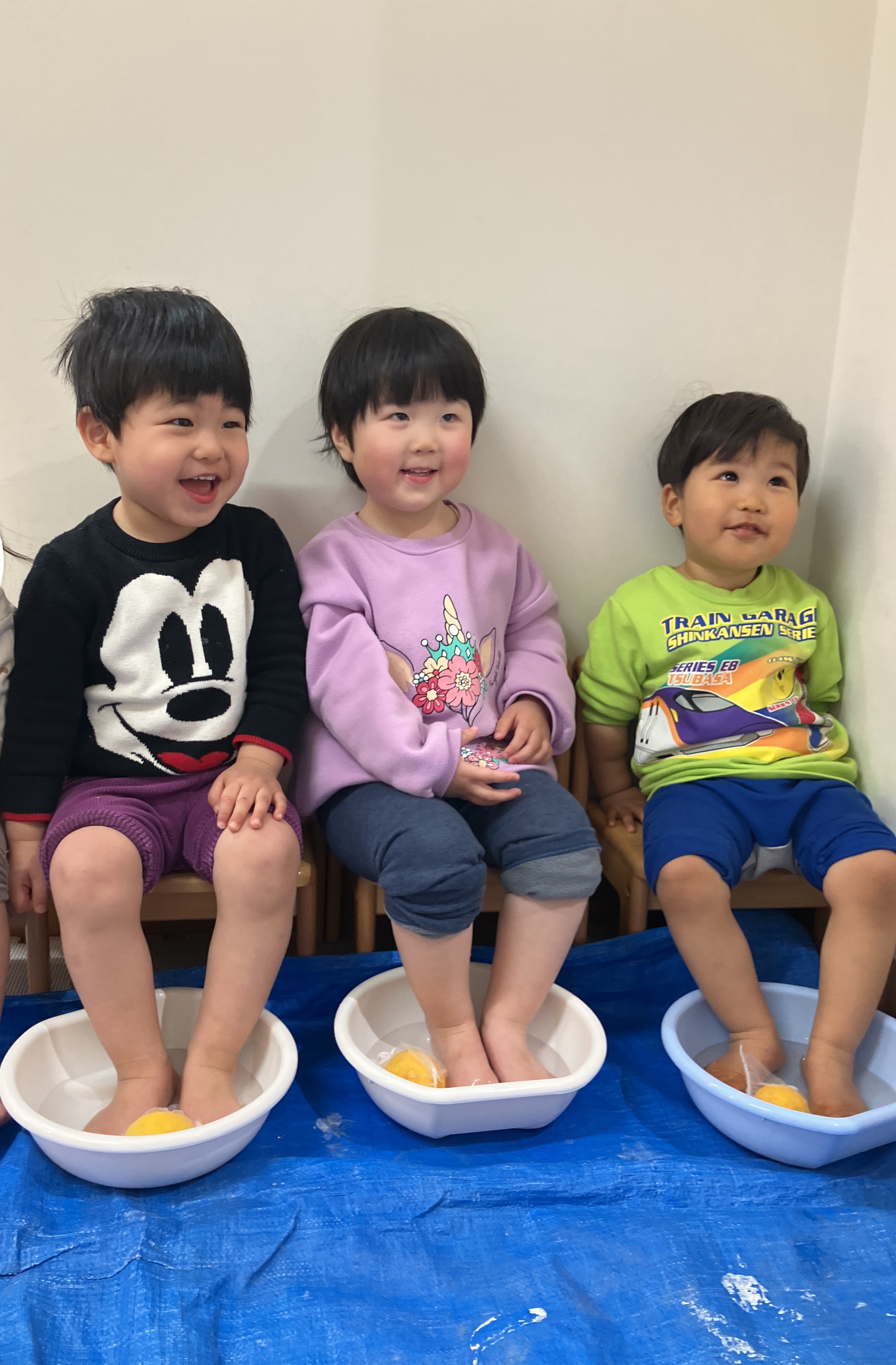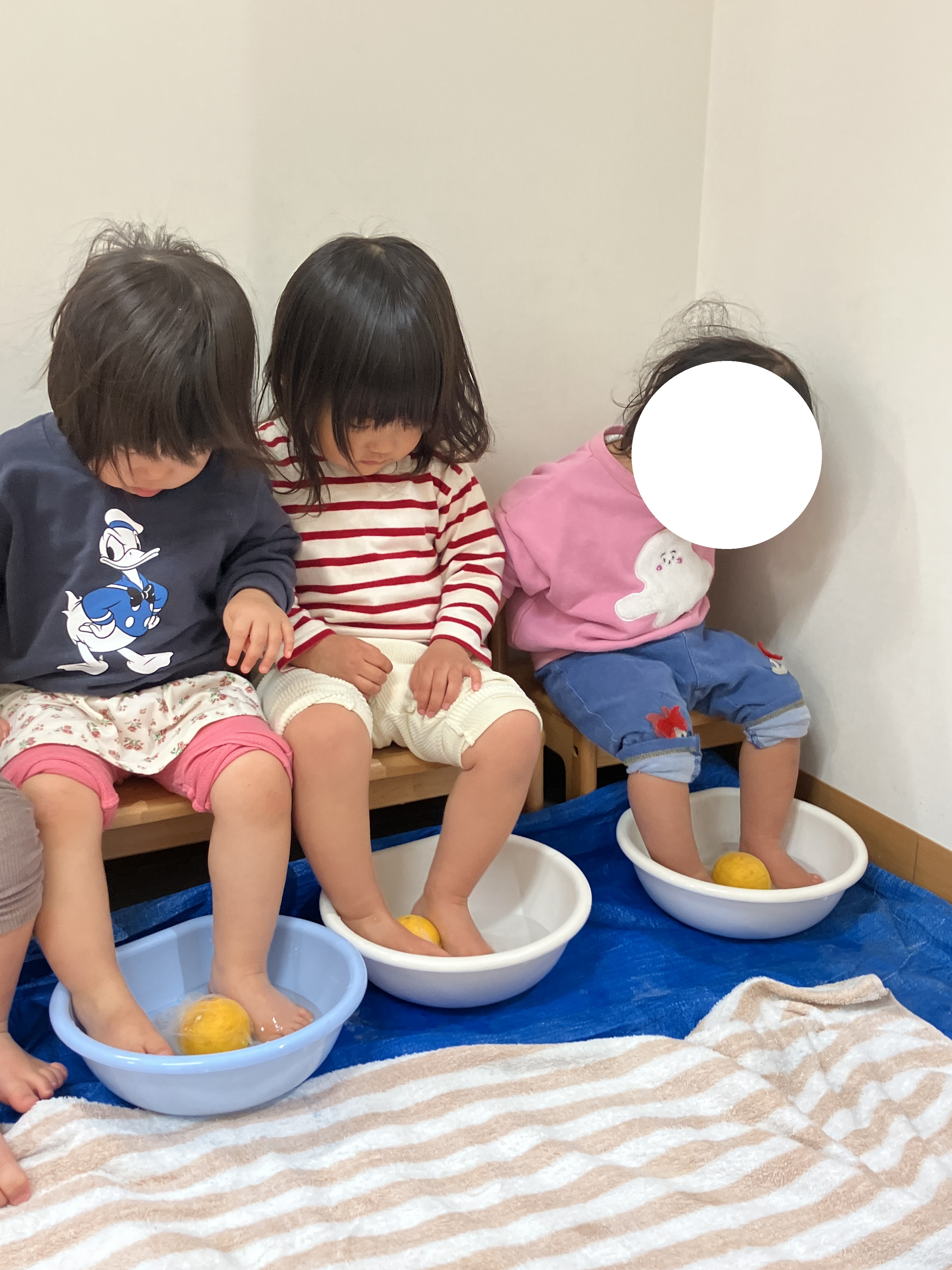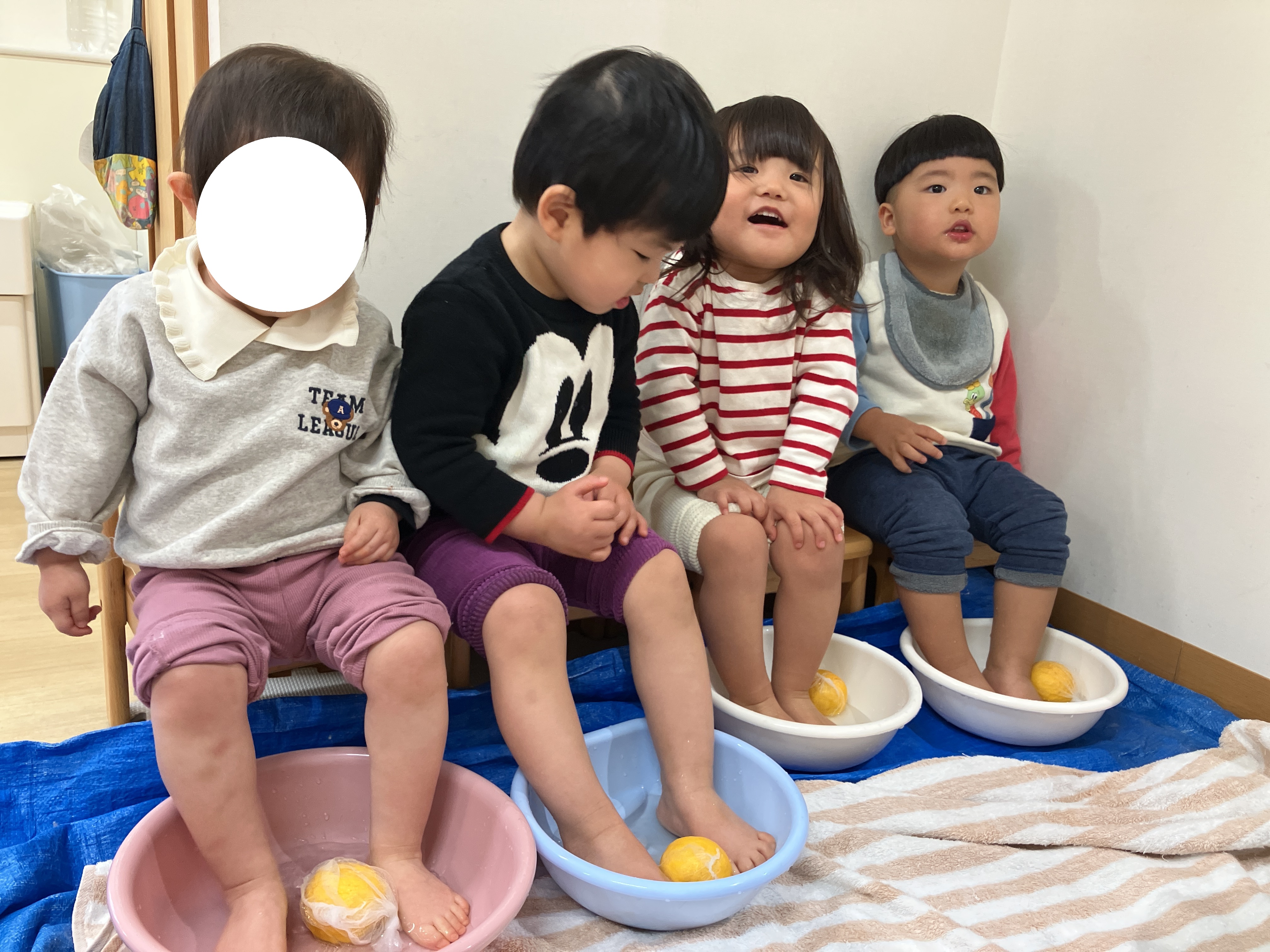 保護者の方からいただいた“ゆず”で足湯体験♨