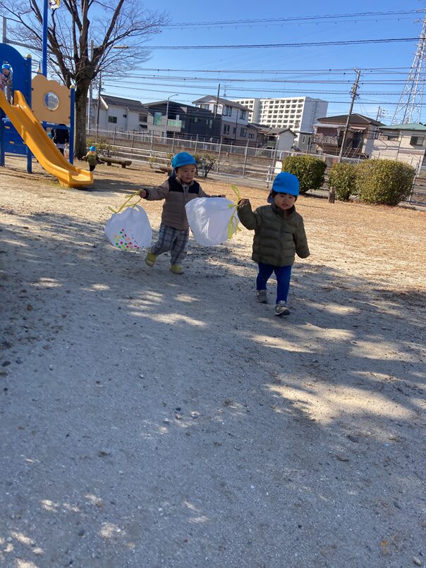 ばなな組(1歳児)はお正月遊び凧揚げを行いました![]()