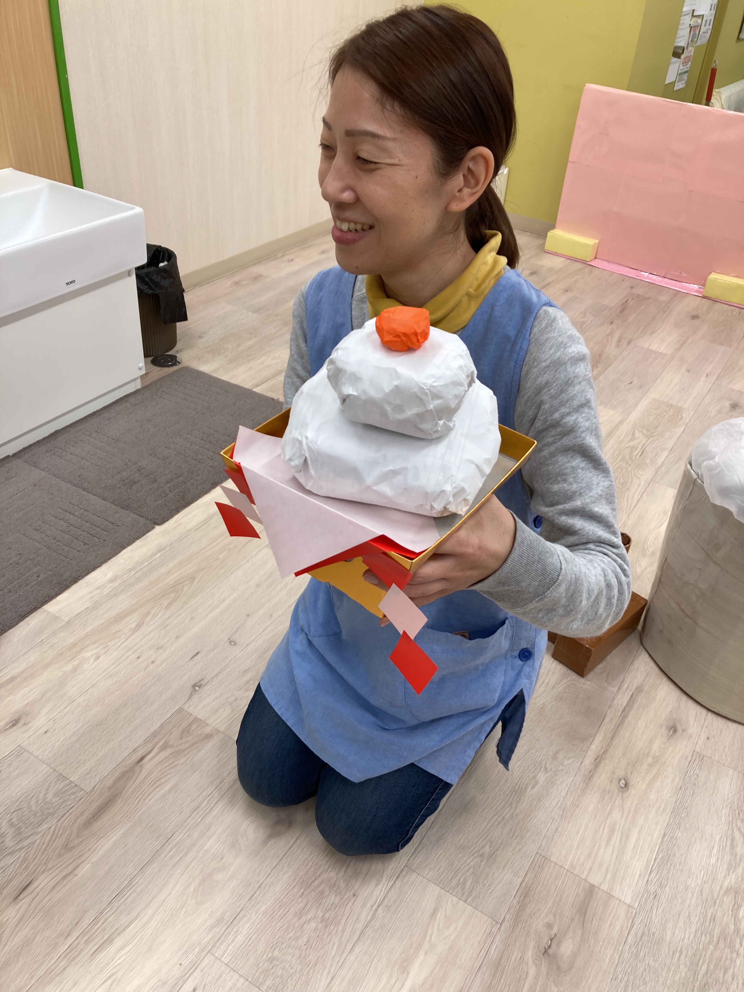 みんながたくさん餅つきをしたおかげで鏡餅が完成しました![]()
