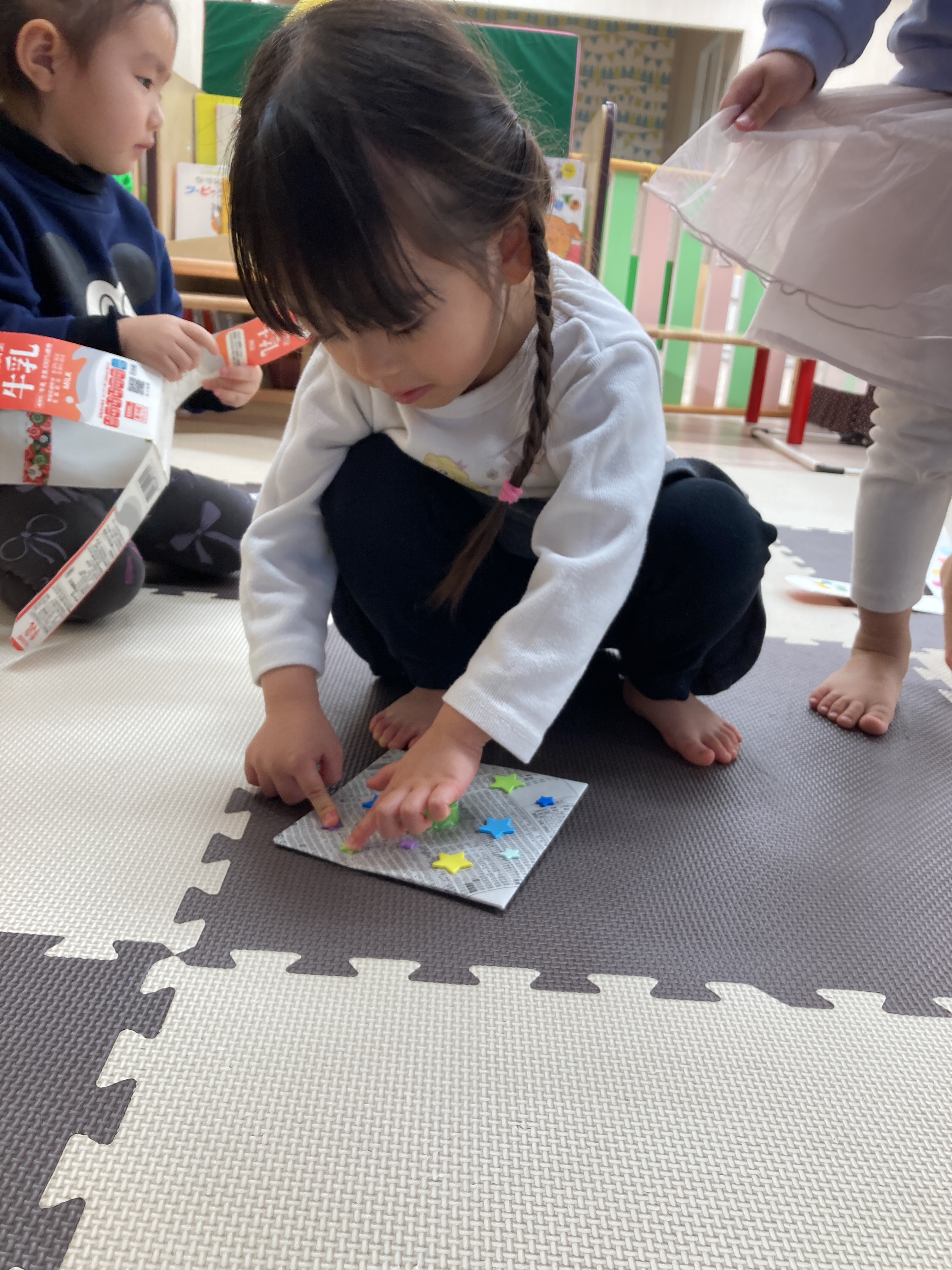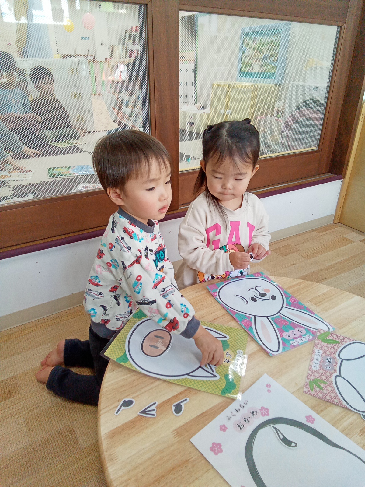 大きいお友だちは、お友だちとかるたを取り合って勝負を楽しんでいました![]()